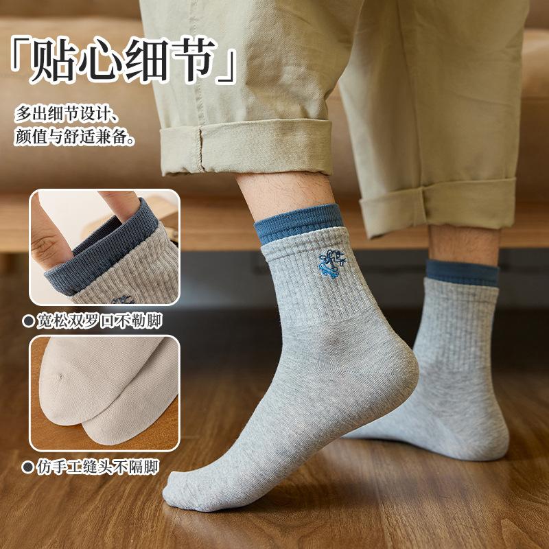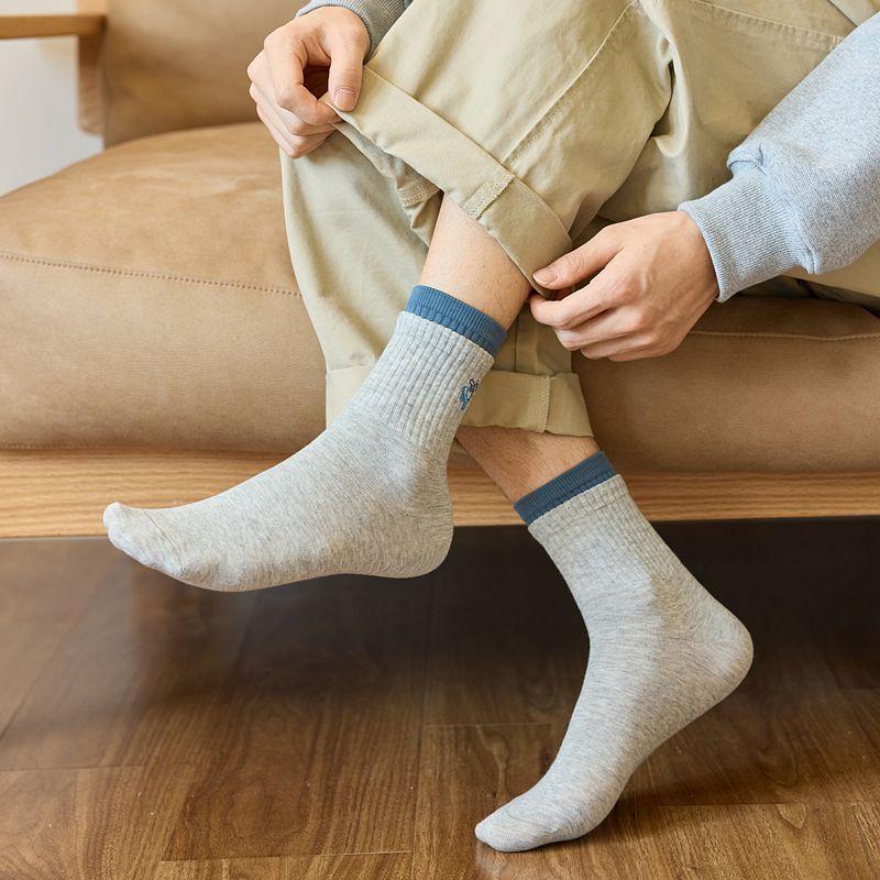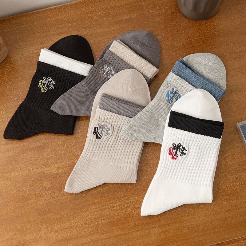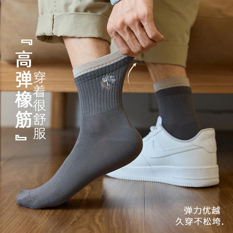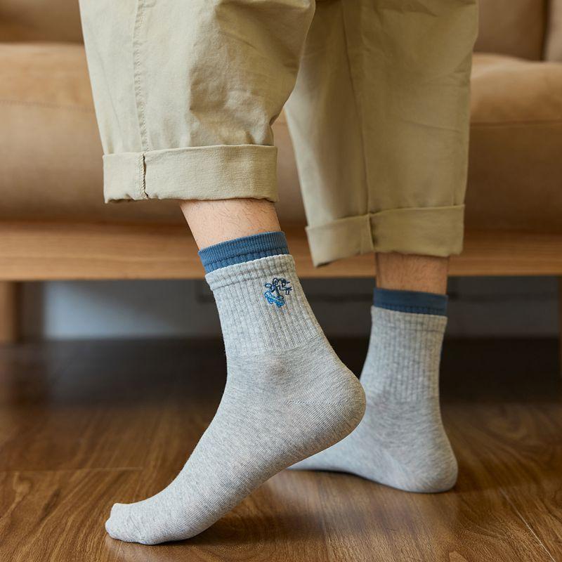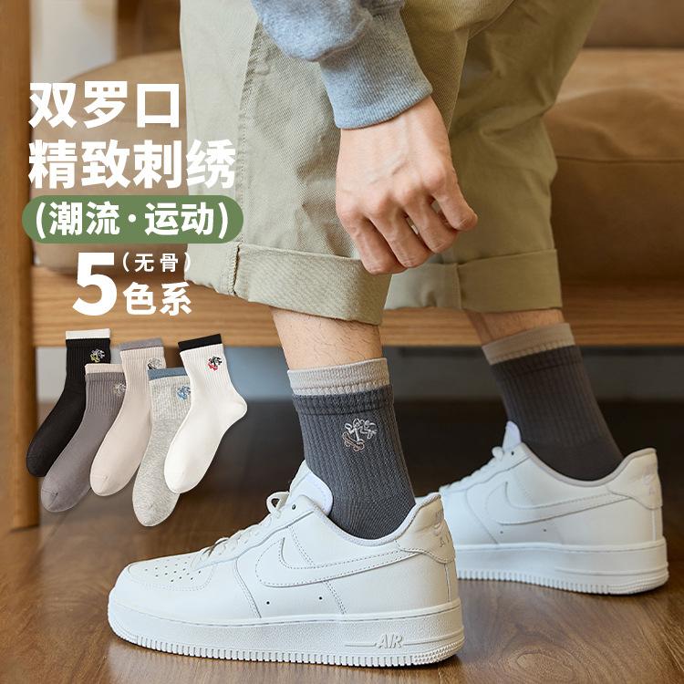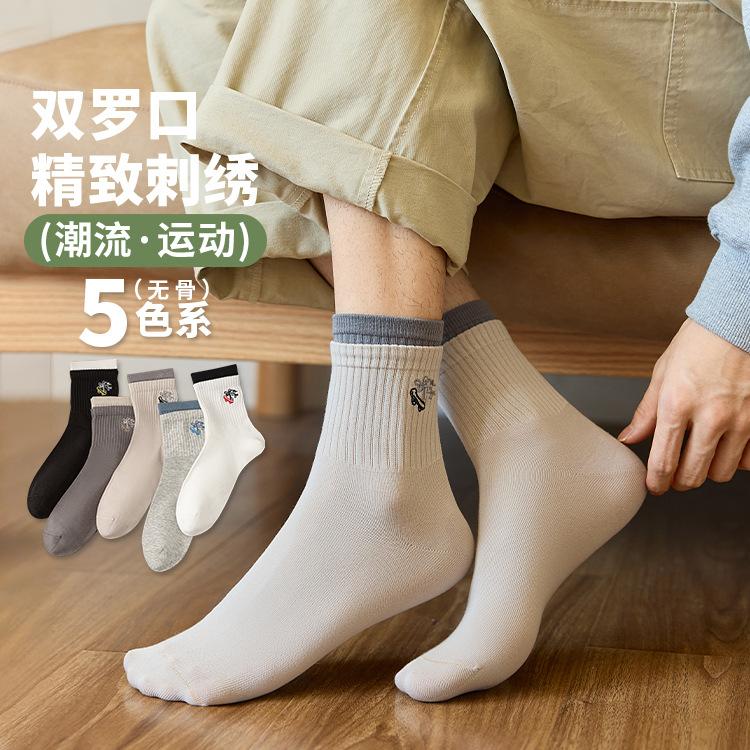 2025 Otoño/Invierno Nuevo Color Sólido Bordado Casual Deportivo Calcetines Medios para Hombre Venta al por Mayor Transpirables Absorbentes de Sudor Calcetines de Algodón para Hombre