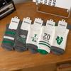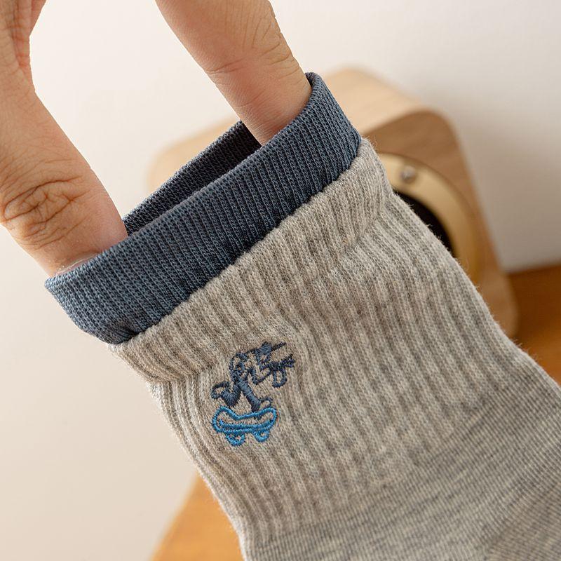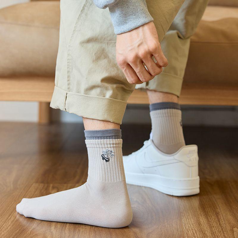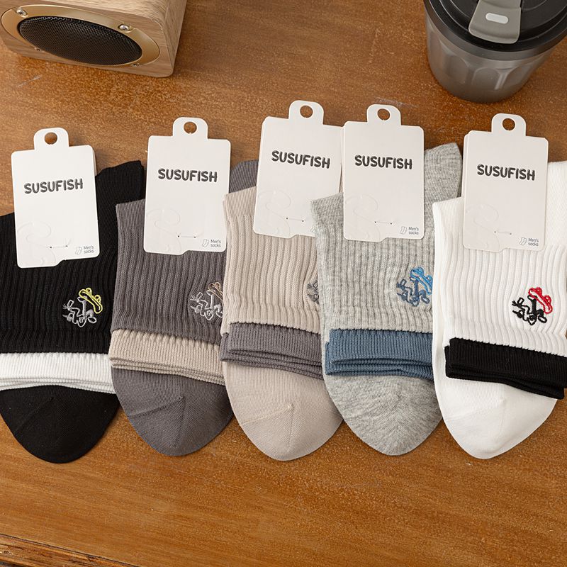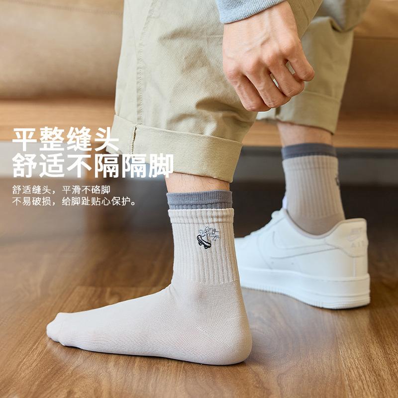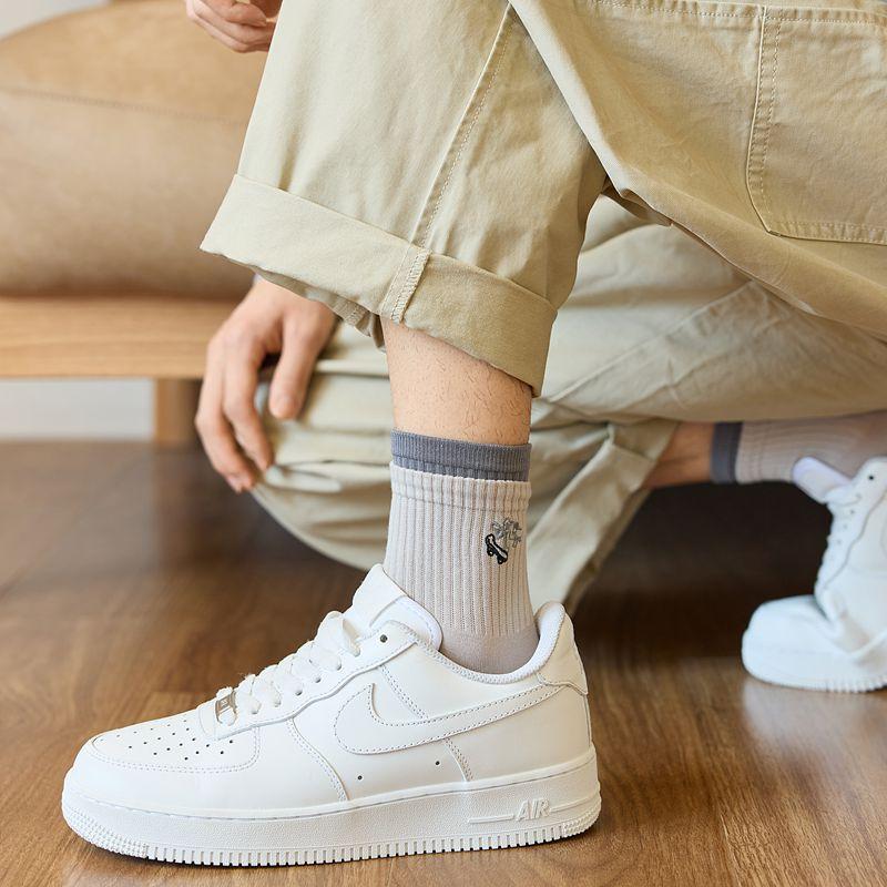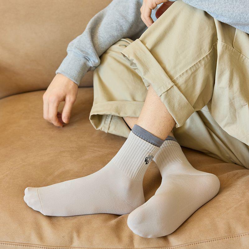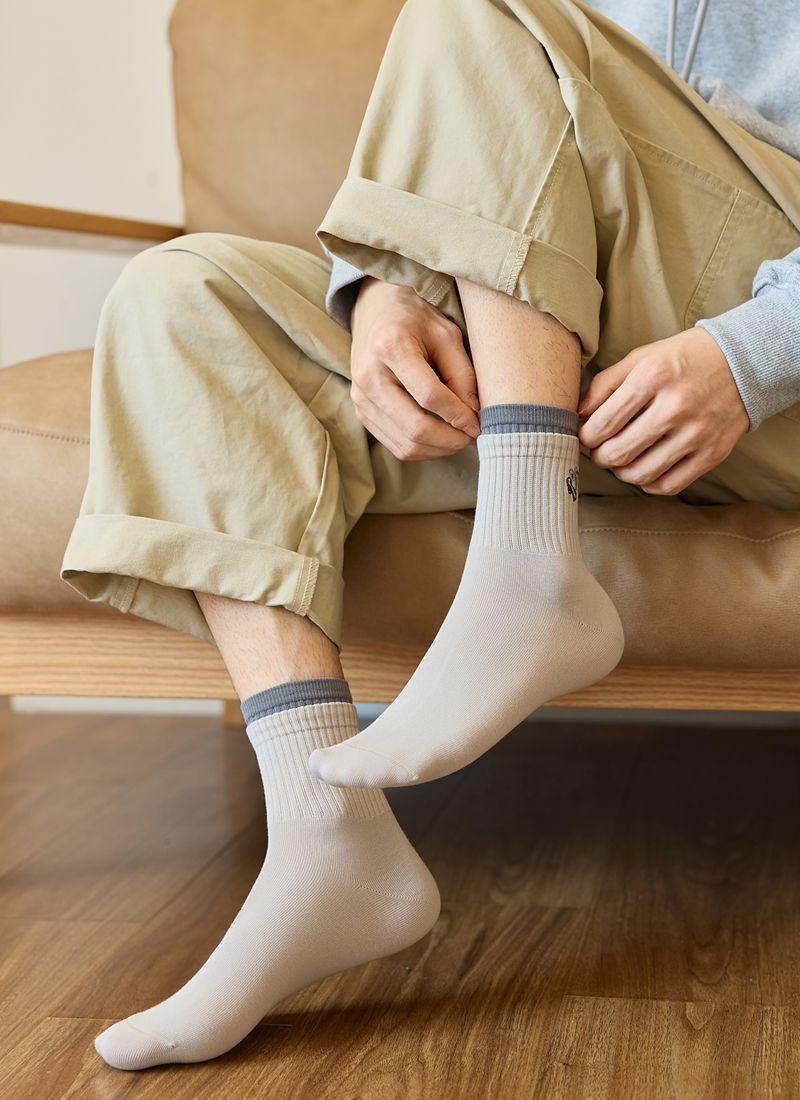 2025 Otoño/Invierno Nuevo Color Sólido Bordado Casual Deportivo Calcetines Medios para Hombre Venta al por Mayor Transpirables Absorbentes de Sudor Calcetines de Algodón para Hombre