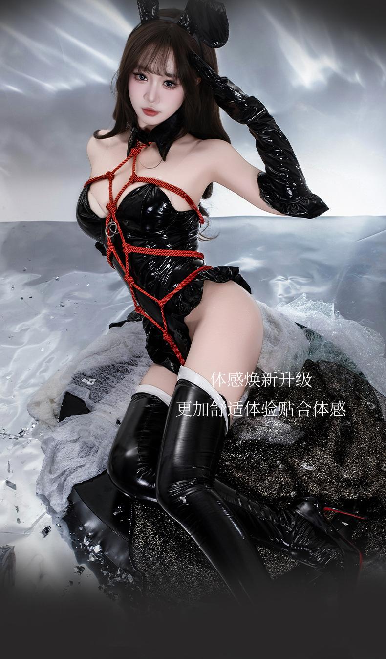 Lencería Sexy Atractiva de Cuero Patentado Conejita Pasión Erótica Reina Remoción Libre Catwoman COS Conjunto Body