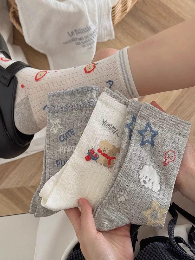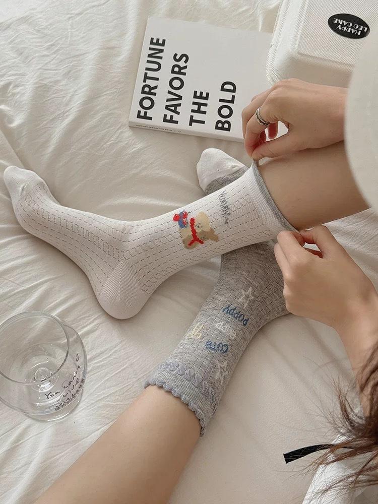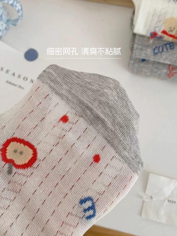 Calcetines finos de dibujos animados lindos para primavera y verano para mujer, calcetines de algodón sin costuras de media caña, modernos de malla transpirable, versátiles estilo universitario