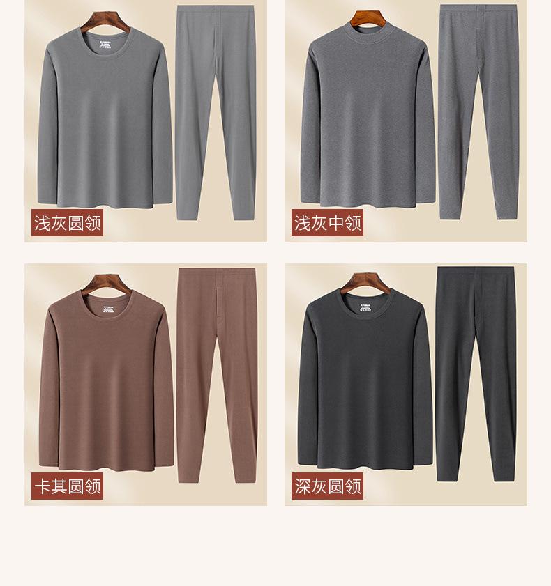 Conjunto Completo de Ropa Interior Térmica Cuello Redondo Traje Grueso Capa Base a Prueba de Frío para Hombre Autocalentable para Mediana Edad y Ancianos Ropa de Otoño Nuevo Estilo