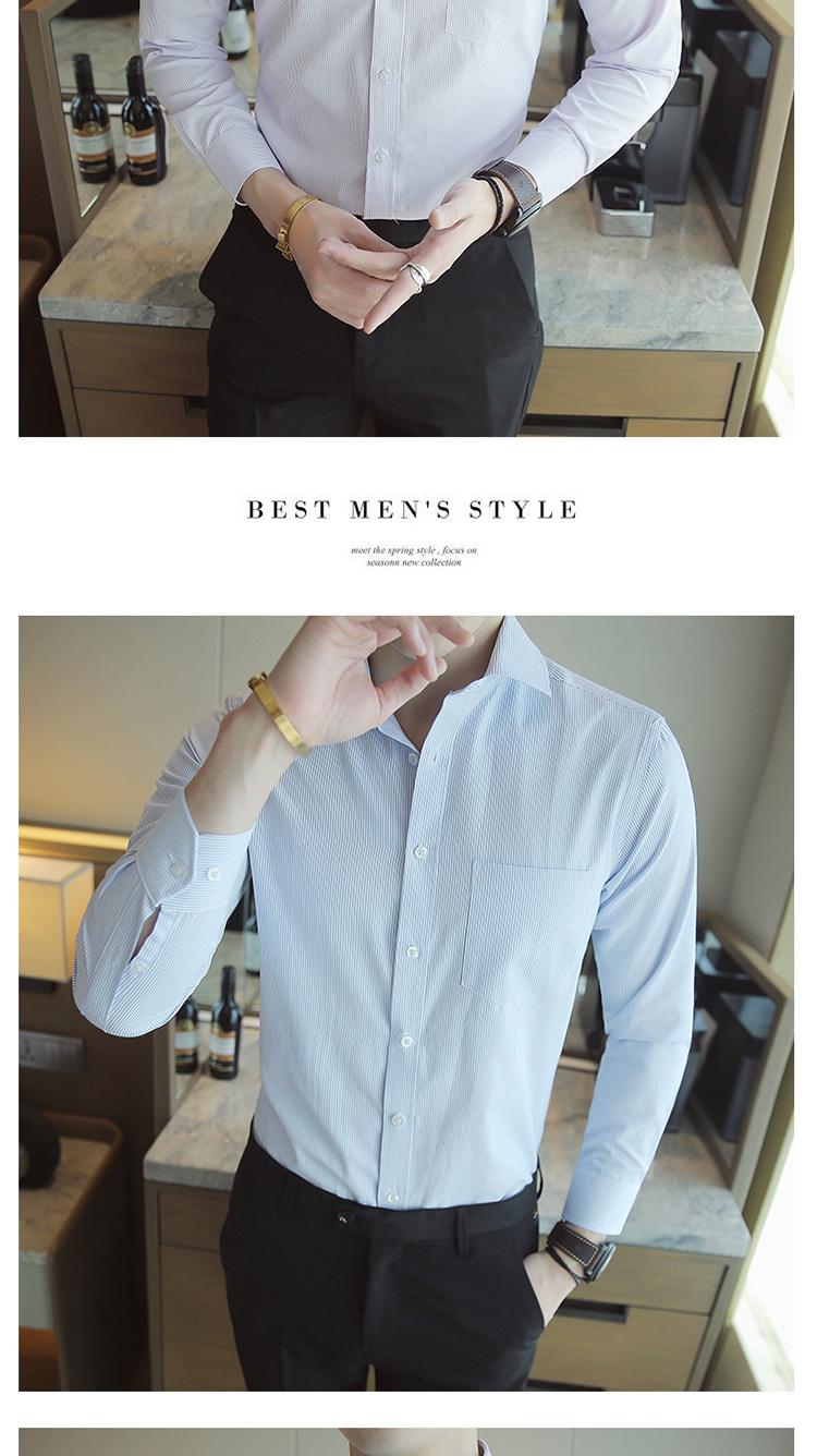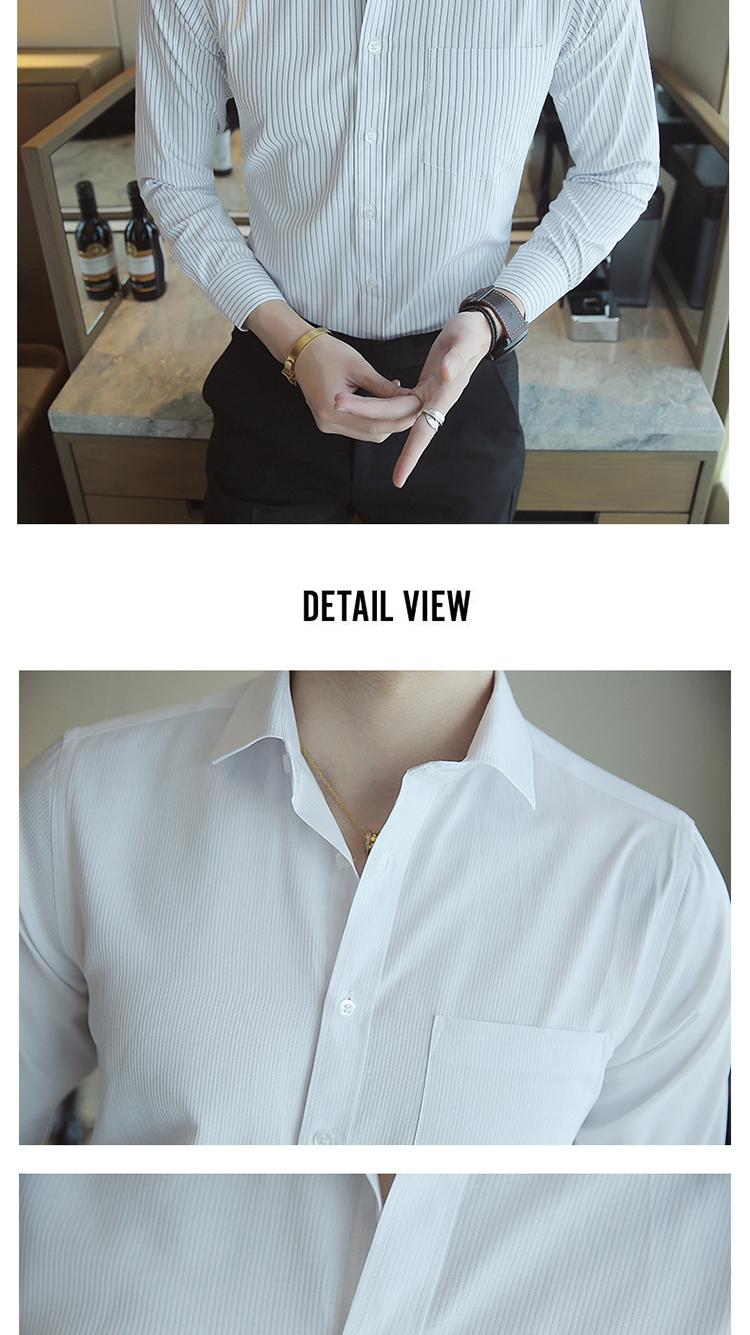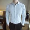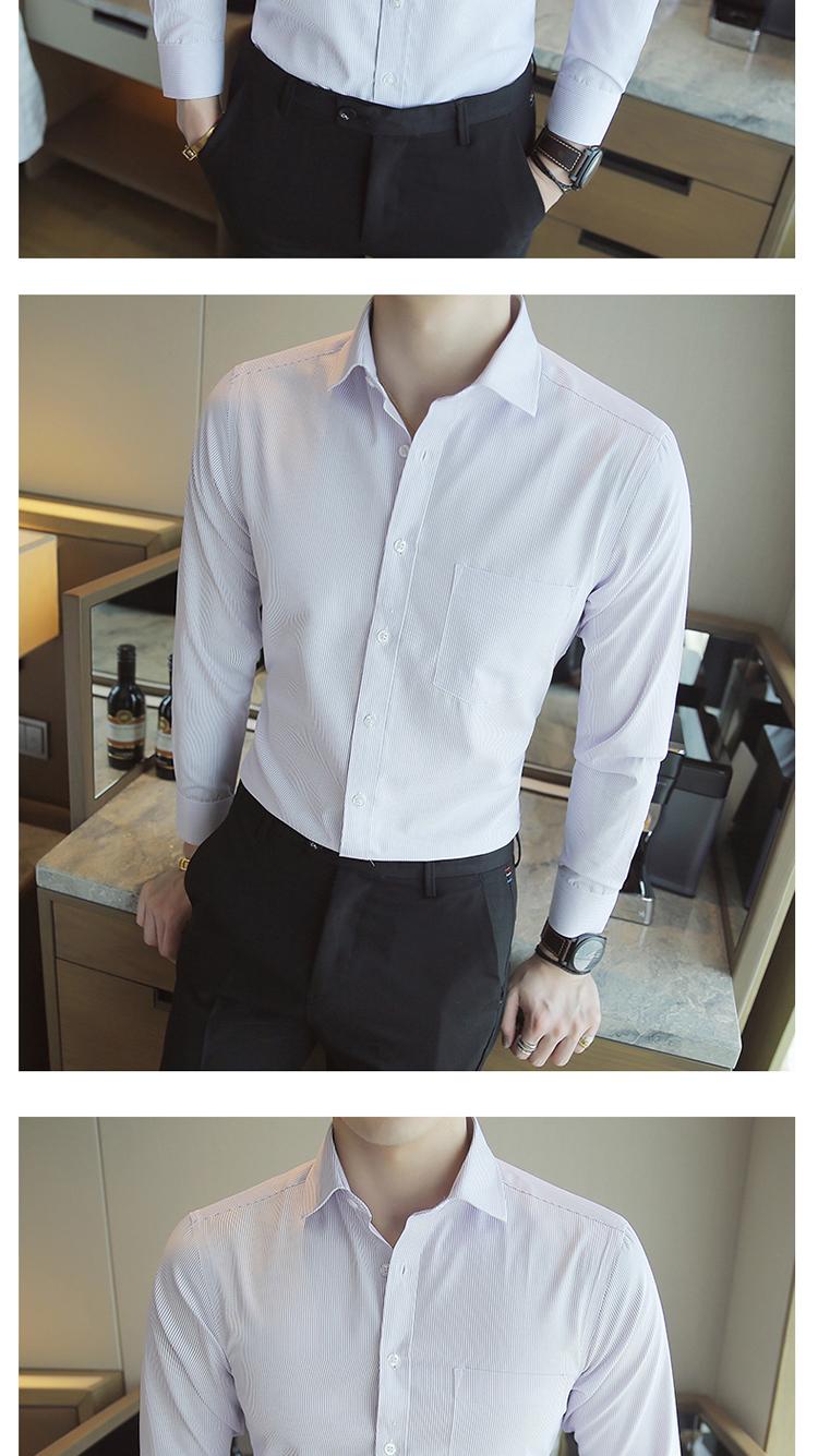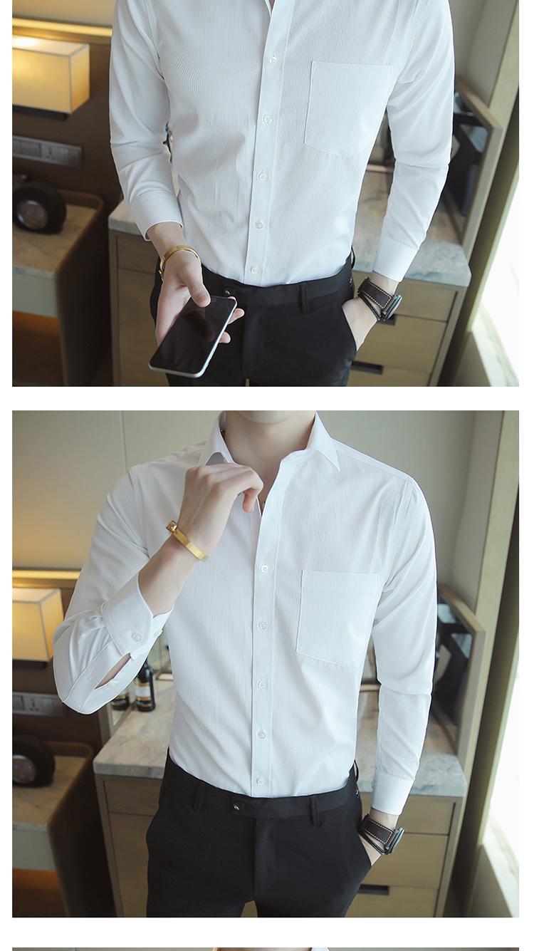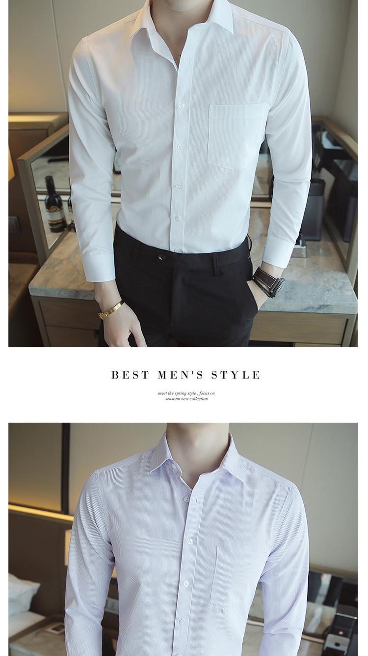 Camisa de Manga Larga para Hombre Nueva 2020 Juvenil Business Casual Color Sólido Patrón Oscuro Ajustada Ropa de Negocios Camisa para Hombre
