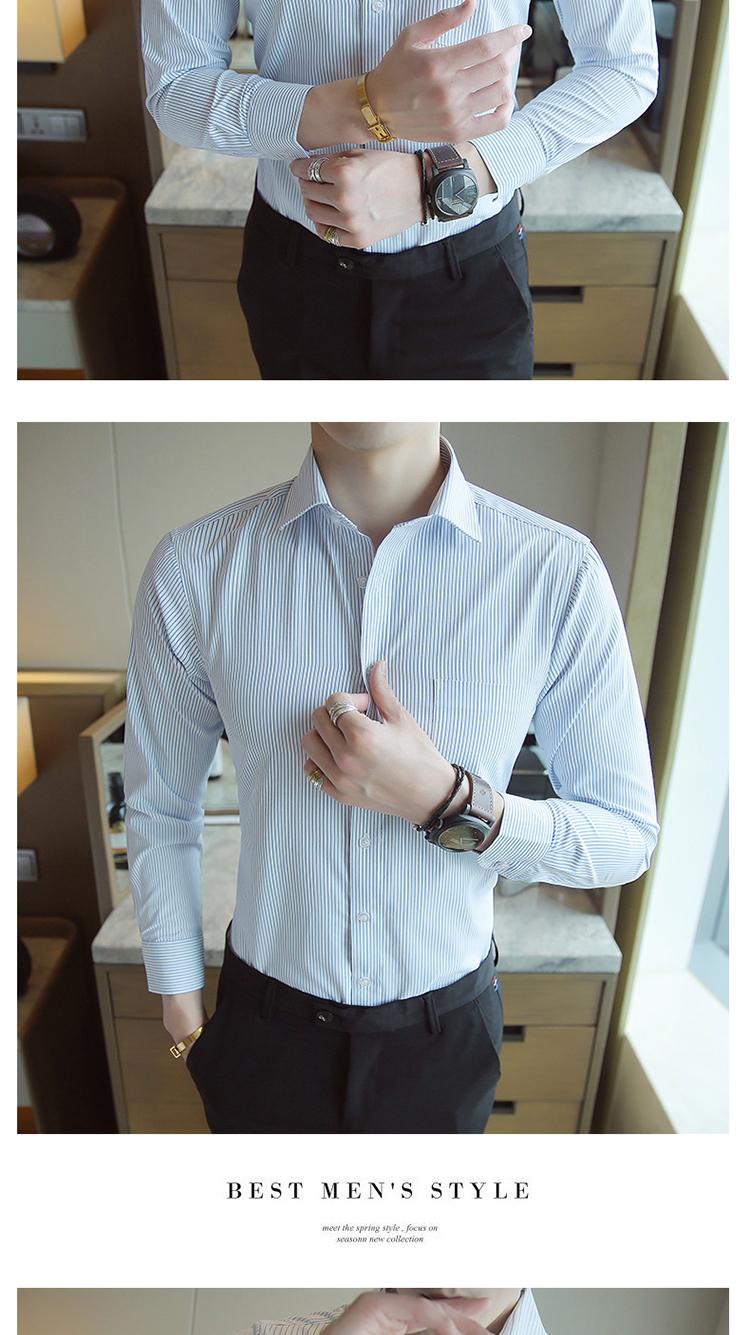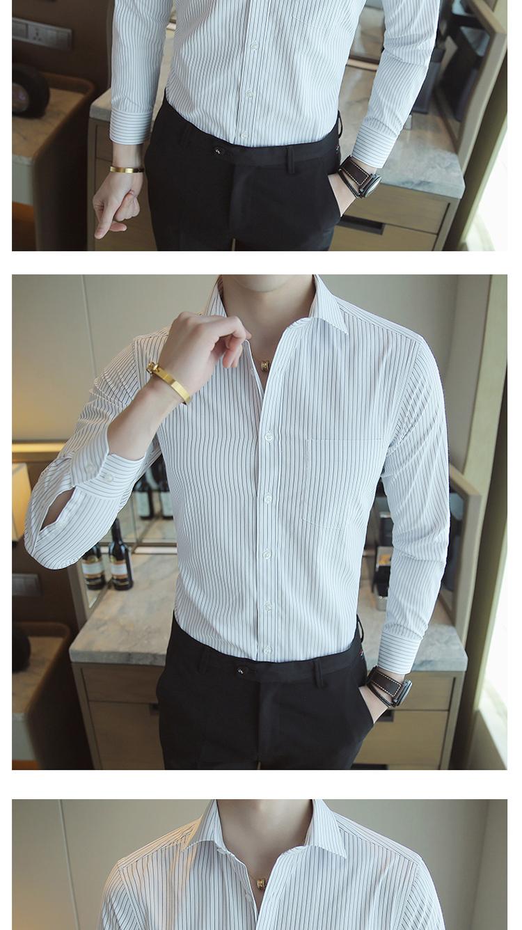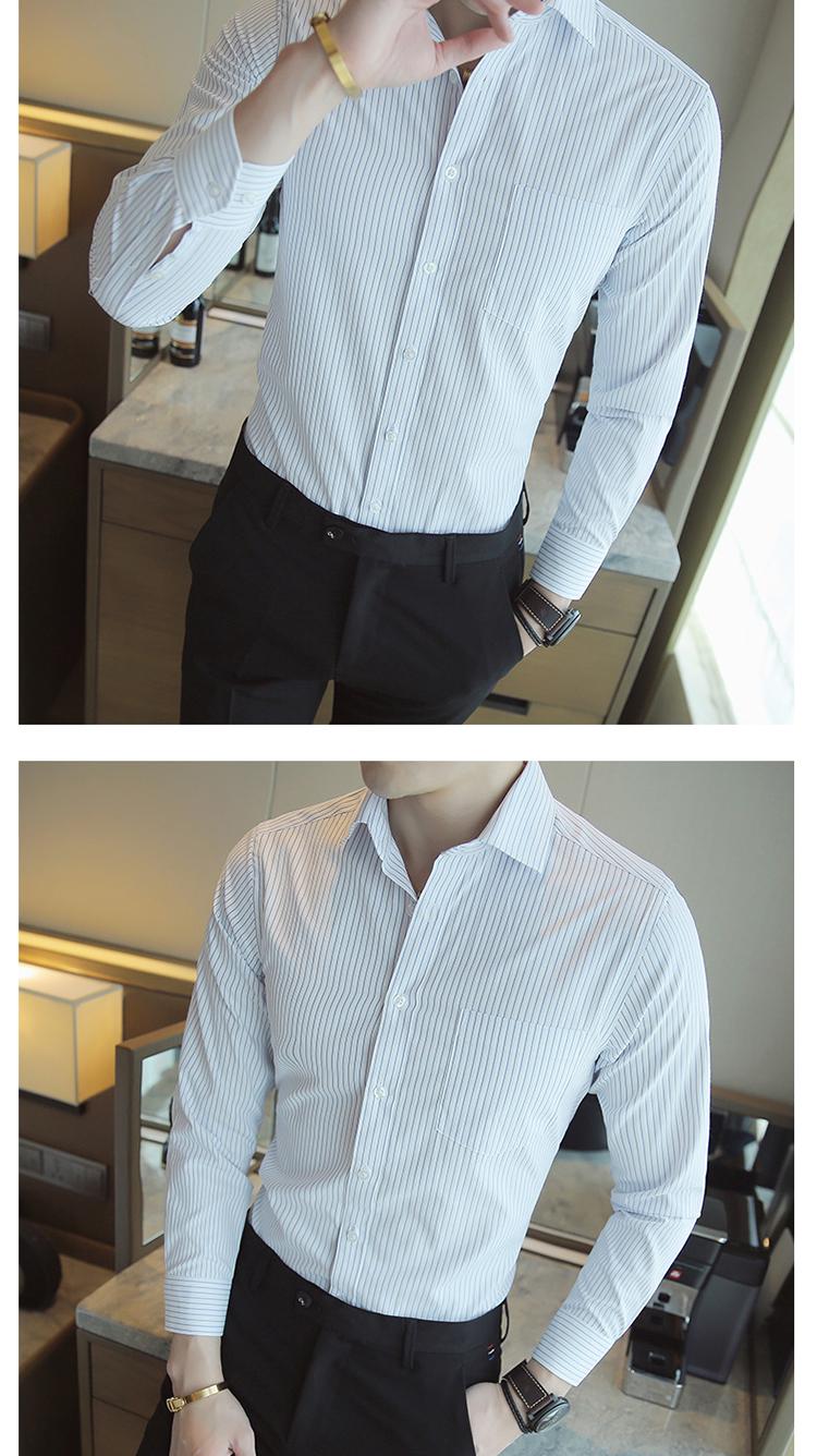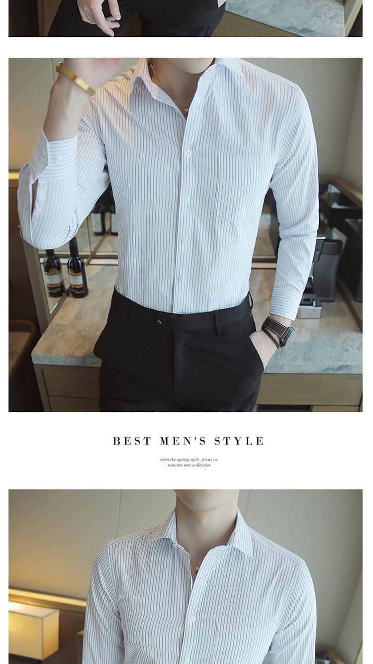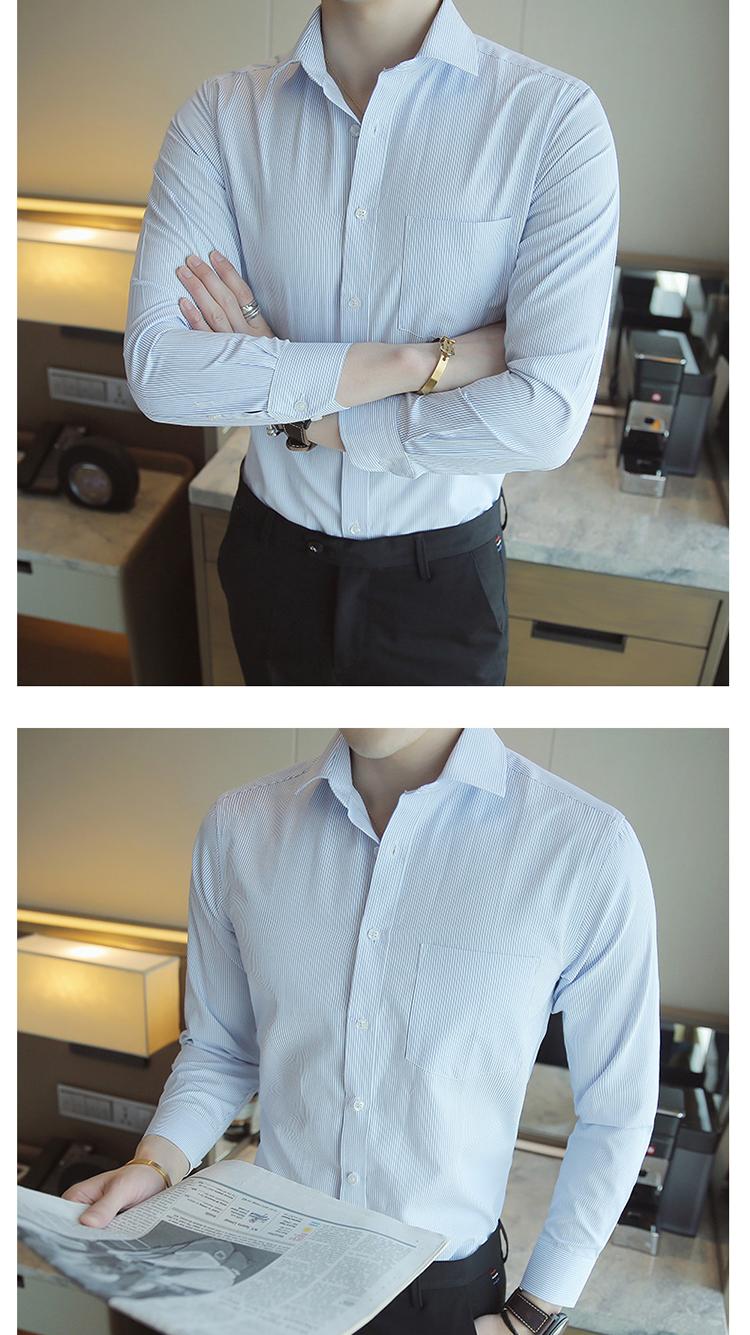 Camisa de Manga Larga para Hombre Nueva 2020 Juvenil Business Casual Color Sólido Patrón Oscuro Ajustada Ropa de Negocios Camisa para Hombre