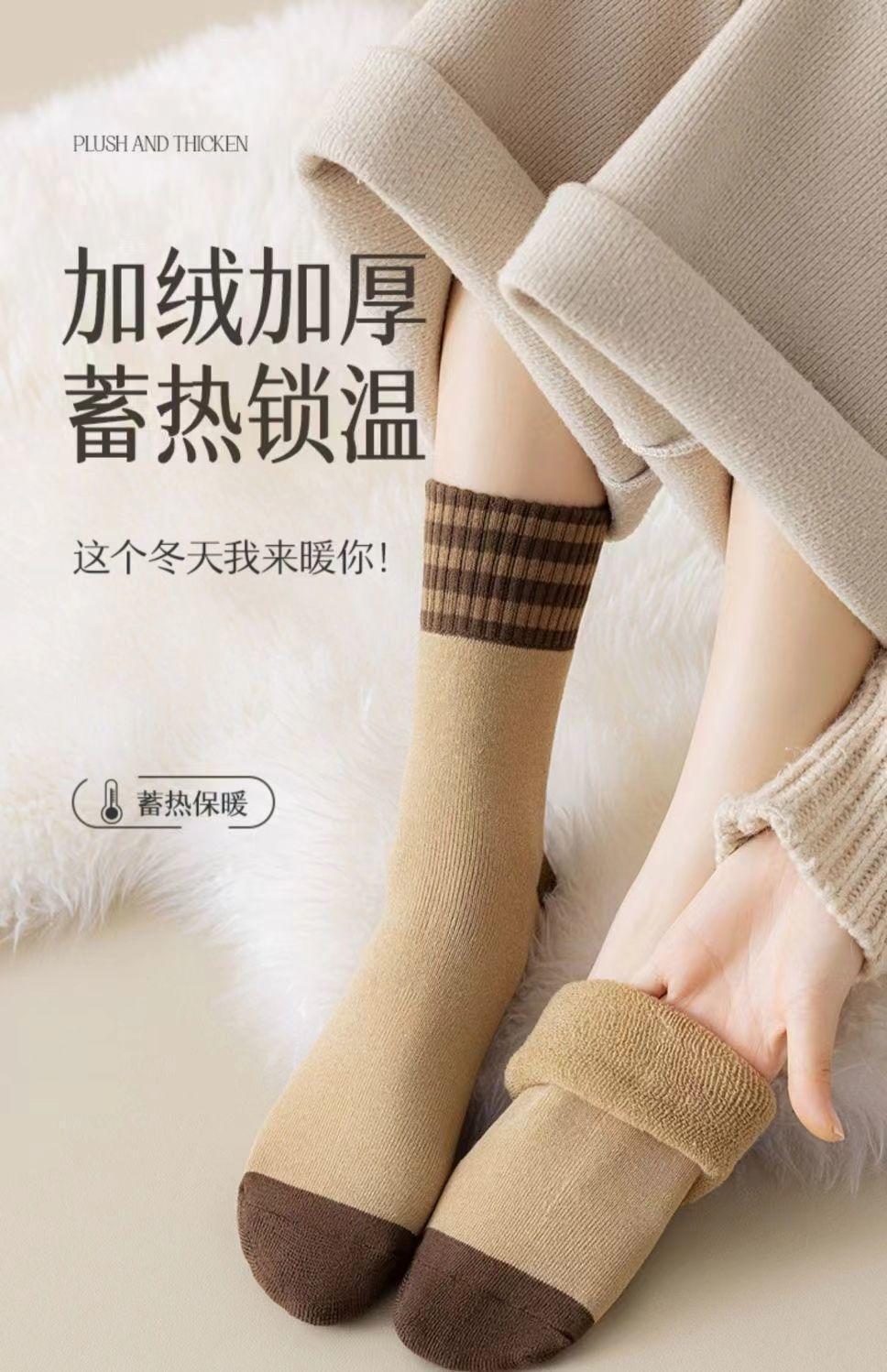 Calcetines cálidos de felpa con forro polar y engrosados para mujer, calcetines de media caña para invierno, calcetines de dormir para piso a rayas de mylar para hombre