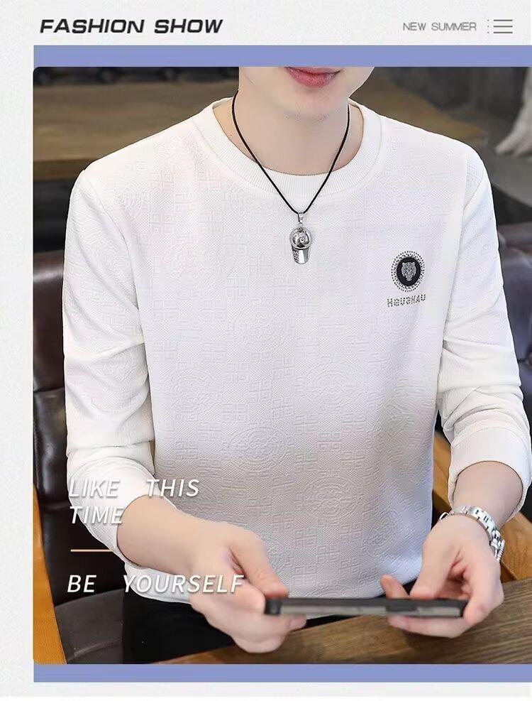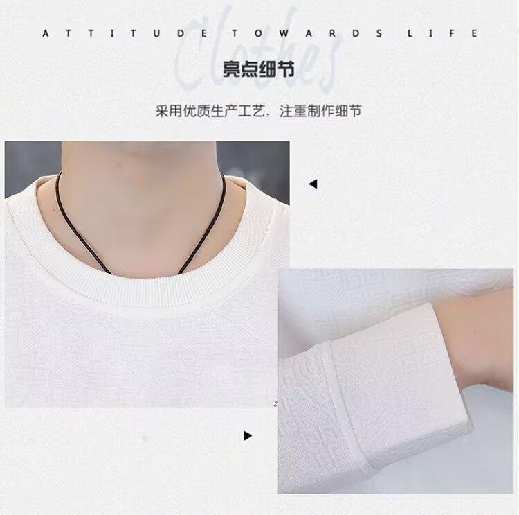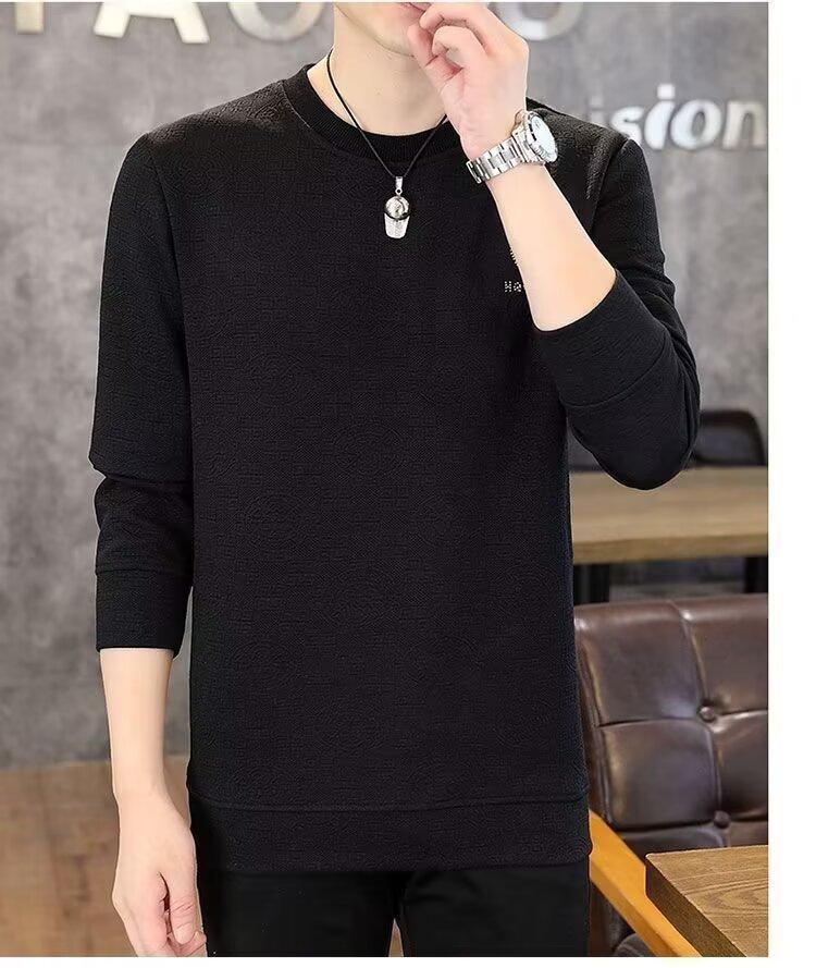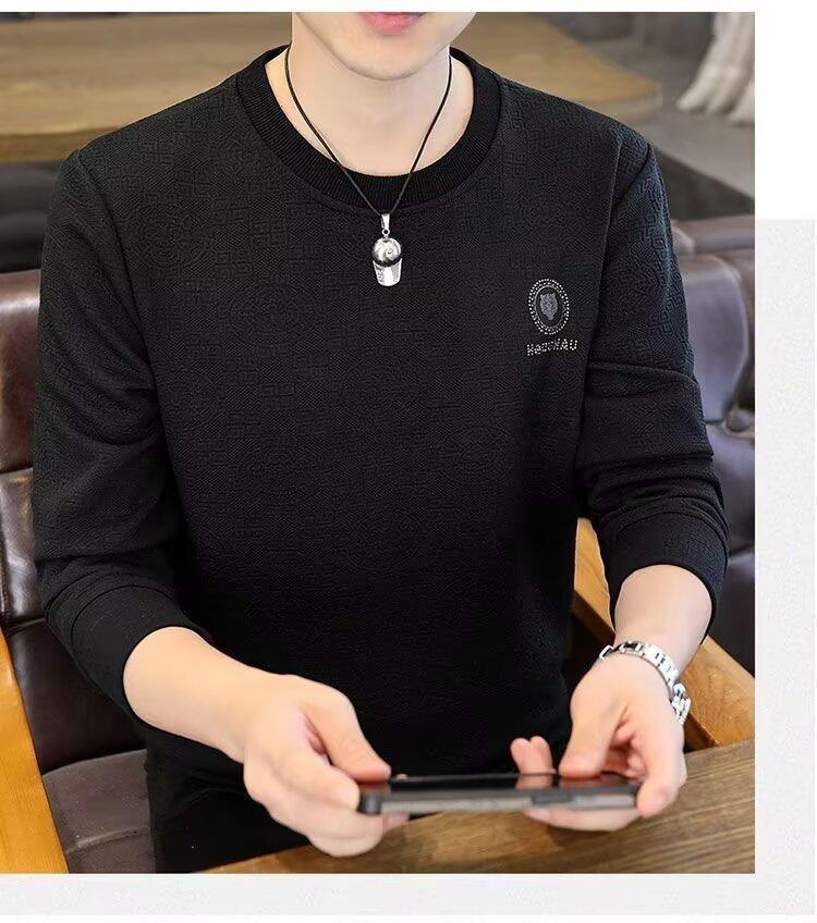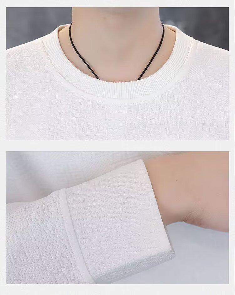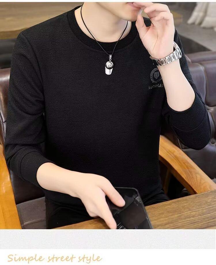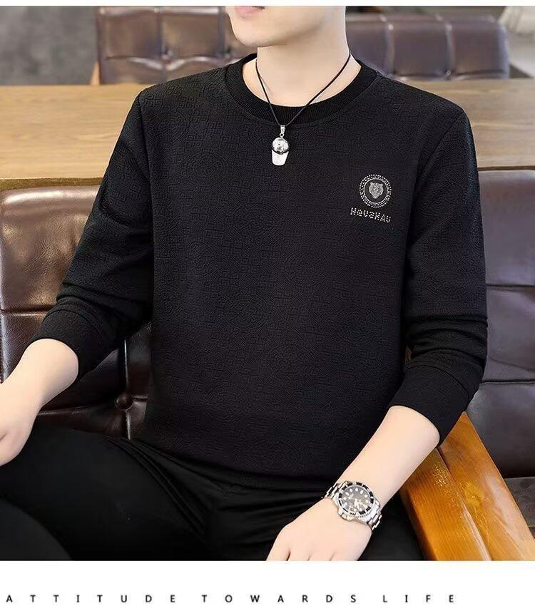 Sudadera de Cuello Redondo para Hombre 2025 Nueva Camiseta de Manga Larga Jacquard Moda Trendy Casual Versátil Talla Extra Camiseta Interior