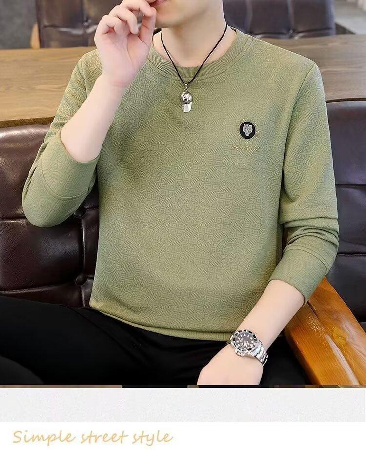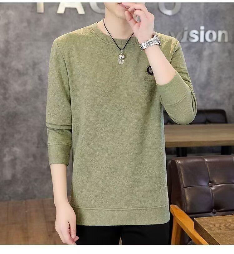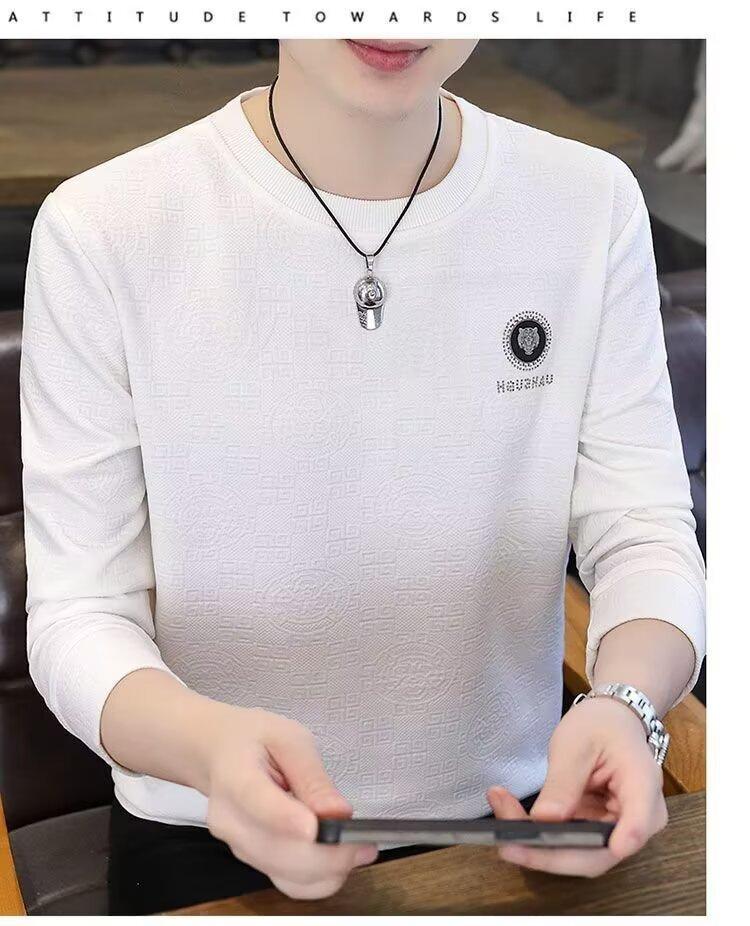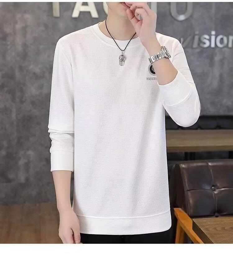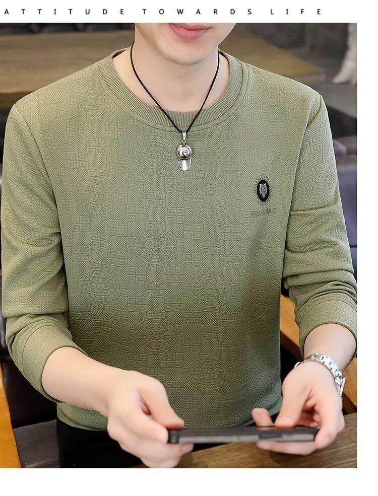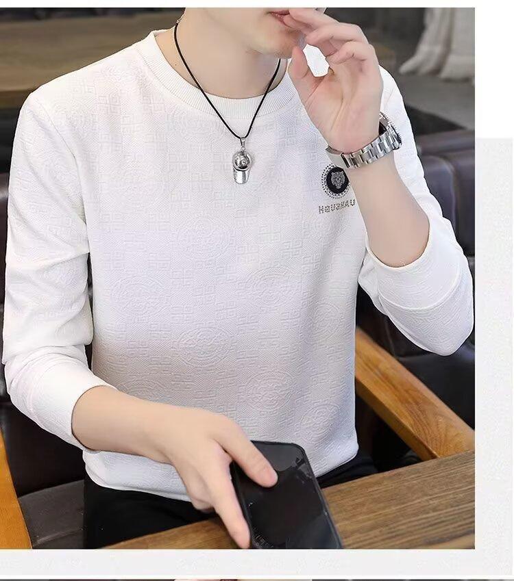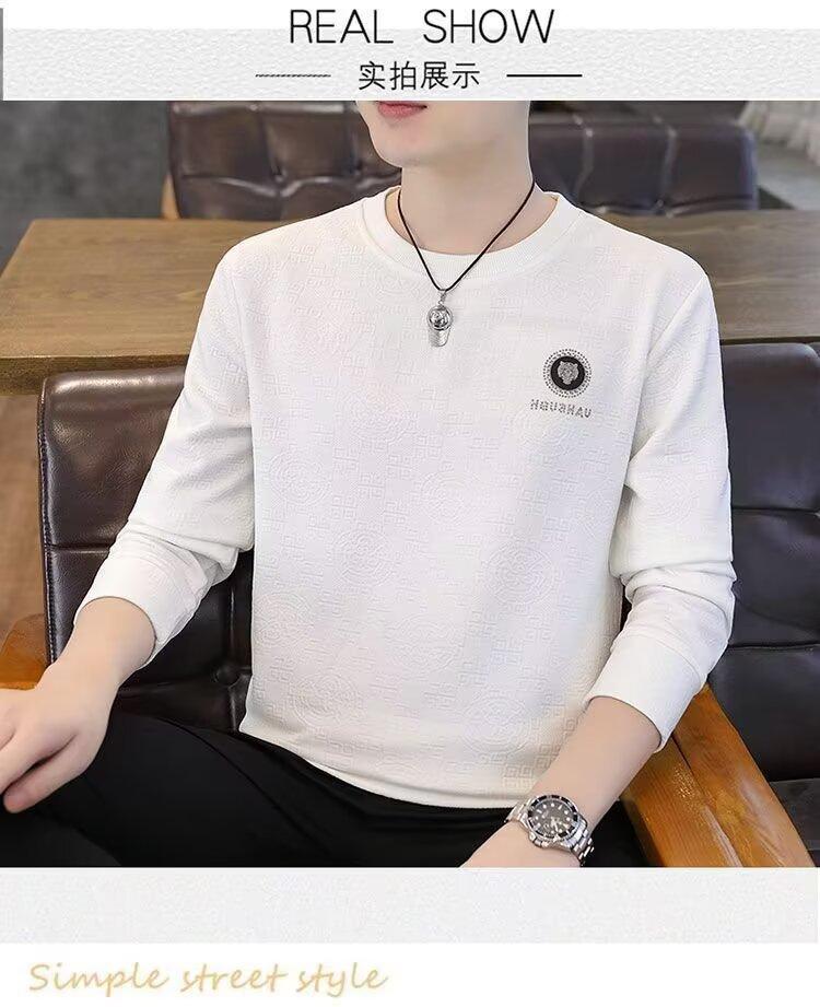 Sudadera de Cuello Redondo para Hombre 2025 Nueva Camiseta de Manga Larga Jacquard Moda Trendy Casual Versátil Talla Extra Camiseta Interior