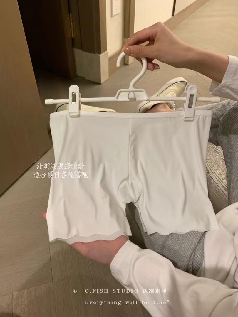 Pantalones de Seguridad de Seda de Hielo Sin Costuras de Verano Color Sólido de Una Pieza Cintura Alta Estilo Delgado Ropa Exterior Ropa Interior de Seguro Shorts Anti-Exposición Mujeres