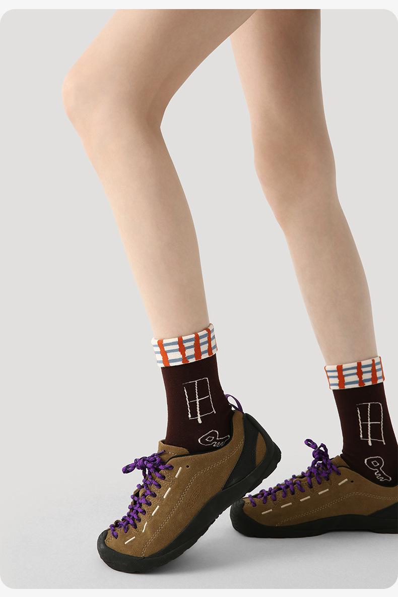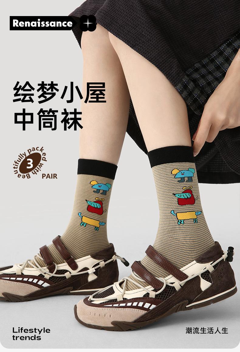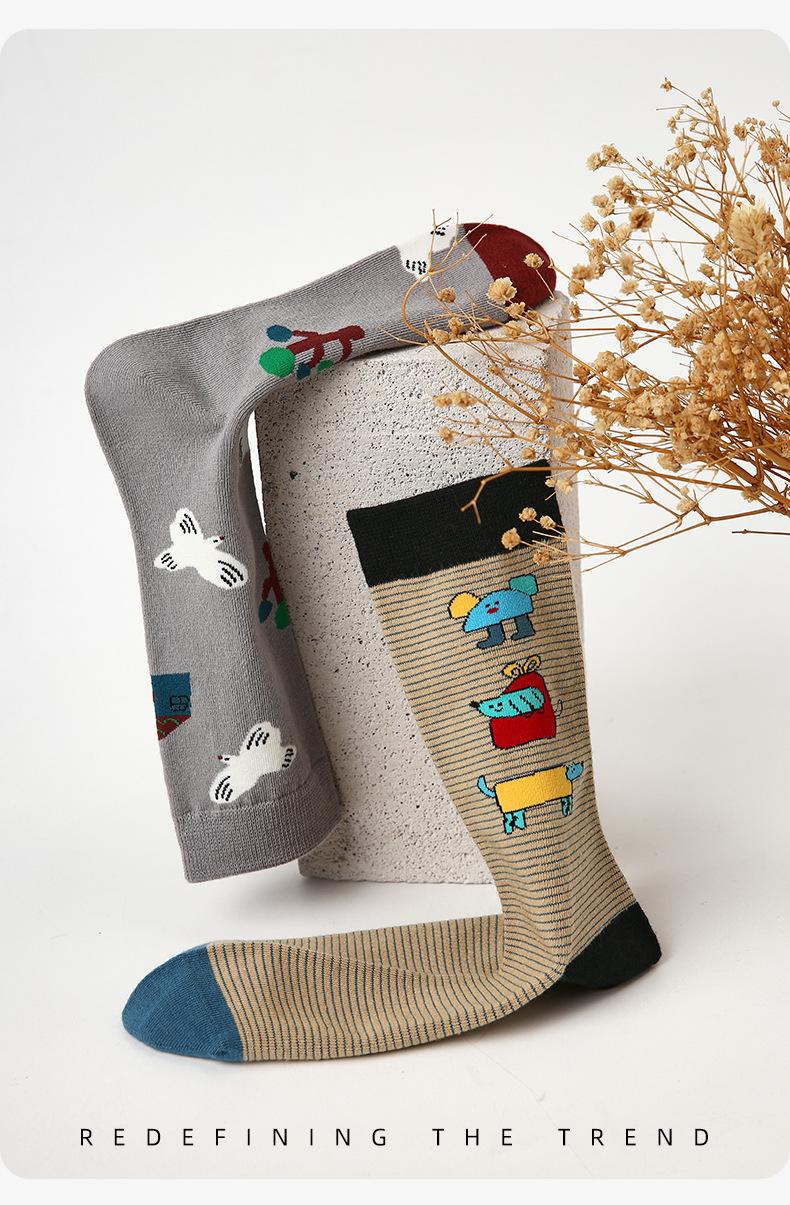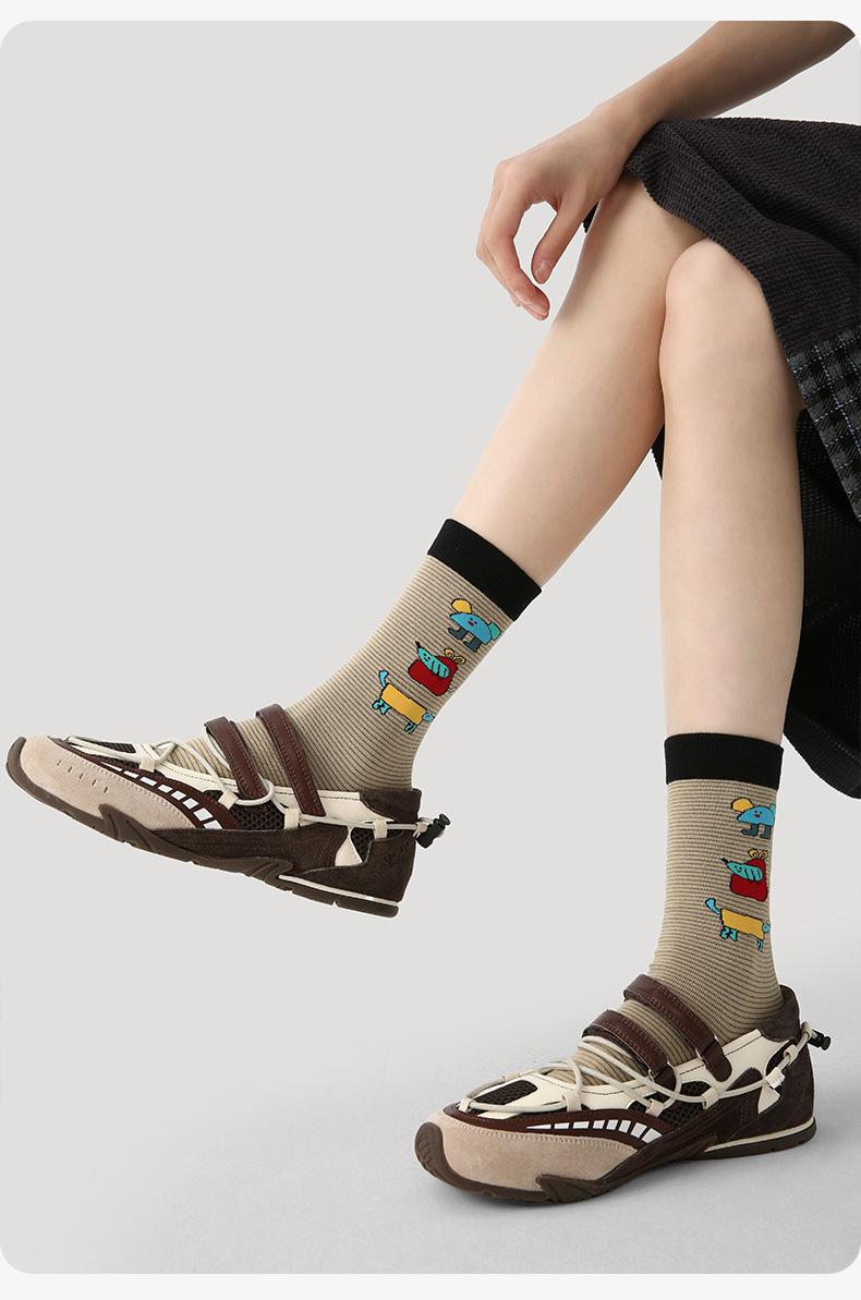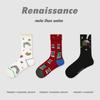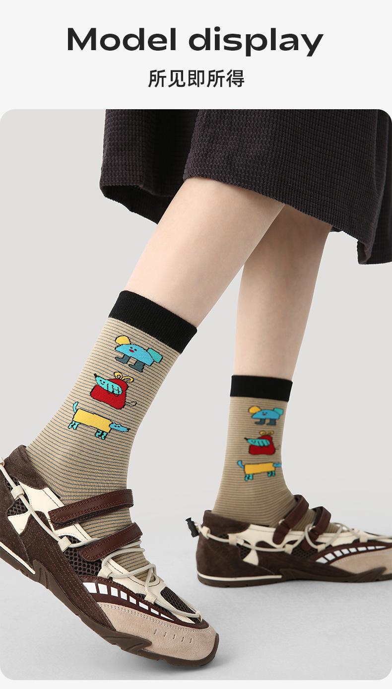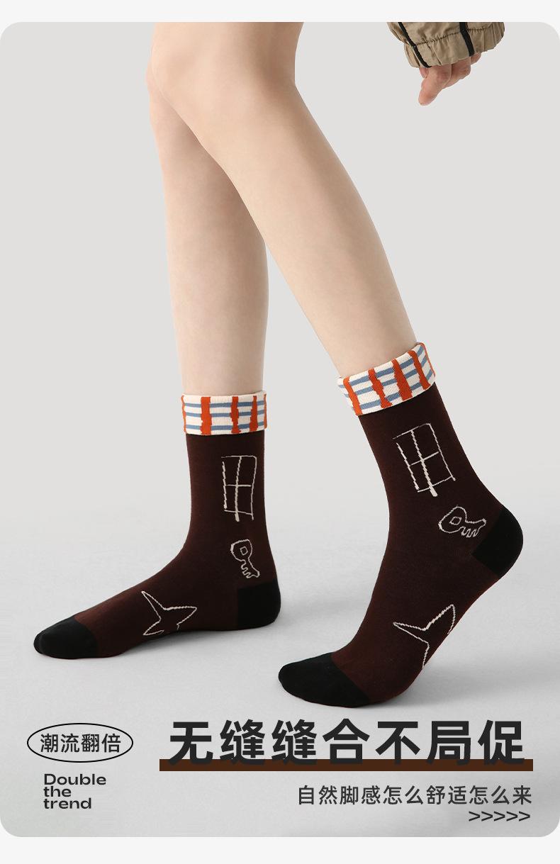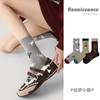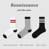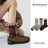 Calcetines Originales Renacentistas para Mujer de Moda Otoño e Invierno Nuevos Algodón Peinado Bloque de Color Raya Sin Costuras Media Caña para Mujer