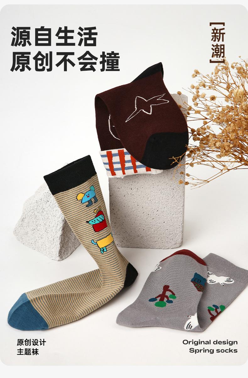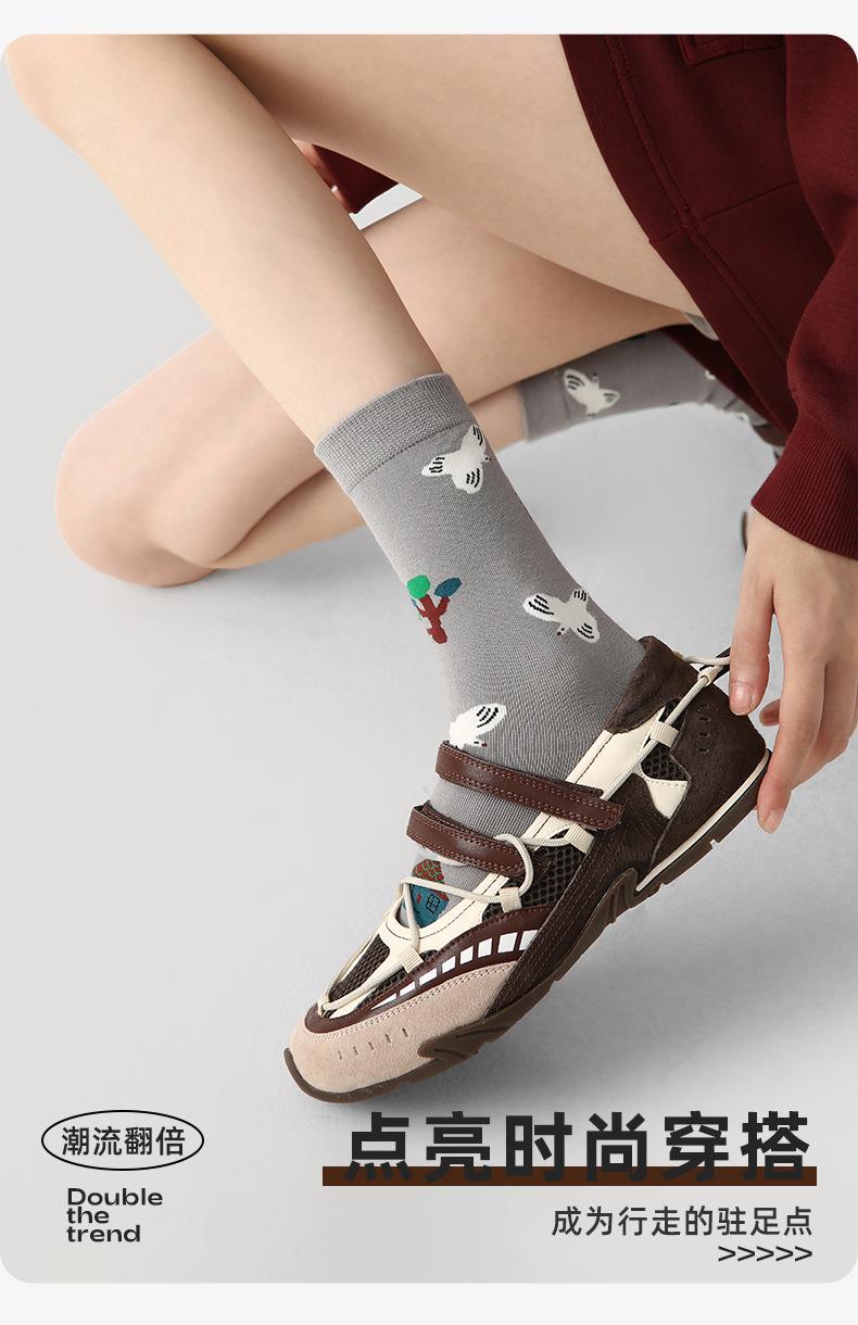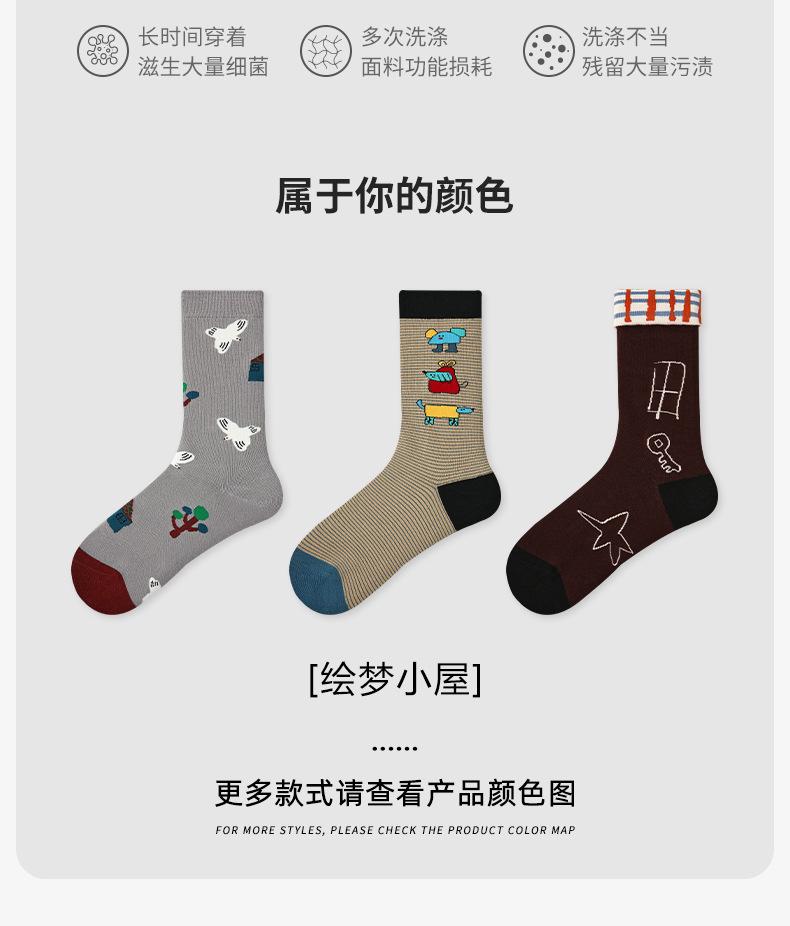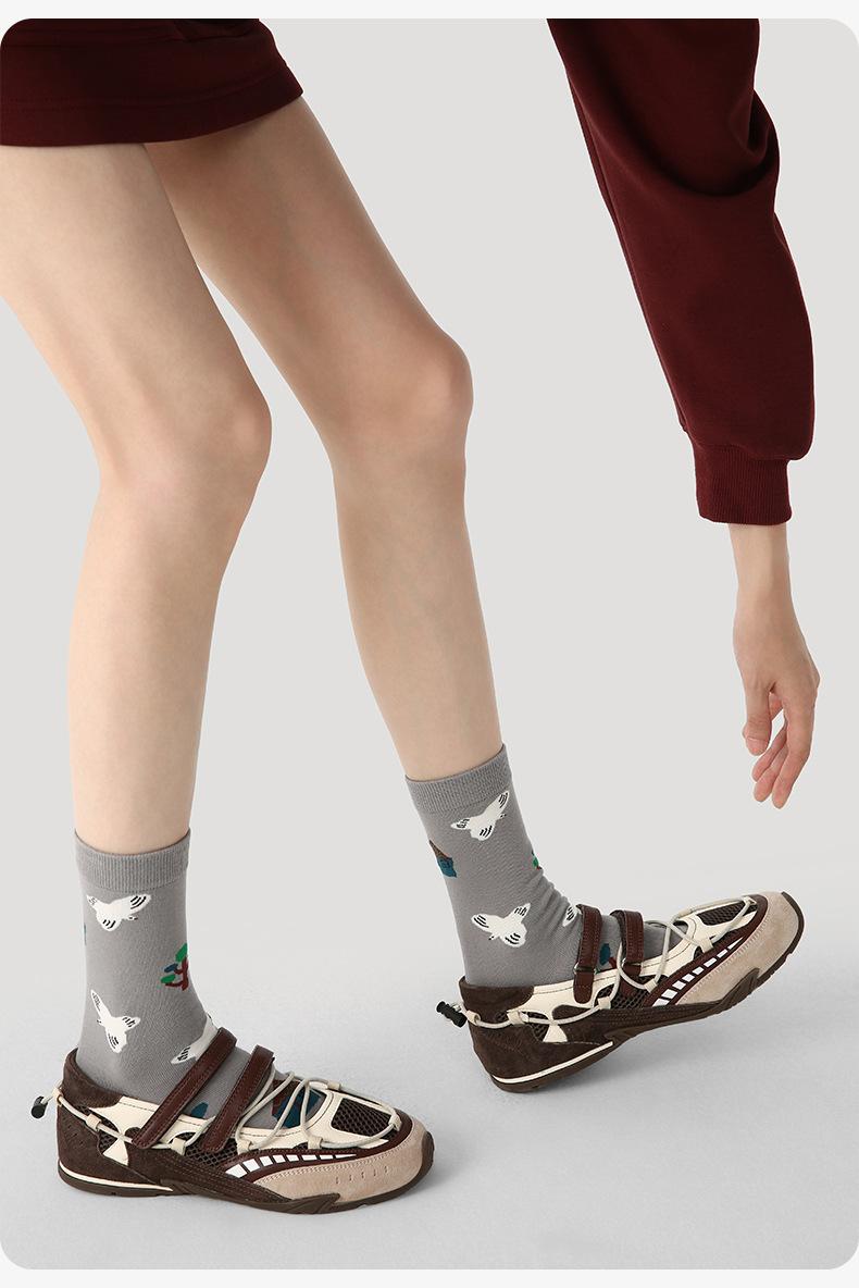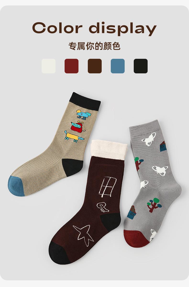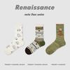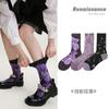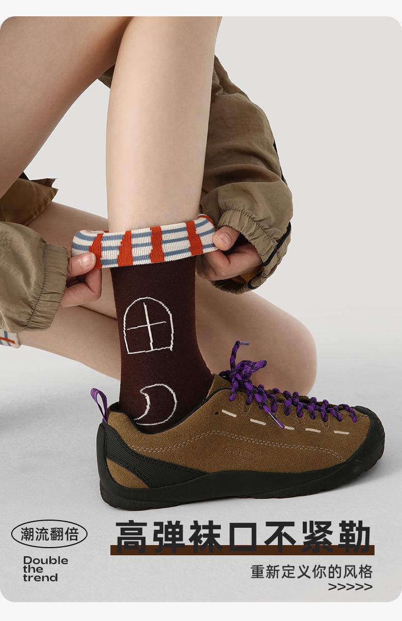 Calcetines Originales Renacentistas para Mujer de Moda Otoño e Invierno Nuevos Algodón Peinado Bloque de Color Raya Sin Costuras Media Caña para Mujer