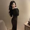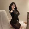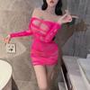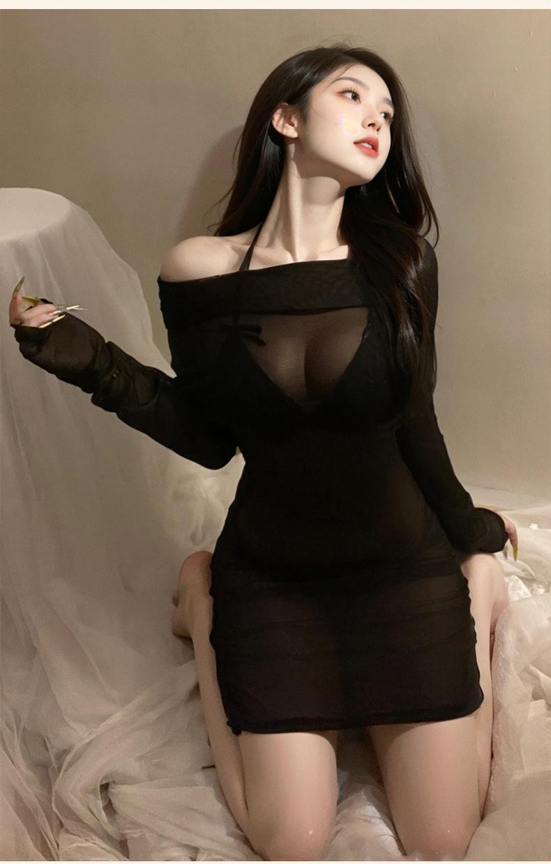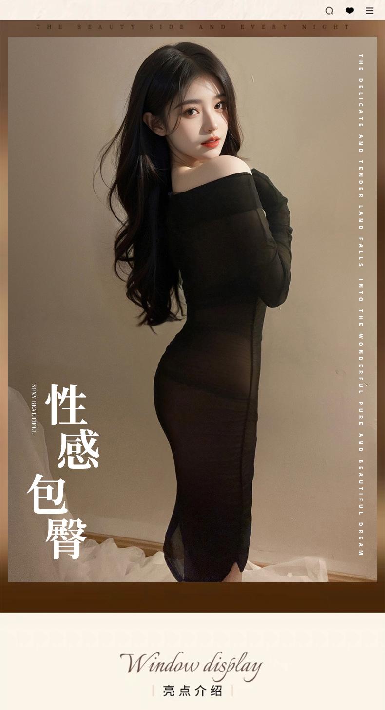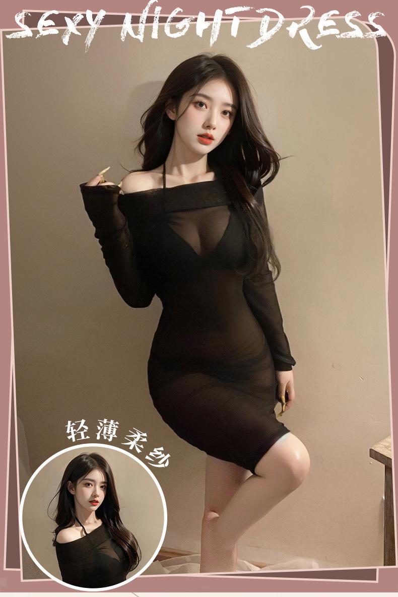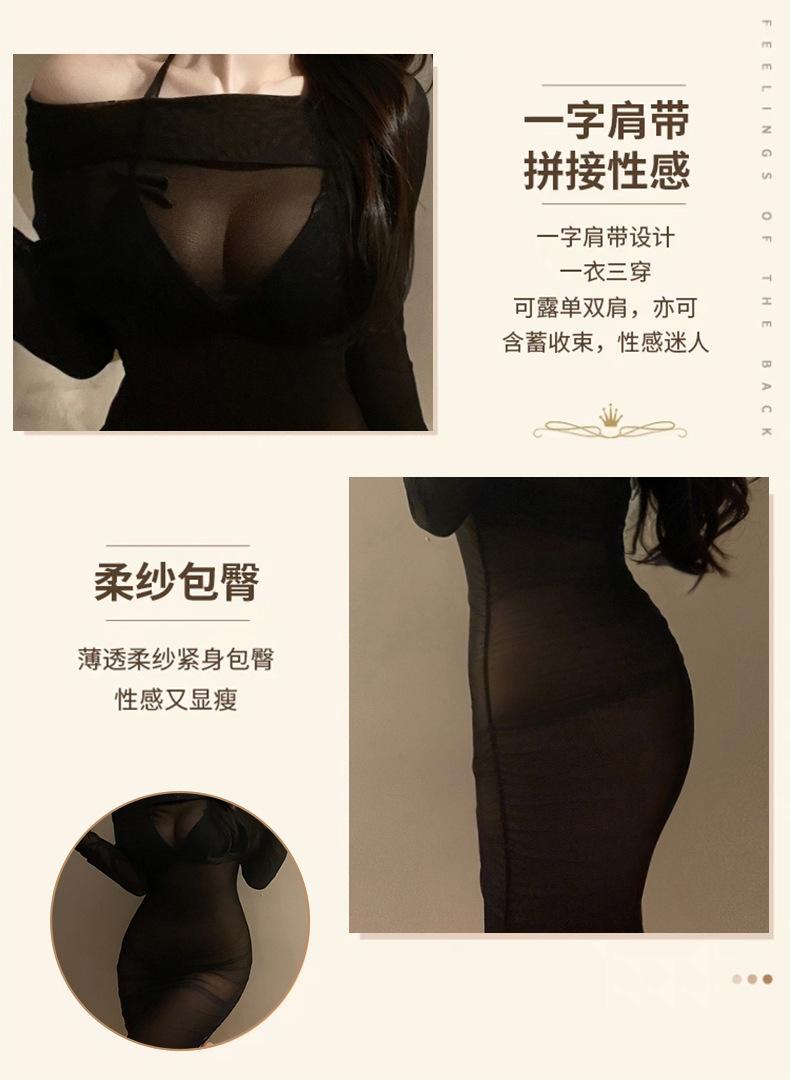 See-through off-the-shoulder bodycon dress, See-through off-shoulder hip-hugging dress + sexy bodysuit
