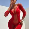 See-through off-shoulder hip-hugging dress + sexy bodysuit