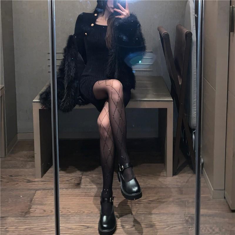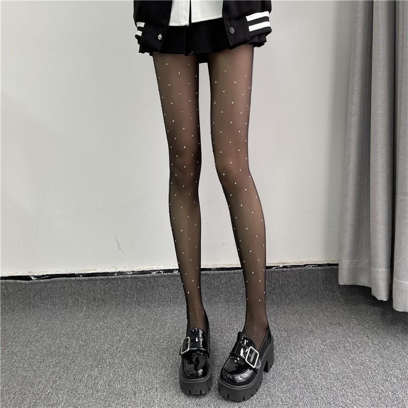 4. Medias negras brillantes de moda para celebridades de Internet con diamantes ahora en stock y enviadas en segundos