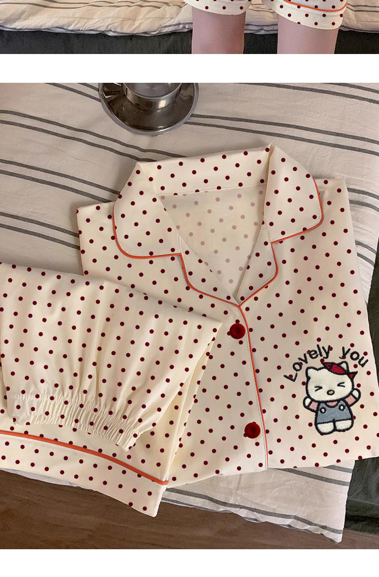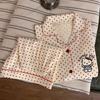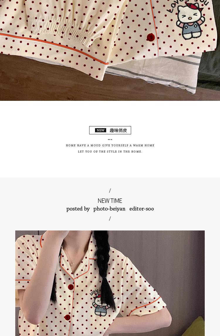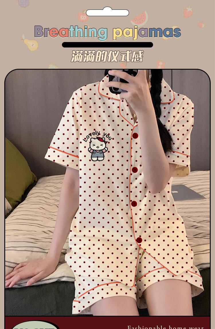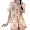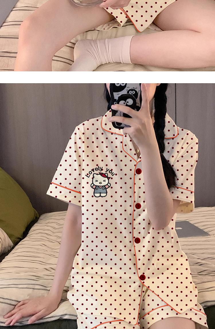 Pijama de Lunares Rojos Bordado de Dibujos Animados para Mujer Verano Nuevo Manga Corta Shorts Delgada Estudiante Casual Ropa para el Hogar Venta al por Mayor
