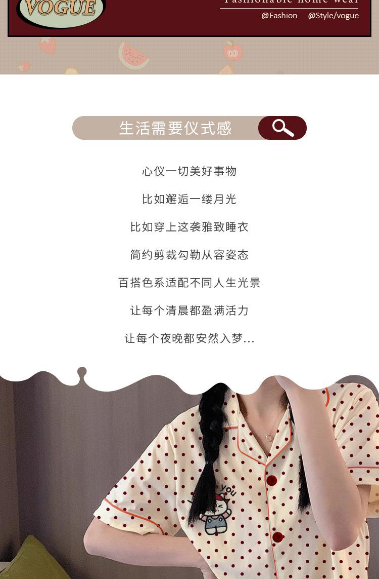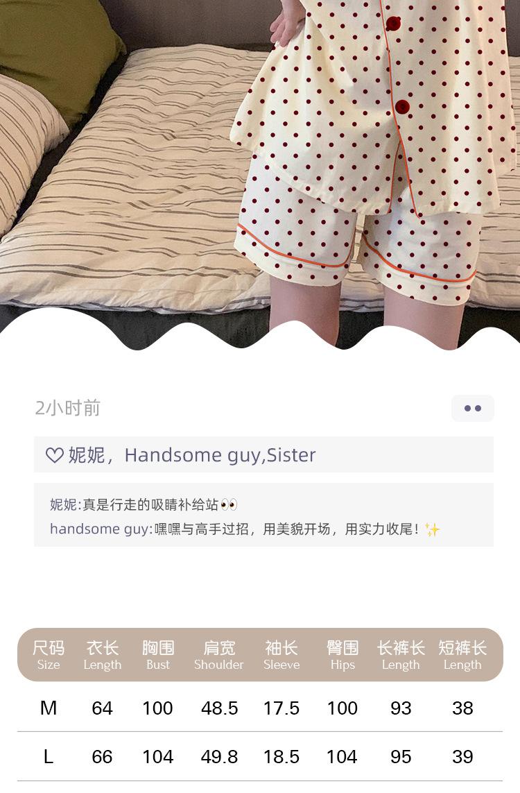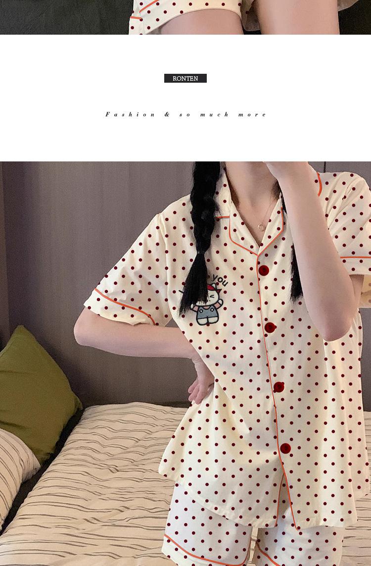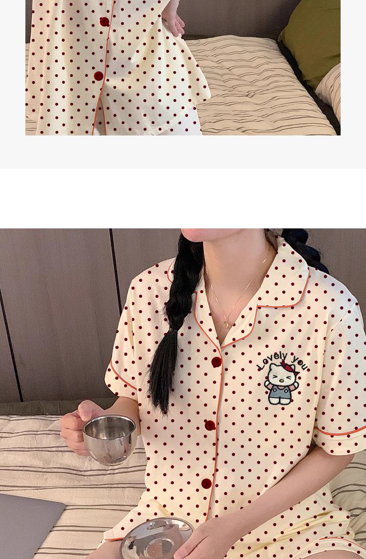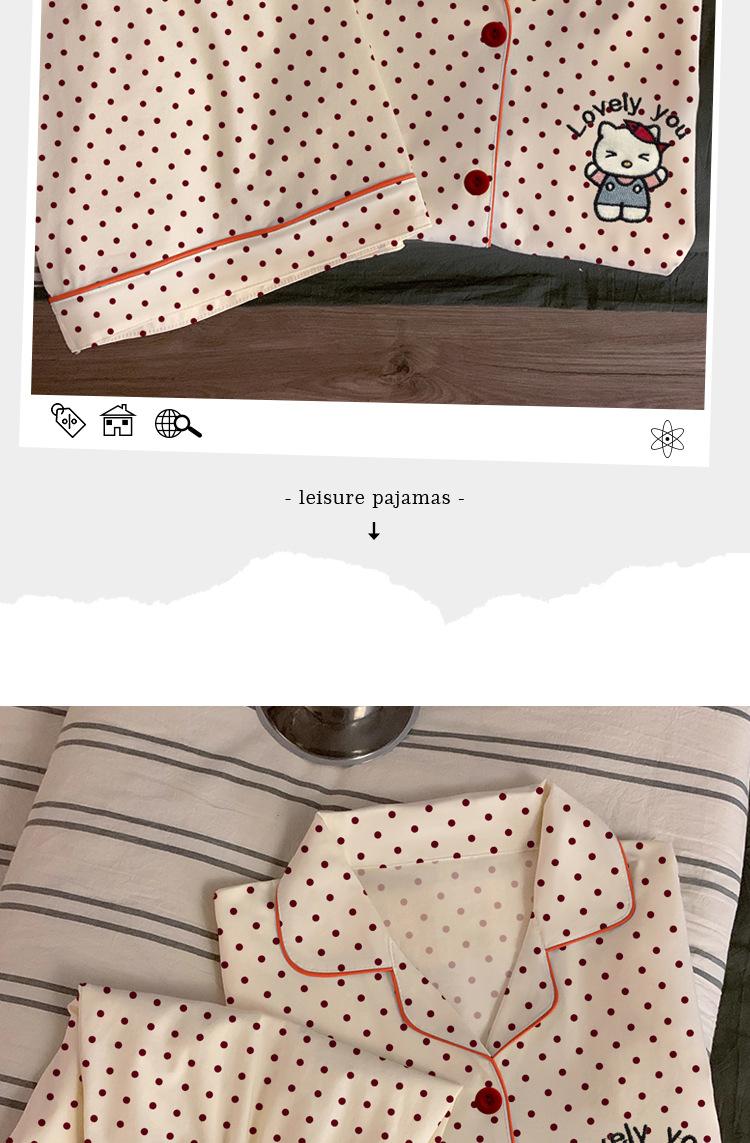 Pijama de Lunares Rojos Bordado de Dibujos Animados para Mujer Verano Nuevo Manga Corta Shorts Delgada Estudiante Casual Ropa para el Hogar Venta al por Mayor