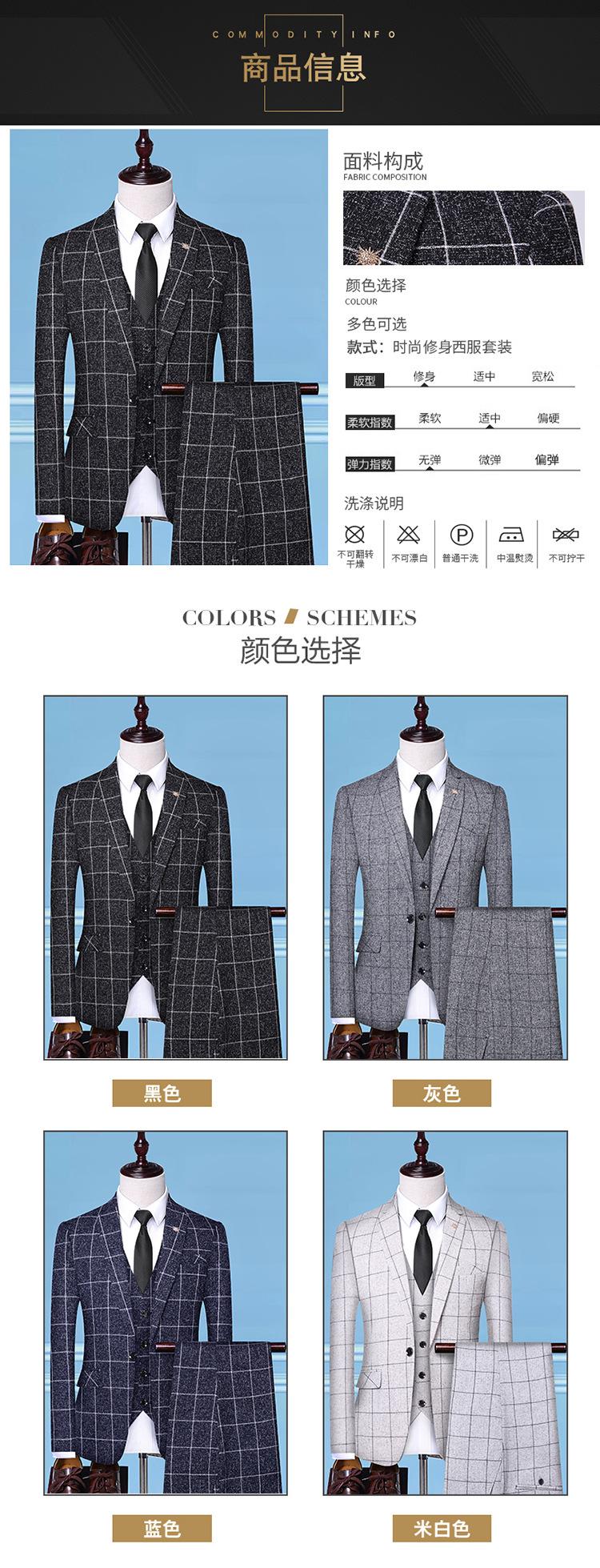 Compra Nuevo Conjunto de Traje Estilo Británico para Hombre, Traje Casual de Negocios para Jóvenes, Cuadros, Traje Pequeño de Tres Piezas para Hombre al por mayor en Joom.pro