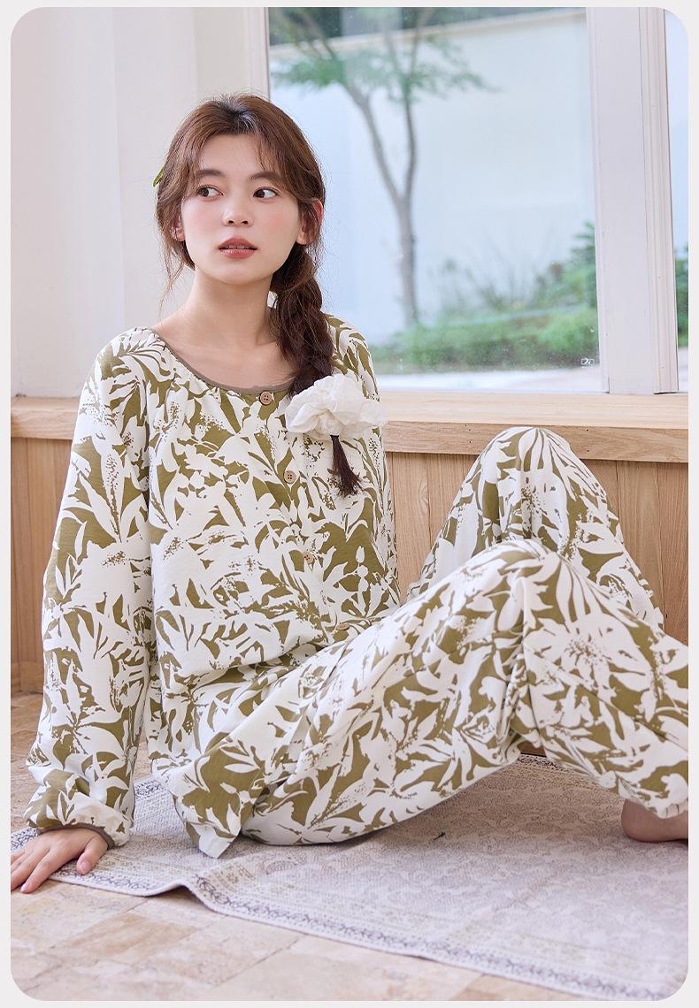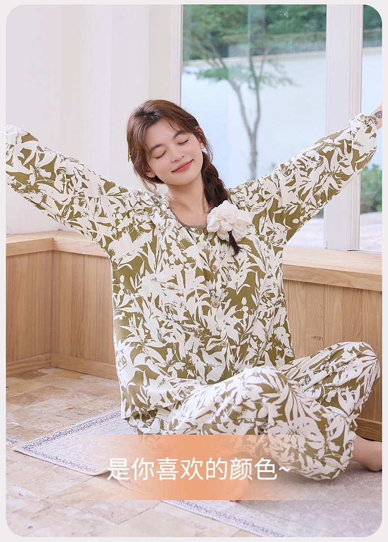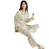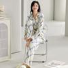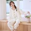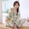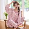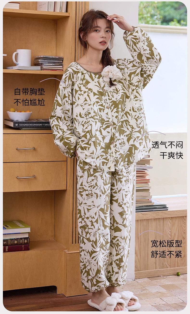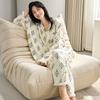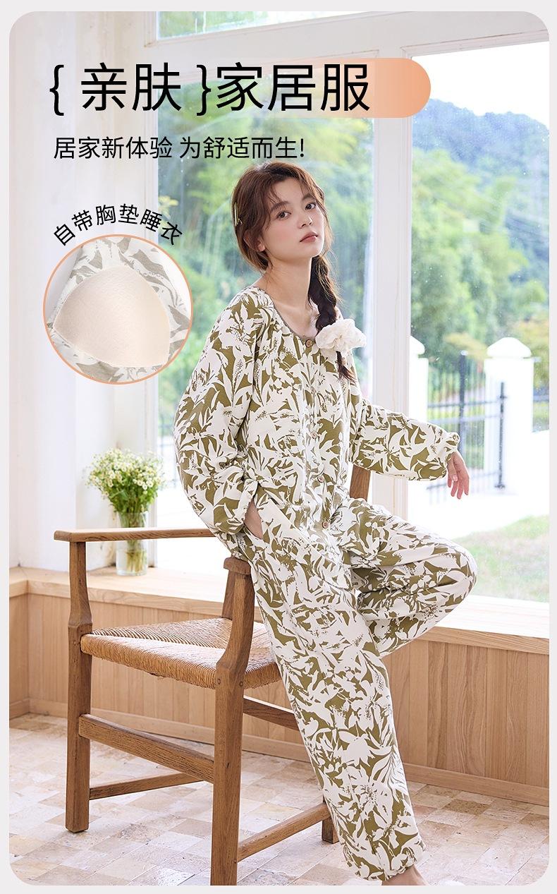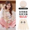 Color Sólido Venta al por Mayor En Stock con Almohadilla en el Pecho Pijama de Algodón Nube para Mujer Primavera y Otoño Manga Larga Pantalón Largo Ropa para el Hogar Conjunto de Dos Piezas