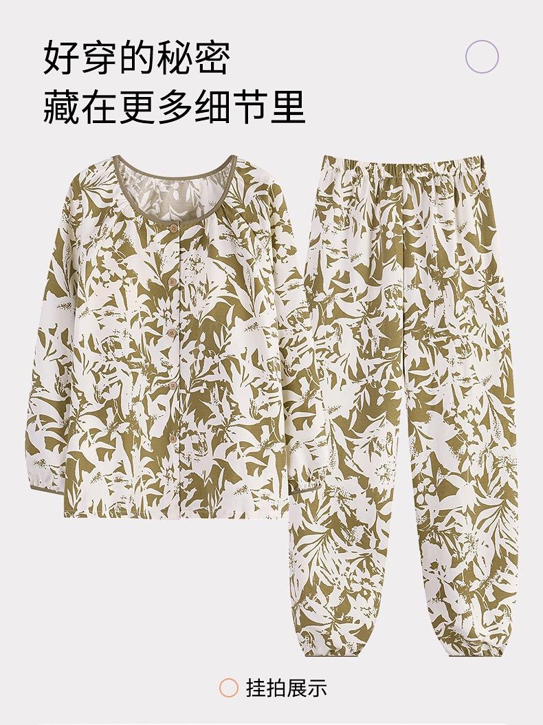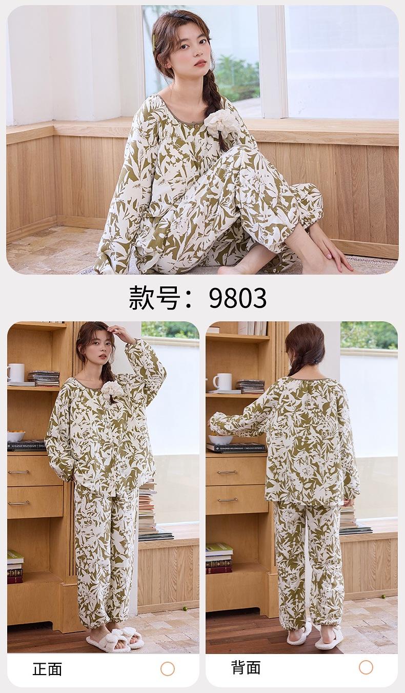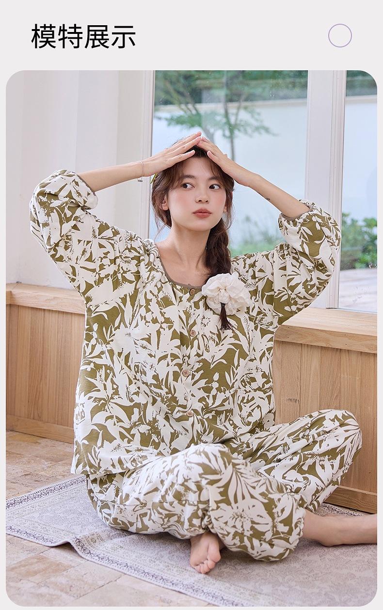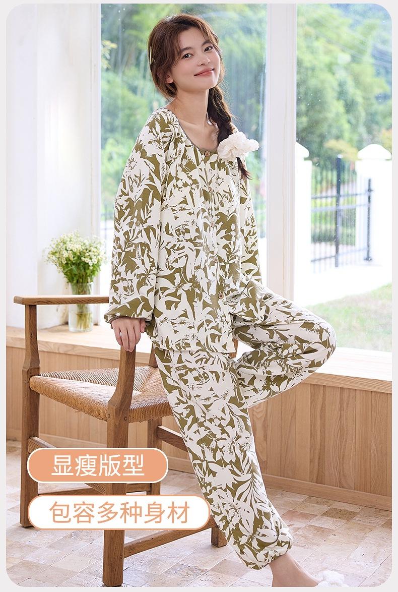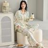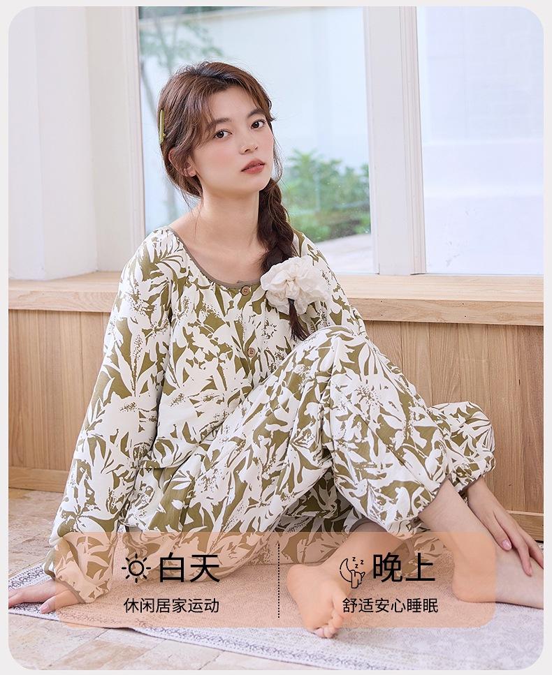 Color Sólido Venta al por Mayor En Stock con Almohadilla en el Pecho Pijama de Algodón Nube para Mujer Primavera y Otoño Manga Larga Pantalón Largo Ropa para el Hogar Conjunto de Dos Piezas