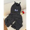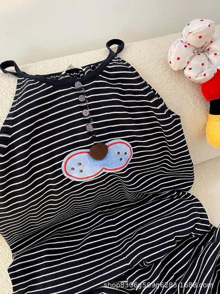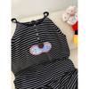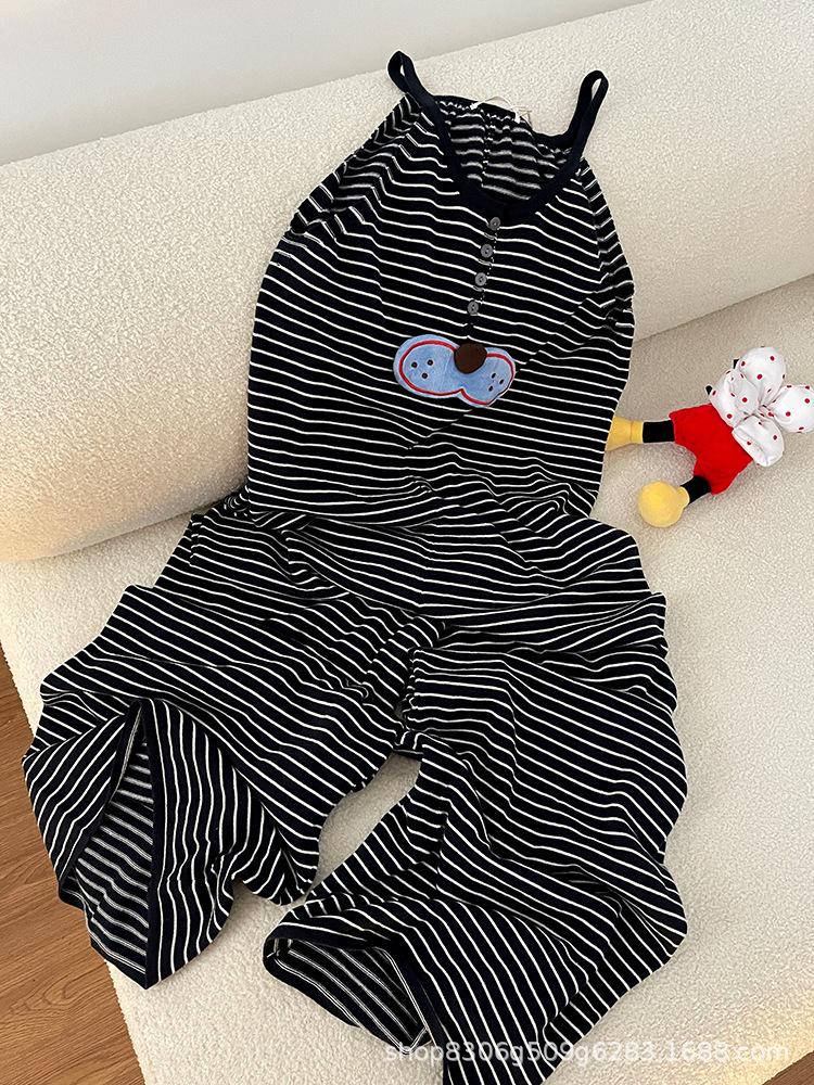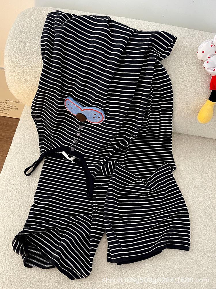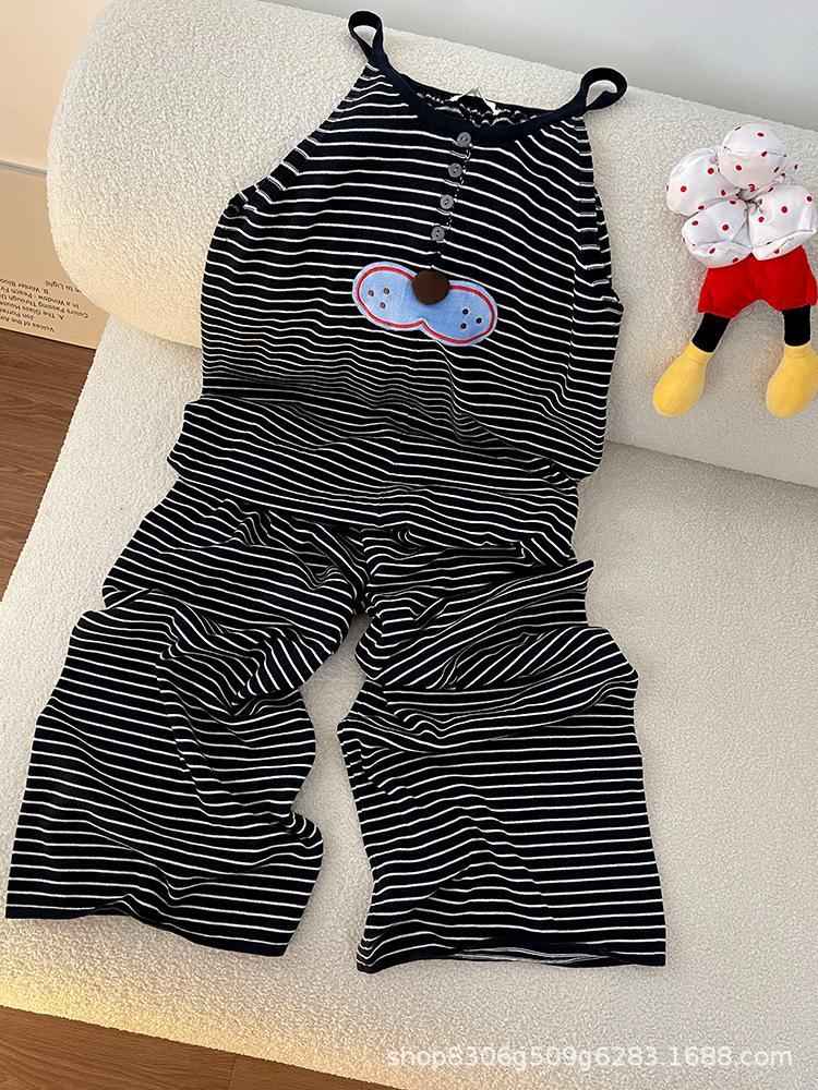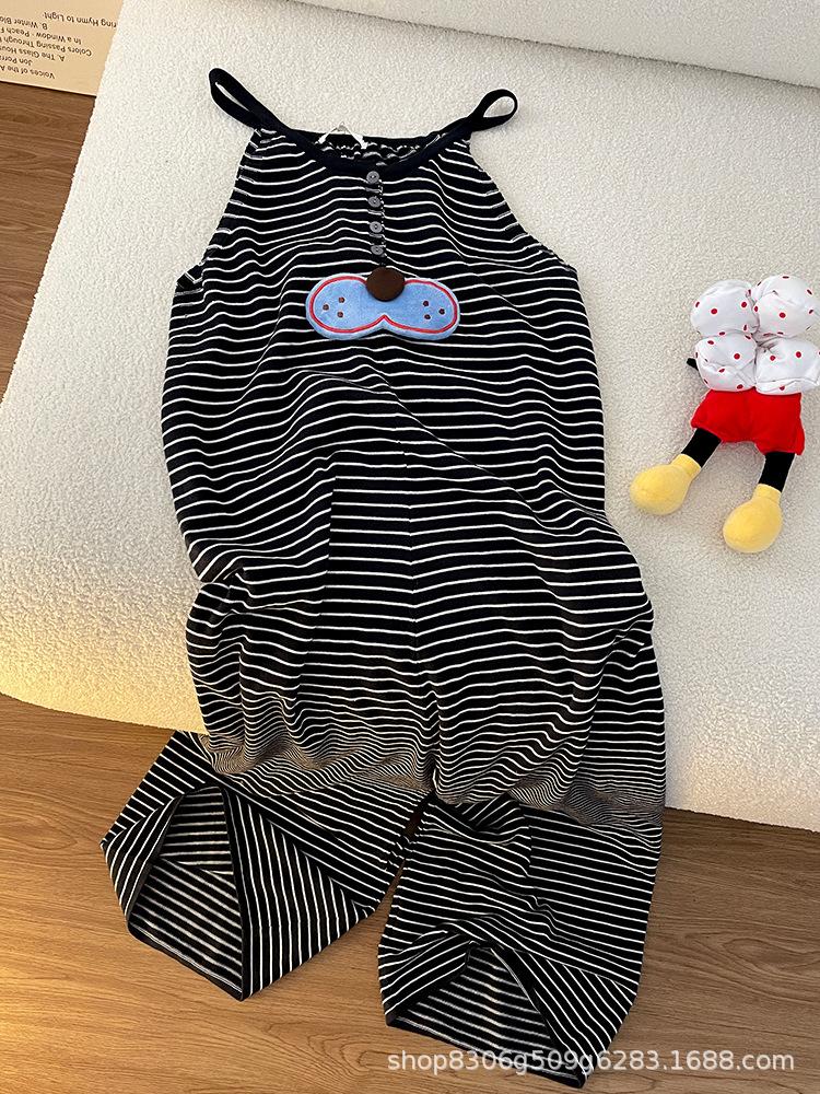 Sin Glee Chica Gato Cool Estampado de Rayas Pijama Mameluco de Verano para Mujer Se Puede Usar Afuera Mono Negro de Talla Grande