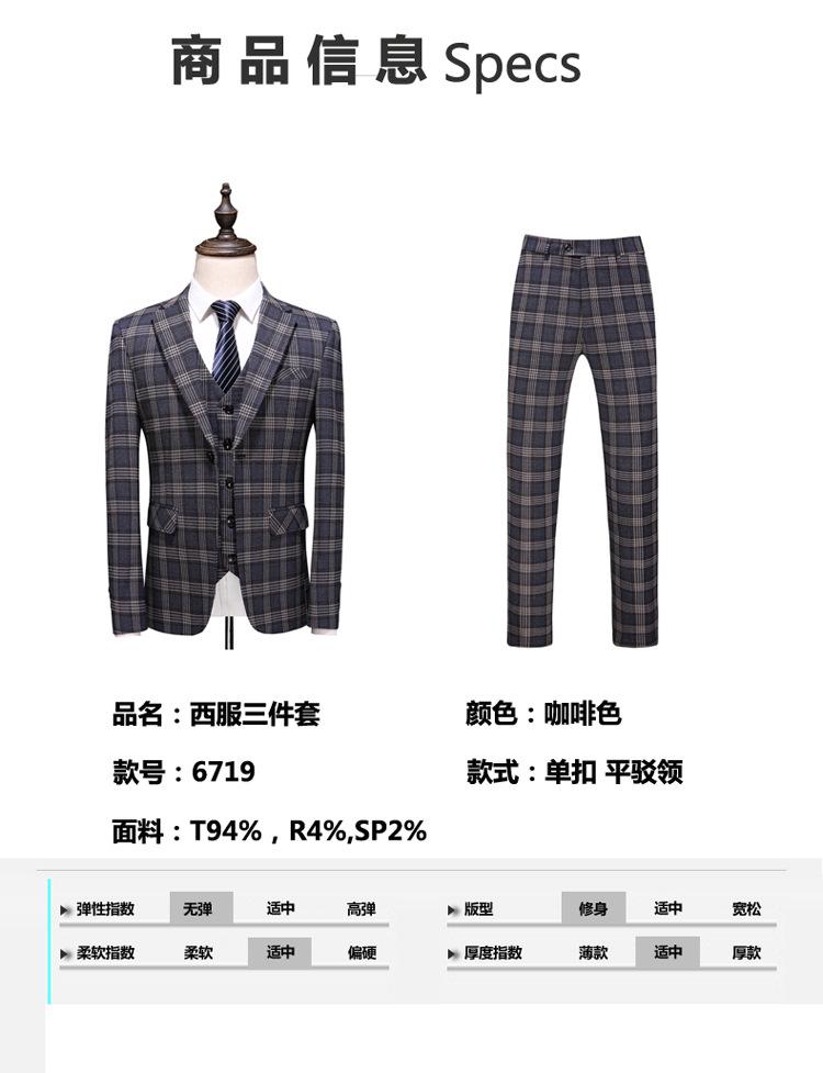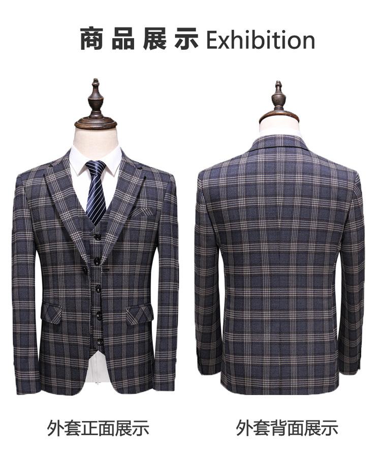 Traje de Hombre Nuevo de Marca de Moda Tres Piezas Británico Juvenil Negocios Moda Casual a Rayas Cuadros Traje para Hombre