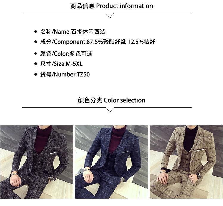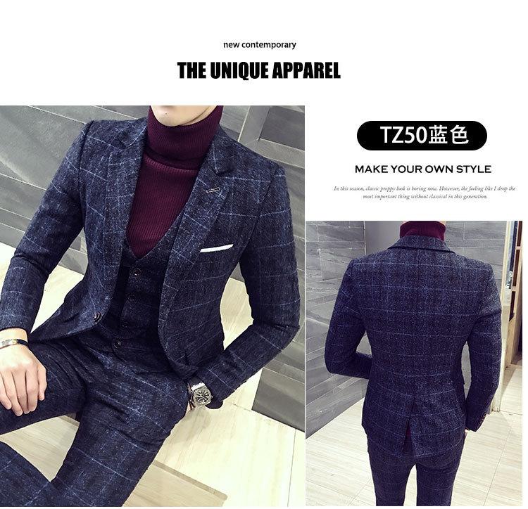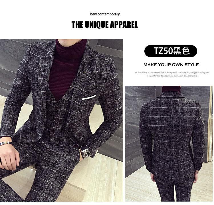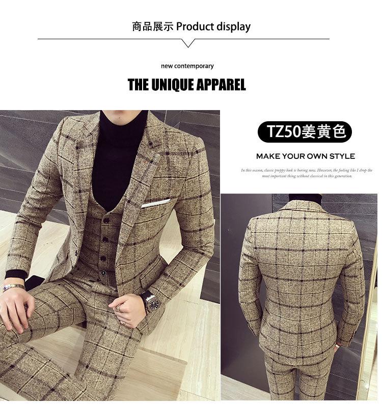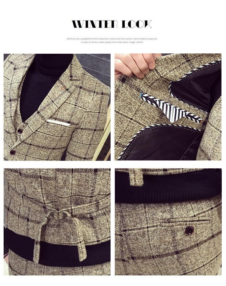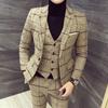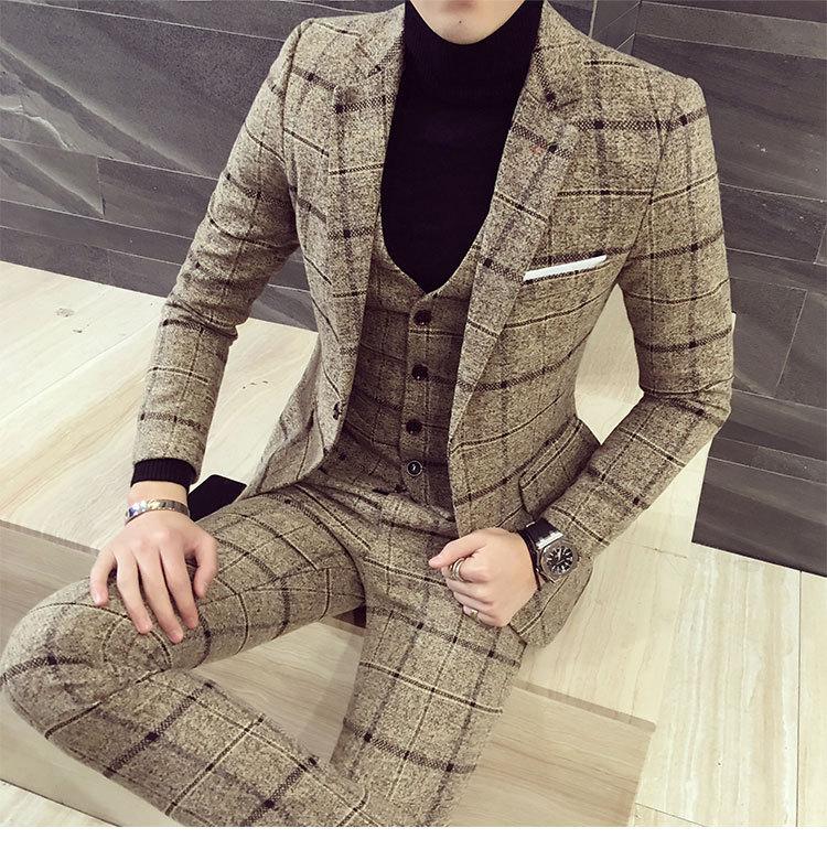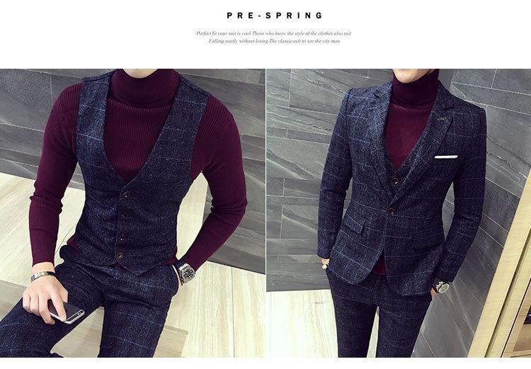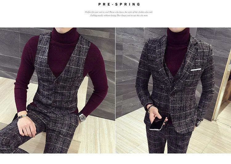 Traje Nuevo de Moda para Hombre Tres Piezas Juvenil Estilo Británico a Rayas Cuadros Traje Novio Vestido de Boda