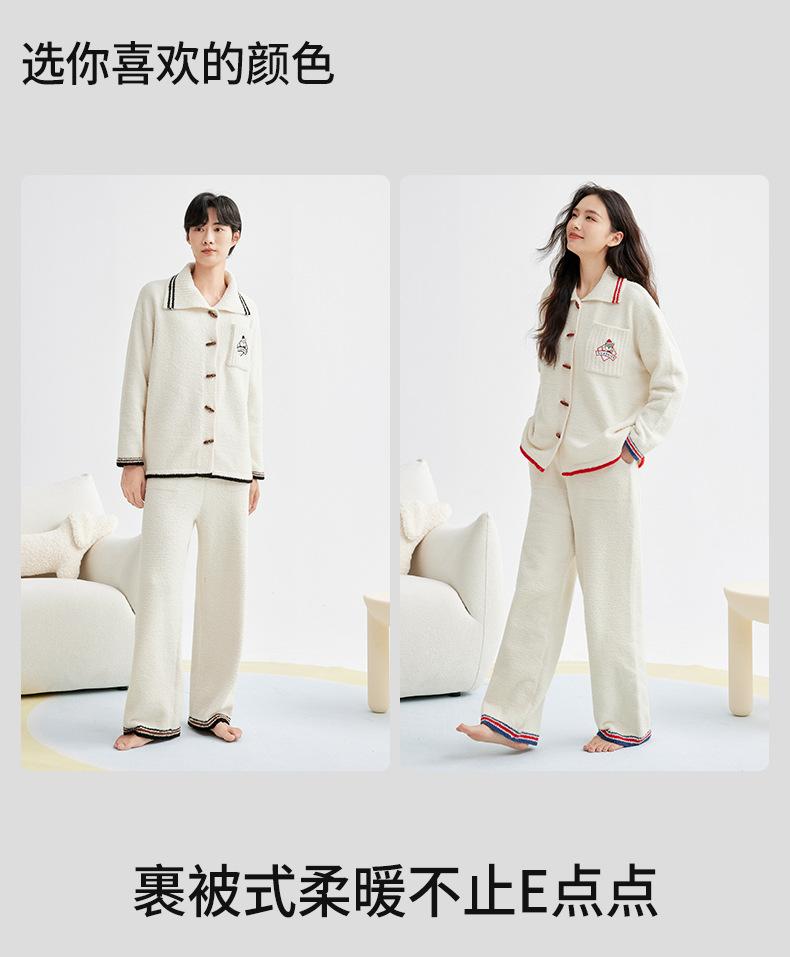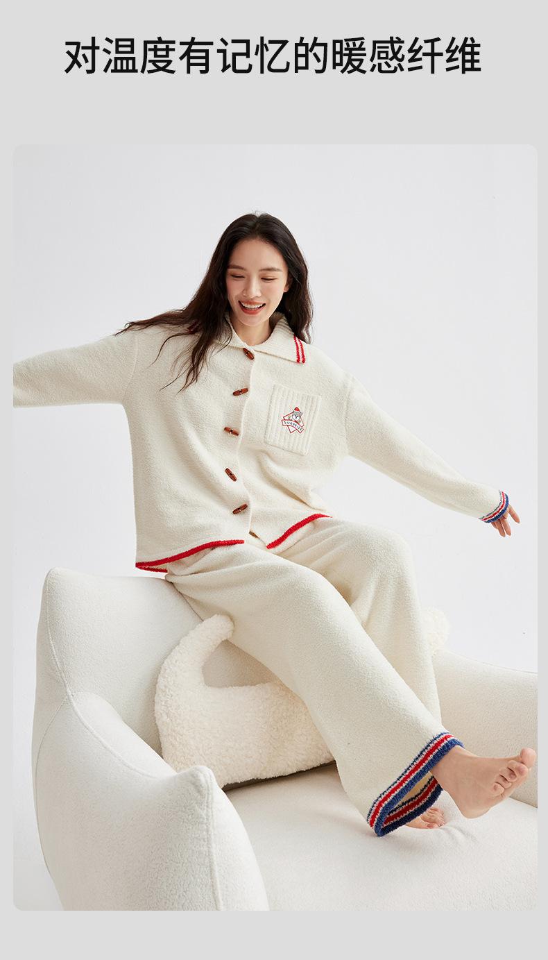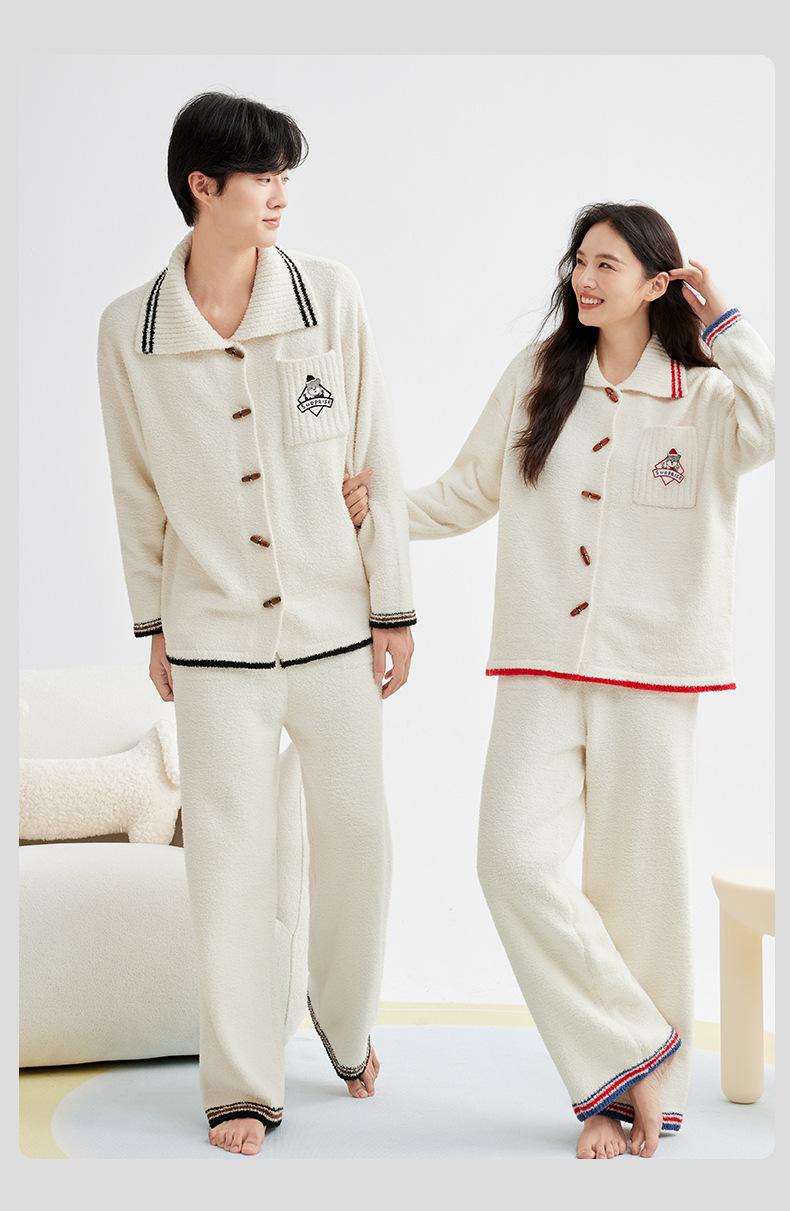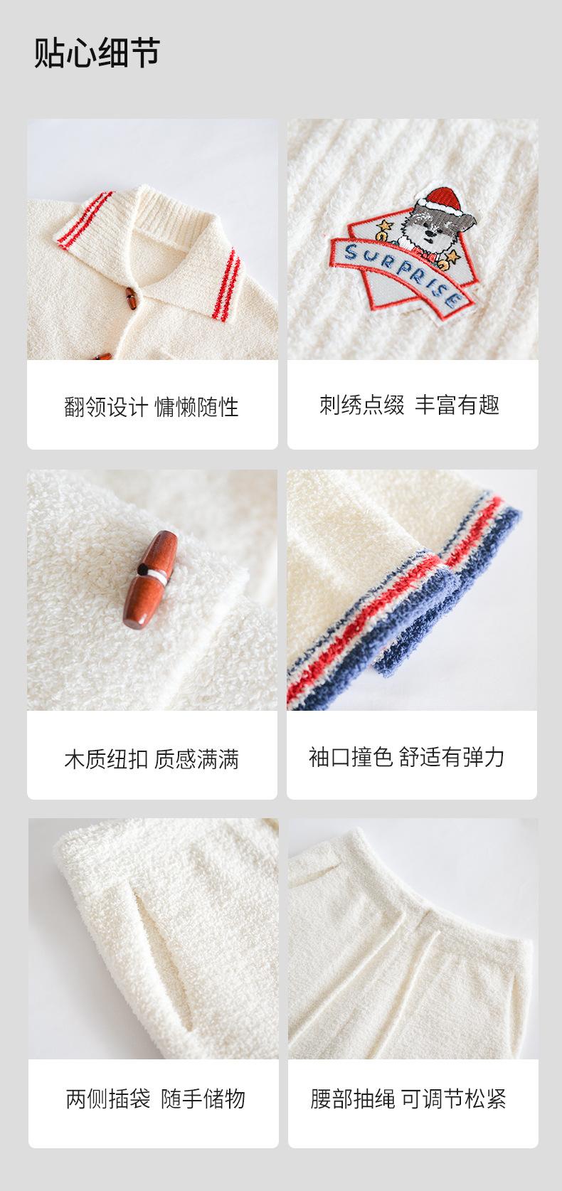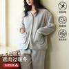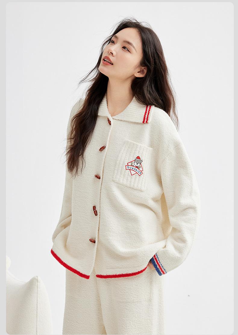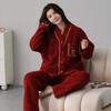Pijama de Otoño e Invierno de Terciopelo para Mujer Cálido Bordado Cuello Mao para Dama Cárdigan para Casa Conjunto de Manga Larga Pijama Ropa para el Hogar