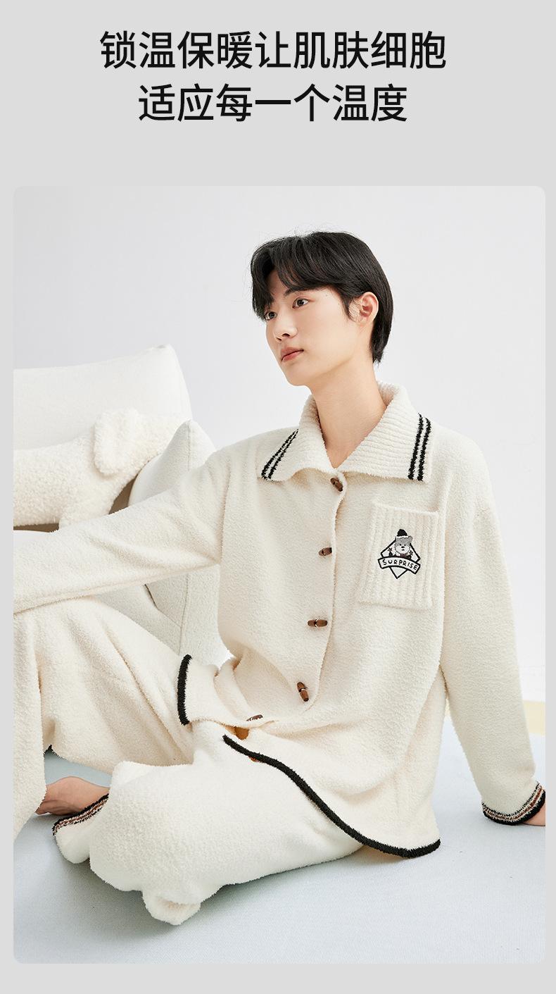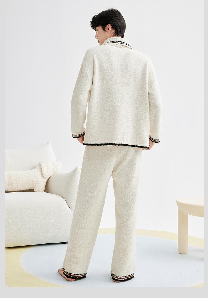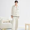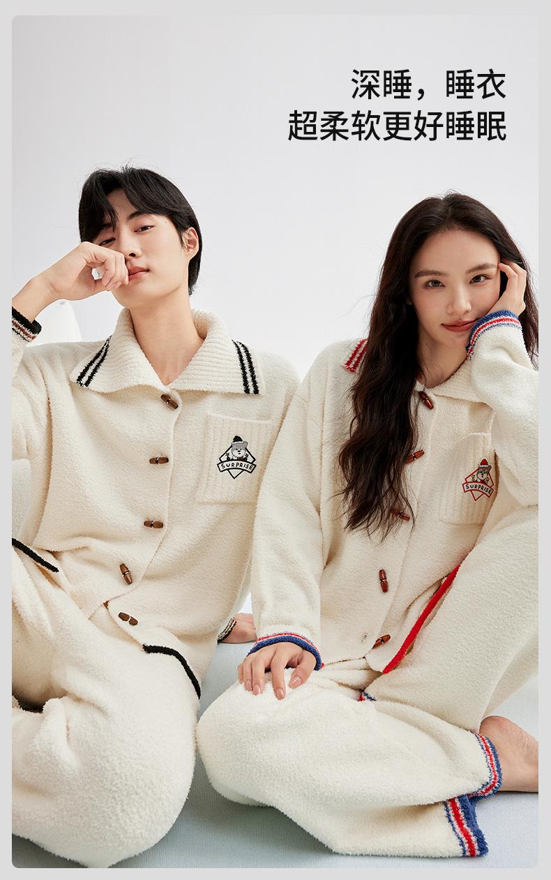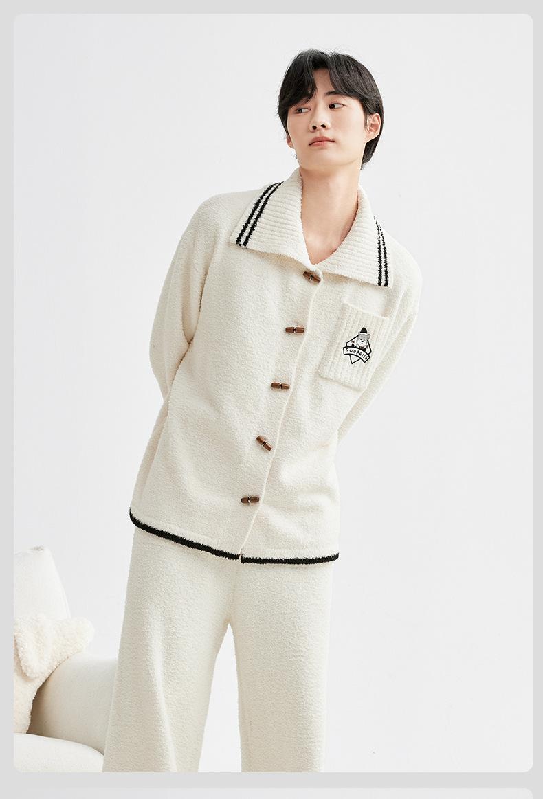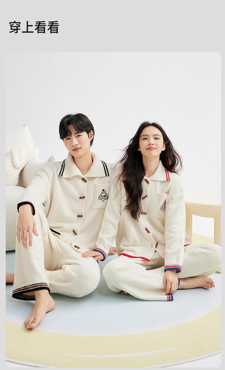 Pijama de Otoño e Invierno de Terciopelo para Mujer Cálido Bordado Cuello Mao para Dama Cárdigan para Casa Conjunto de Manga Larga Pijama Ropa para el Hogar