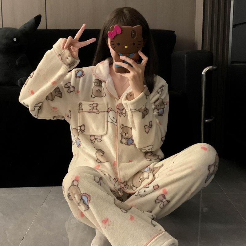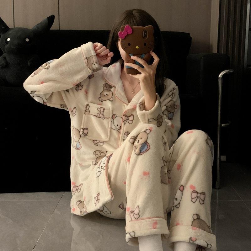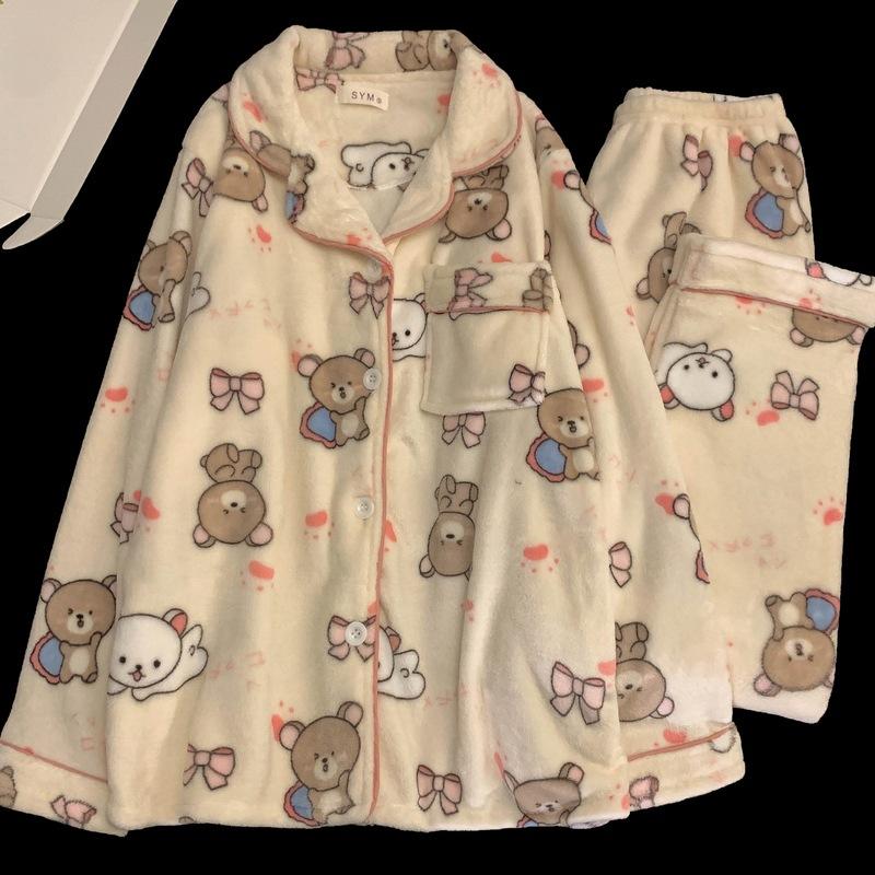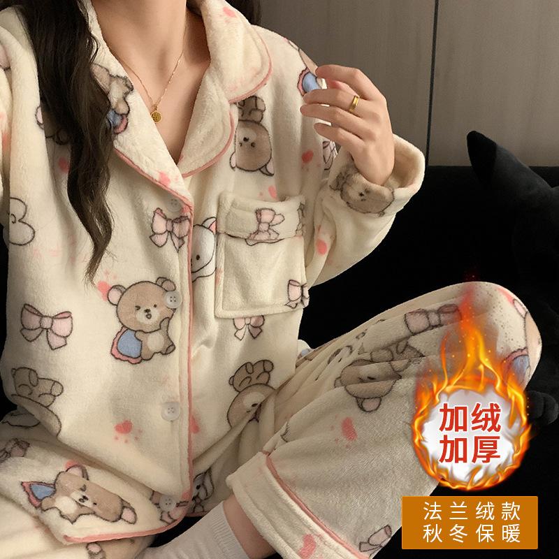 Pijama de talla grande para mujer de invierno, grueso con forro polar, lindo y cálido, traje de ropa para el hogar, Fábrica en stock, Paraíso de ositos de dibujos animados