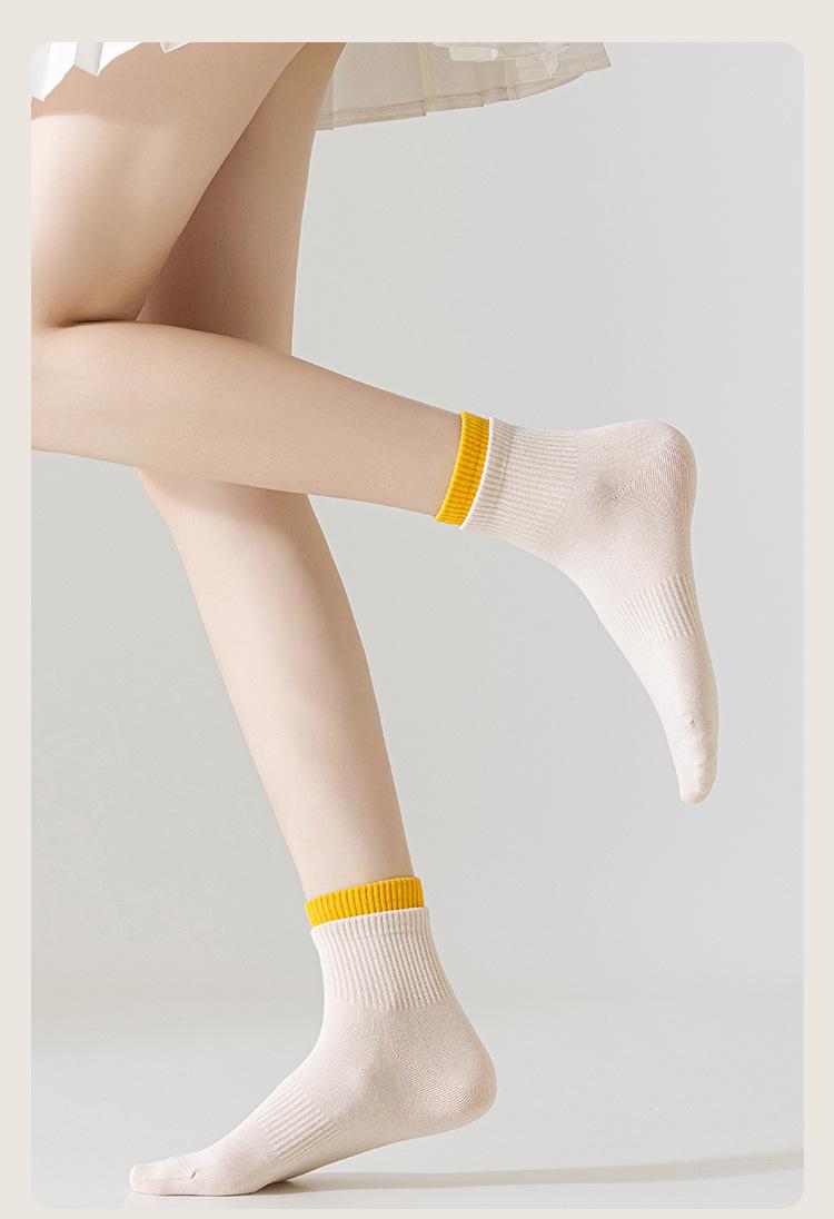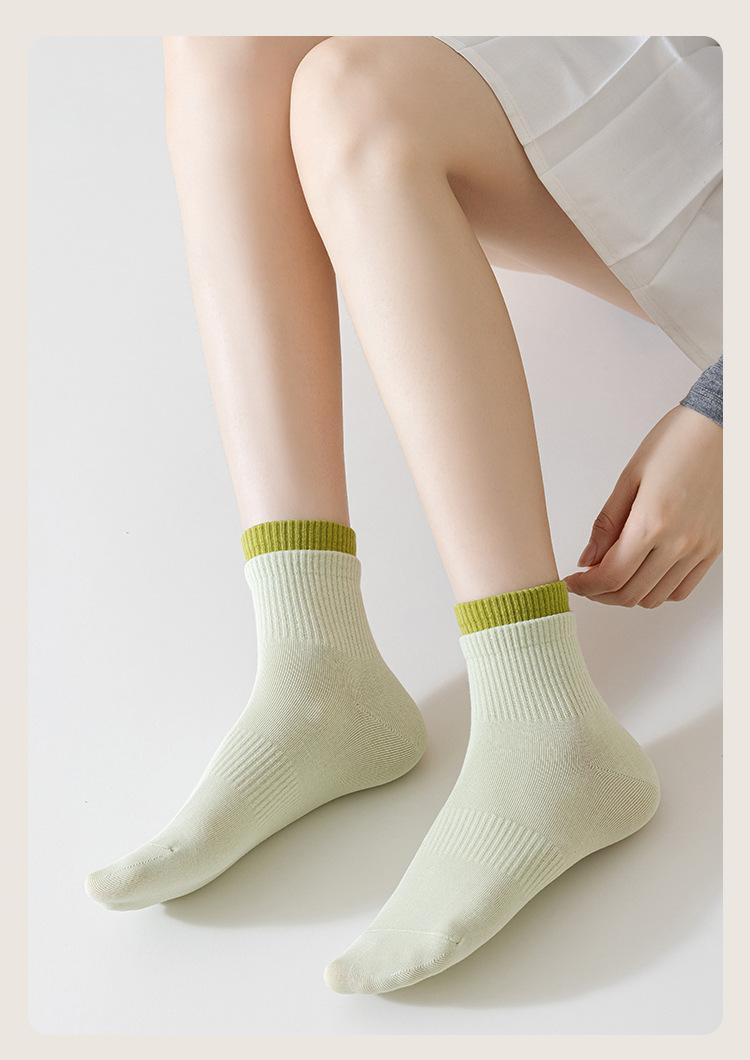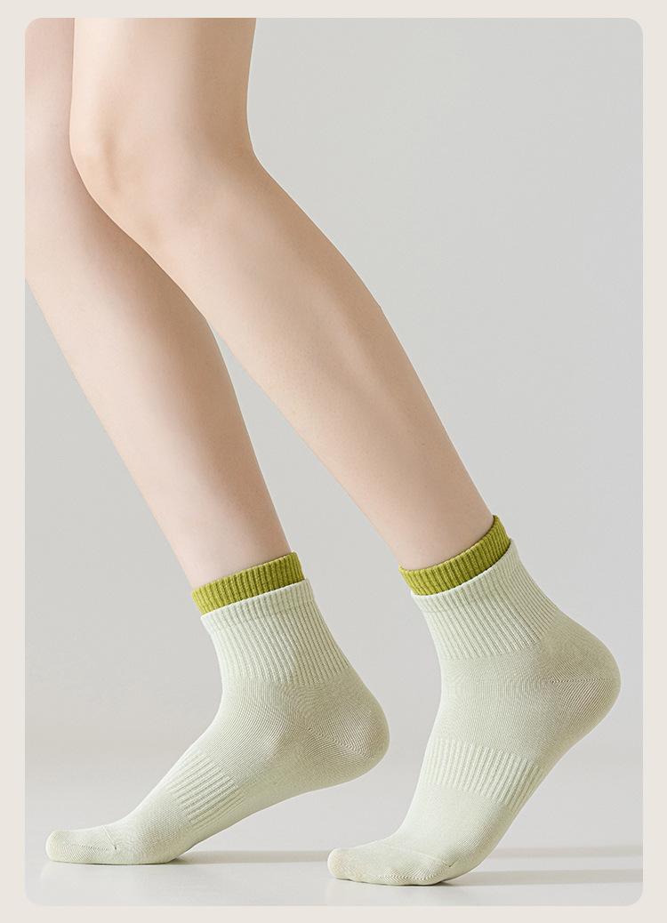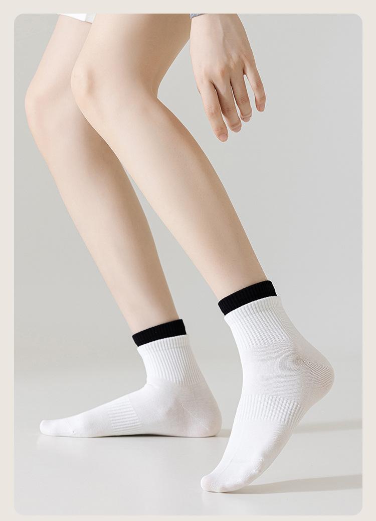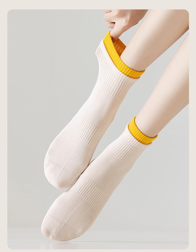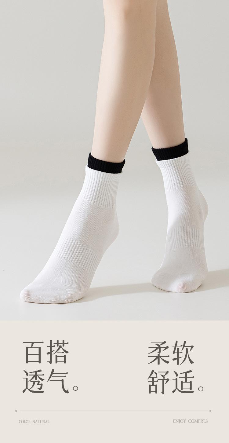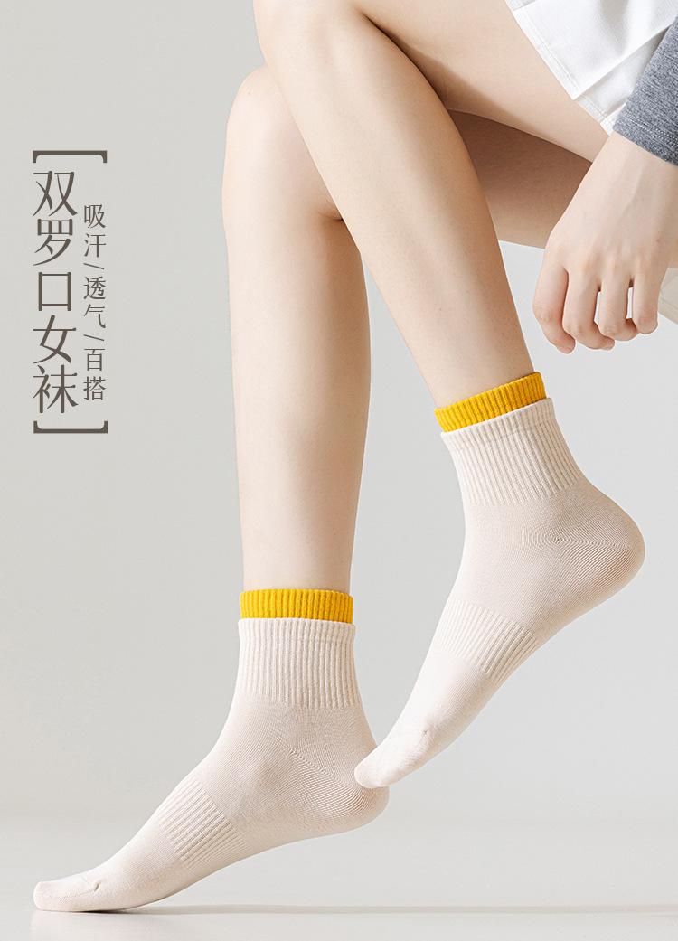 Compra Calcetines de Algodón Puro para Mujer Primavera y Otoño de Canalé Doble hasta Media Pantorrilla Absorbentes de Sudor Transpirables Estilo Deportivo Sencillos Versátiles Cuatro Estaciones Calcetines de Media Pantorrilla para Mujer al por mayor en Joom.pro
