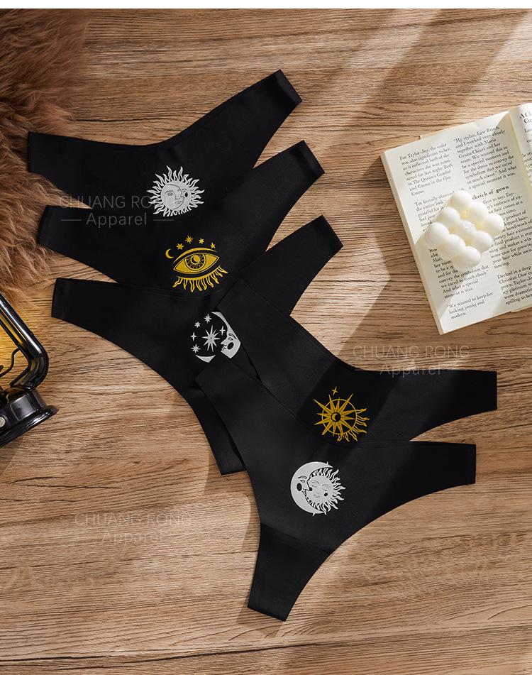 Tanga Sexy Divertida con Estampado de Ojos Europeo y Americano de Cintura Baja para Mujer Talla Extra No se Enrolla T-Back Bragas Deportivas de Yoga