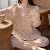 Pijama para Mujer Primavera y Otoño Nuevo Estilo Algodón Nube Manga Larga Pantalón Largo Niña Estilo Princesa Dulce Ropa de Casa Conjunto de Dos Piezas