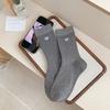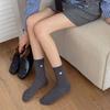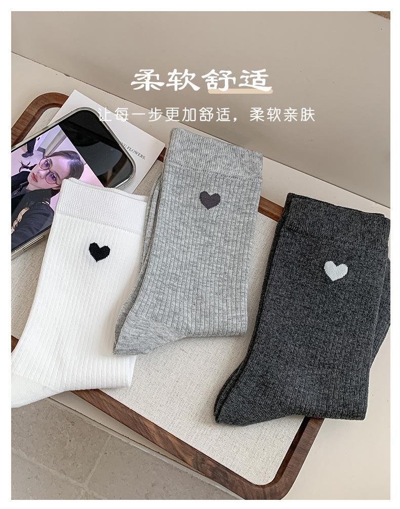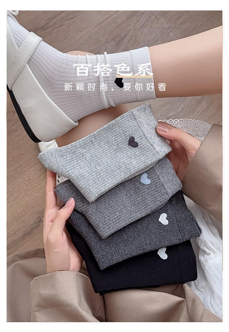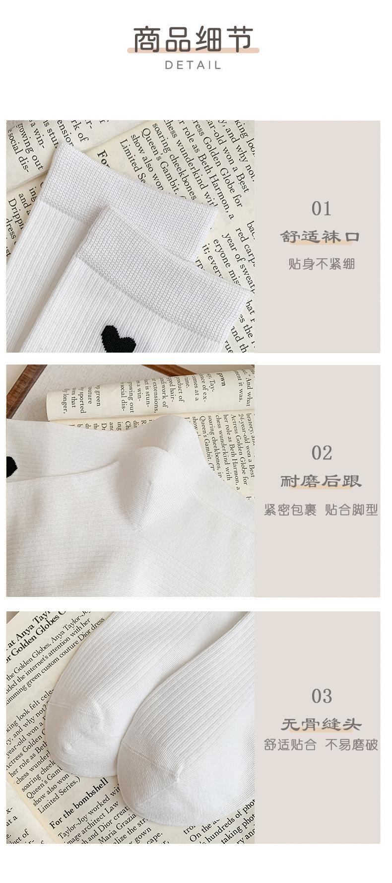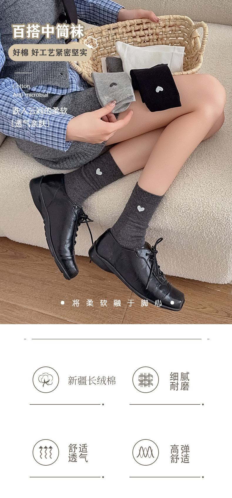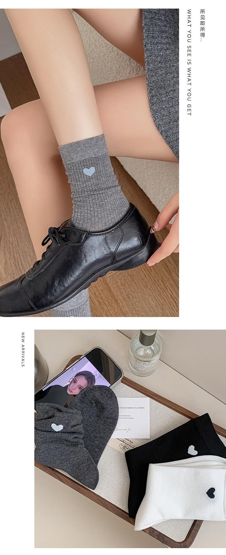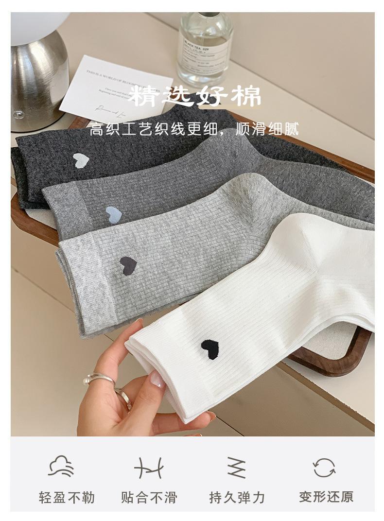 Calcetines de Media Caña para Mujer Corazón Bordado Color Sólido Algodón Peinado Calcetines para Mujer Simples Cómodos Transpirables Sin Ajuste Recogidos