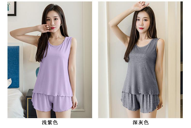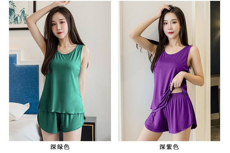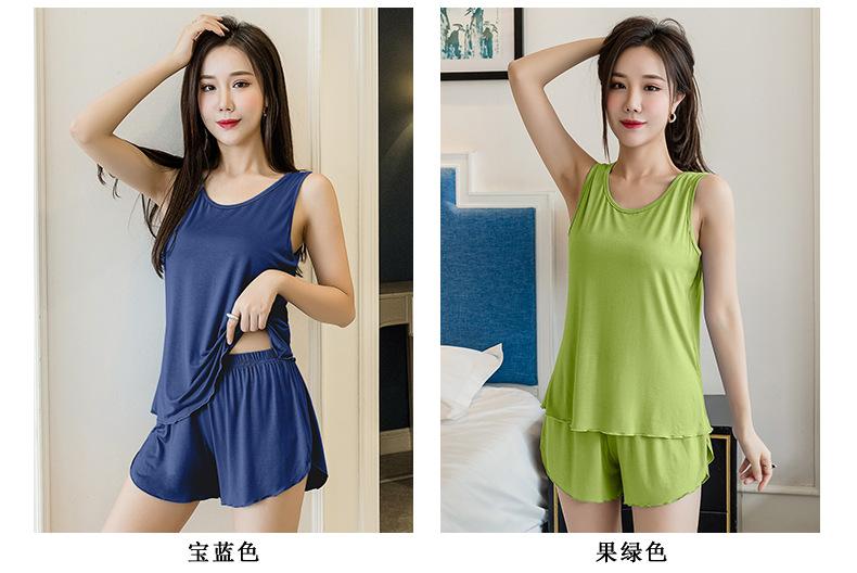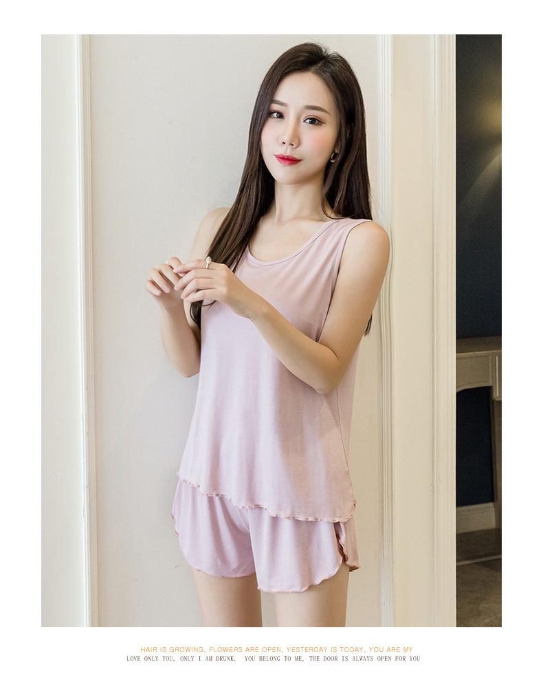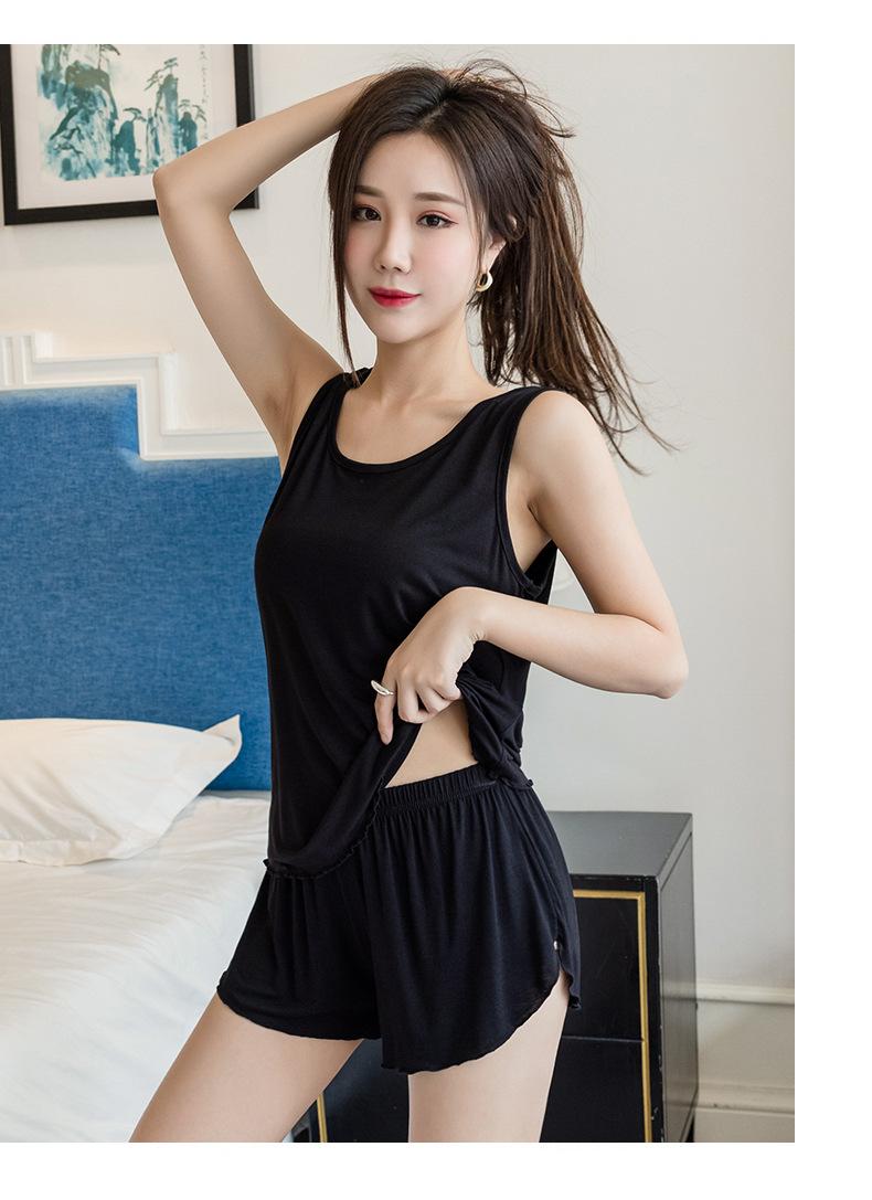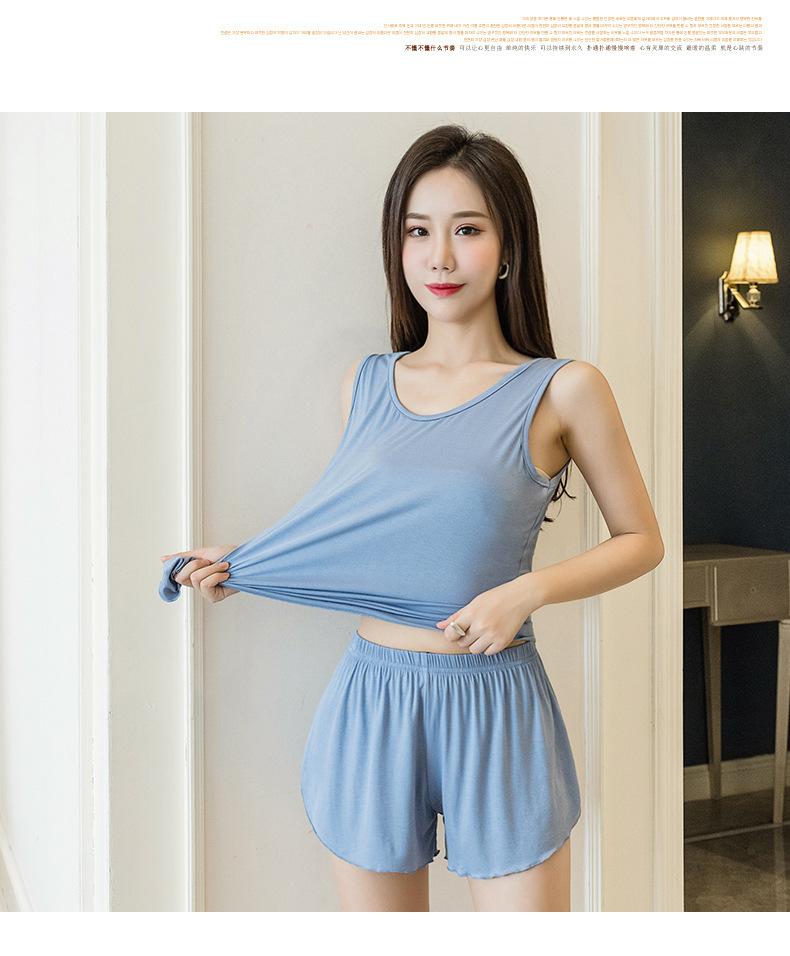 Verano Nuevo Estilo Caliente Talla Grande para Mujer Cómodo Simple Chaleco Ropa de Casa Pijama Conjunto de Dos Piezas Shorts Sueltos