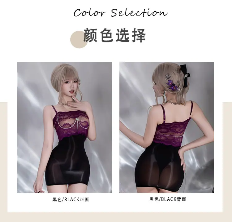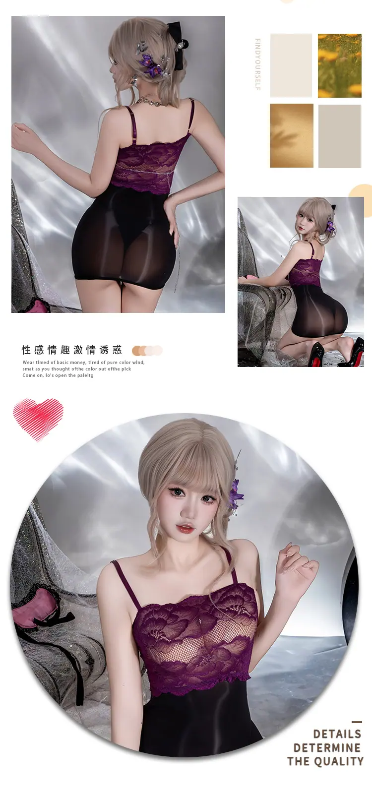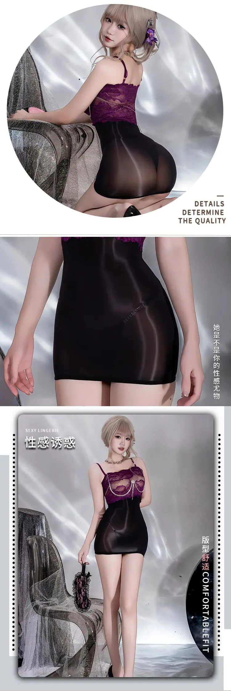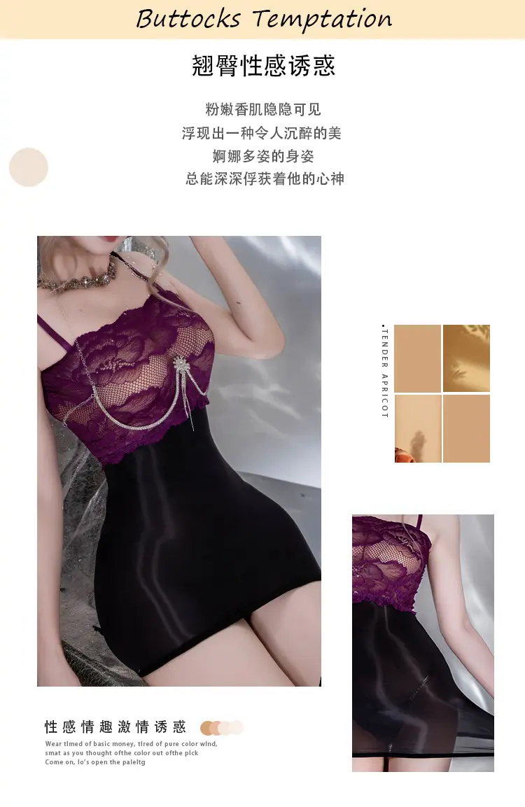Lencería Sexy Vestido Camisola Bandeau Efecto Aceite Talla Extra Encaje Aceite de Caballo Medias Eróticas Ajustado a la Cadera Sexy Transparente Puro Erótico Caliente SM