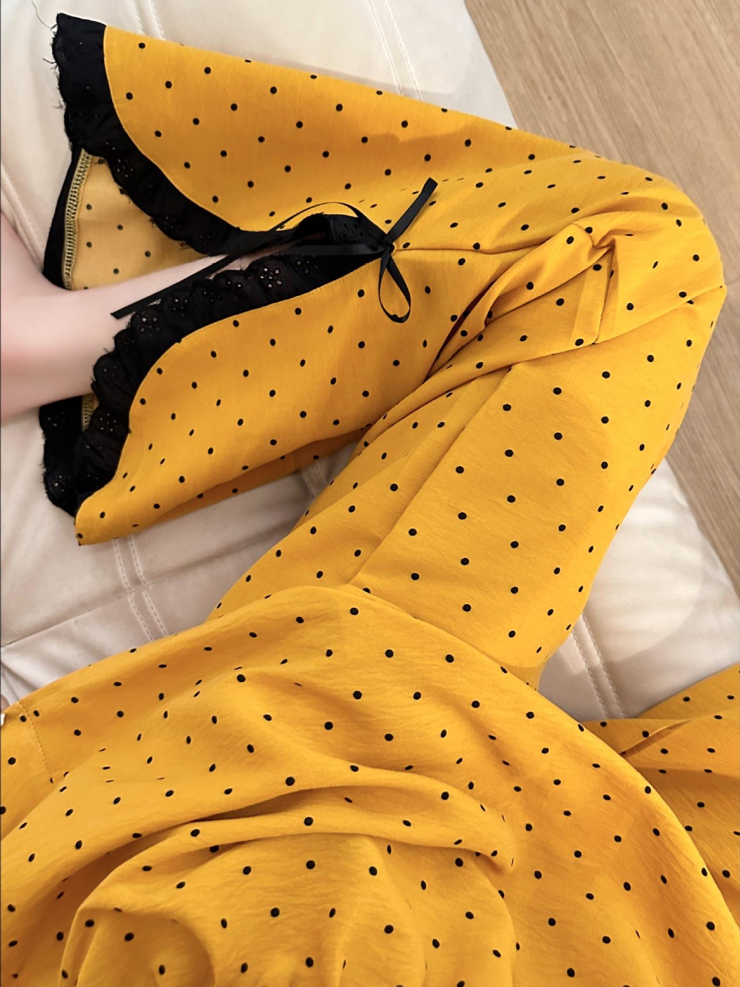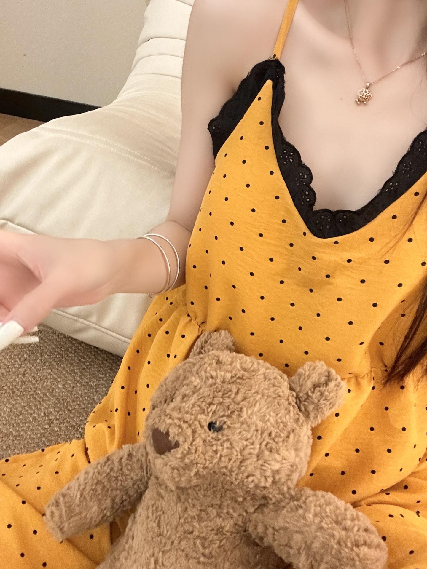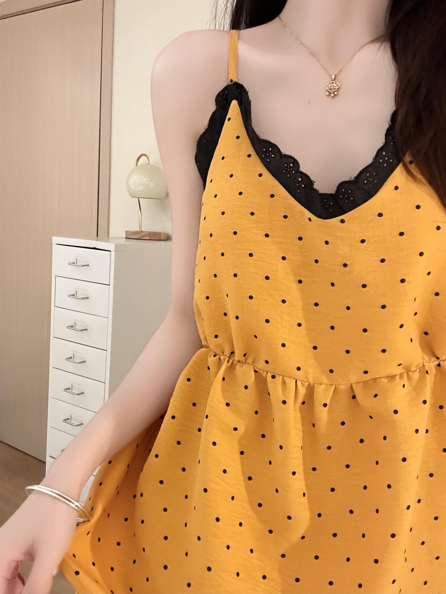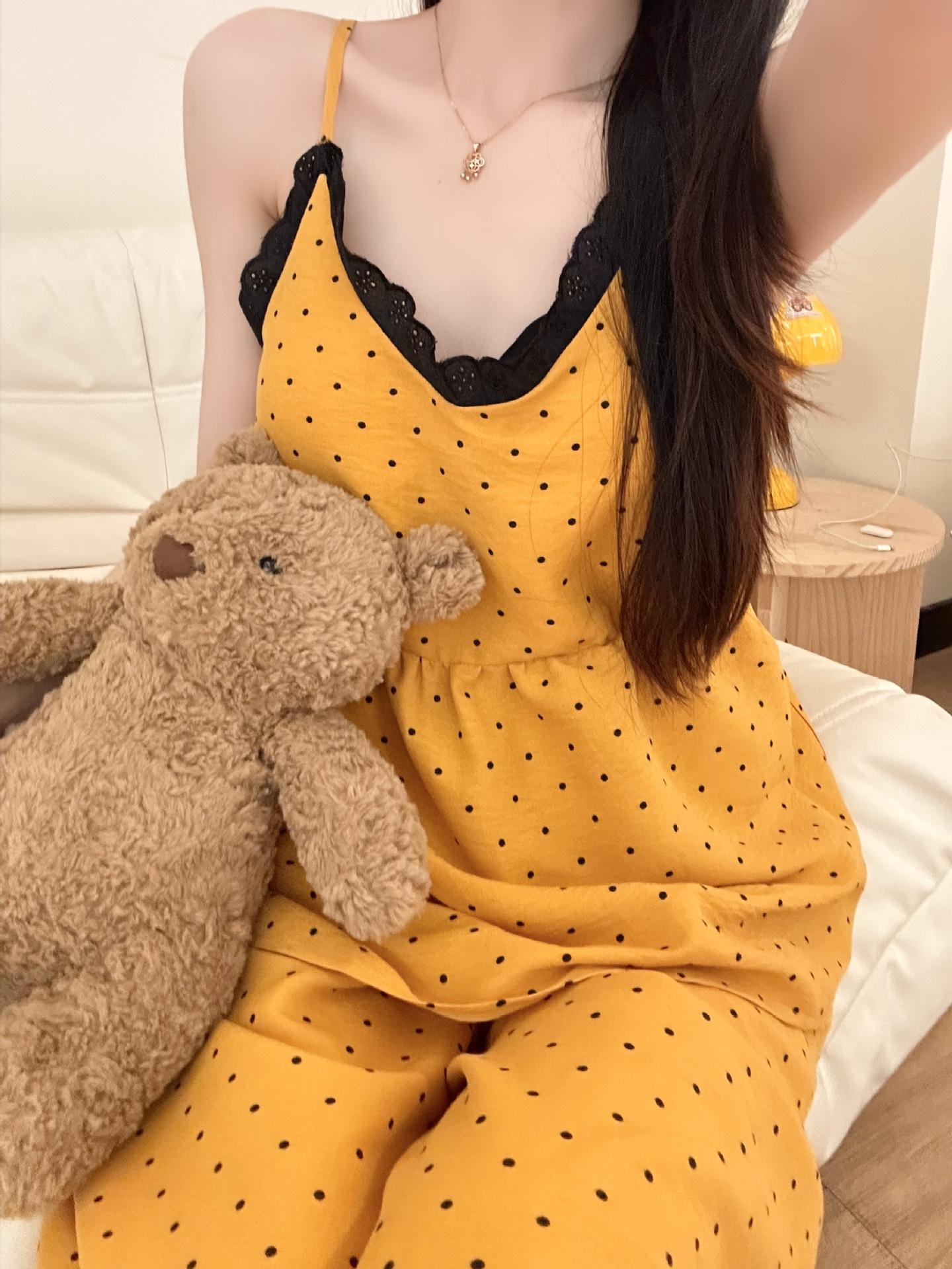 Pijama de tirantes con lunares de onda dulce para niña, nuevo de verano para mujer, encaje de encaje, chaleco puro deseo, pantalones, traje para el hogar
