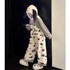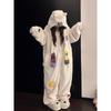 Pijama Onesie de Conejo Lindo de Talla Grande de Vellón Coral para Mujer Invierno Forrado de Vellón Engrosado Ropa para el Hogar Bata con Capucha Otoño Invierno