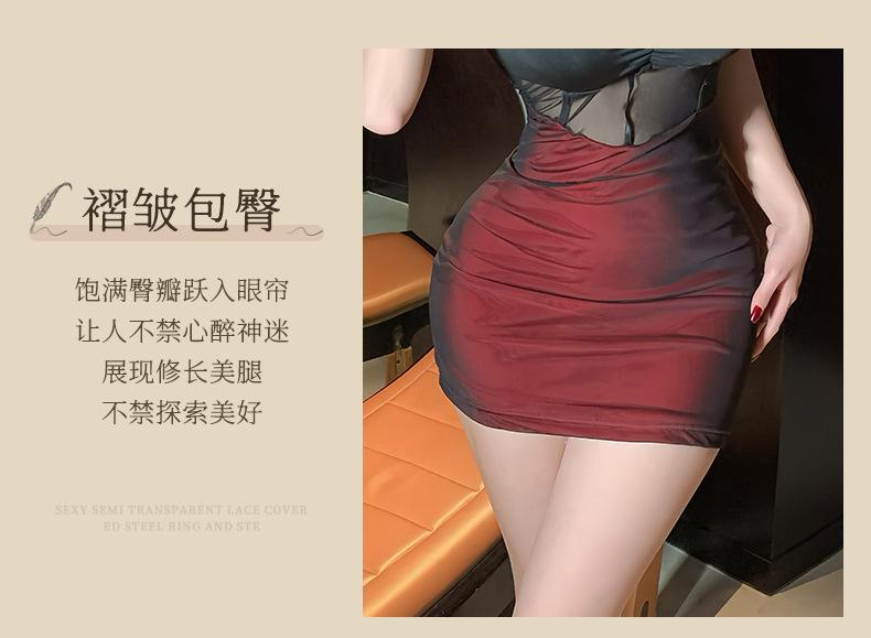 Lencería Sexy Chica Sexy Caliente Falda Adelgazante Ajustada a la Cadera Malla de Doble Capa Apasionada No Quitar Hueco Traje Transparente Falda