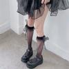 Jk calcetines altos hasta el muslo de encaje japonés con lazo, calcetines blancos versátiles de encaje para chica dulce lolita