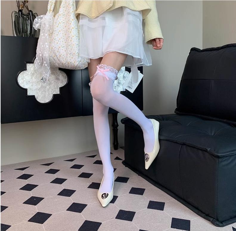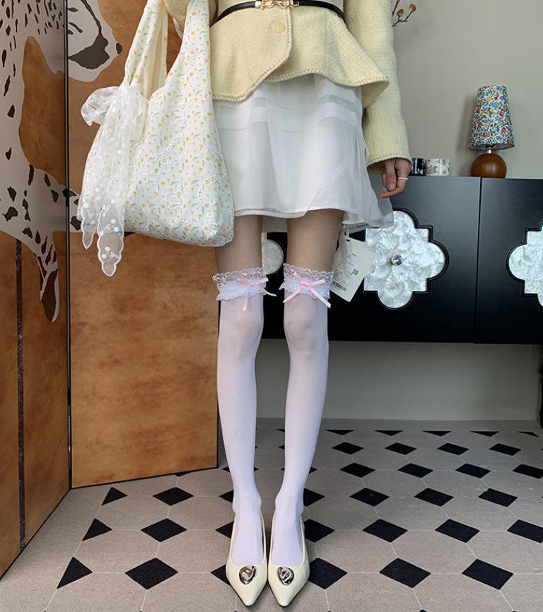 Over-the-knee lace white bow, Over-the-knee lace pink bow, Over-the-knee lace blue bow