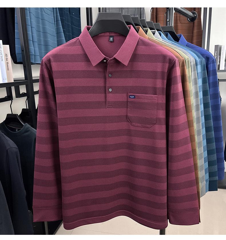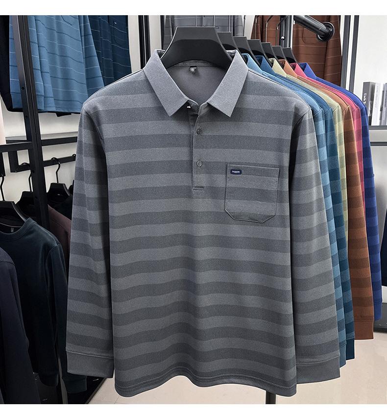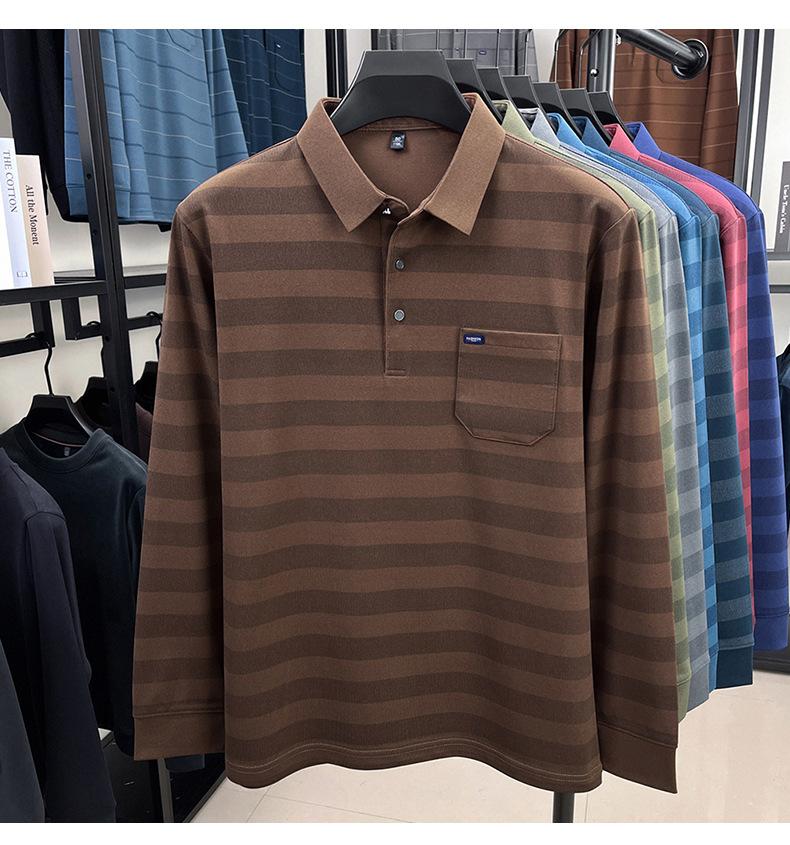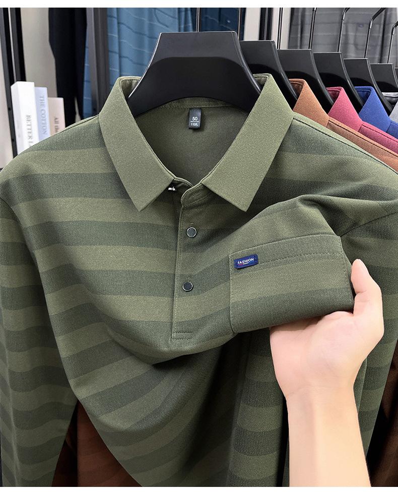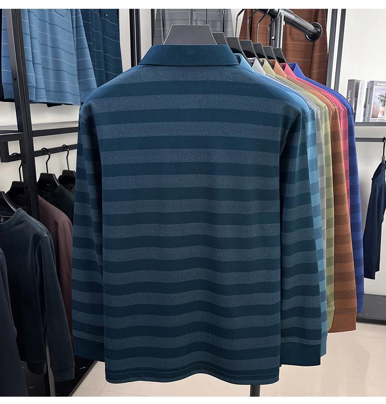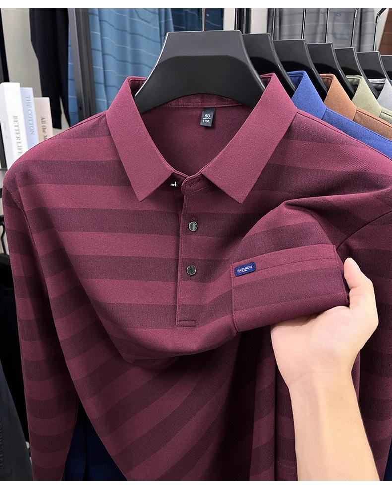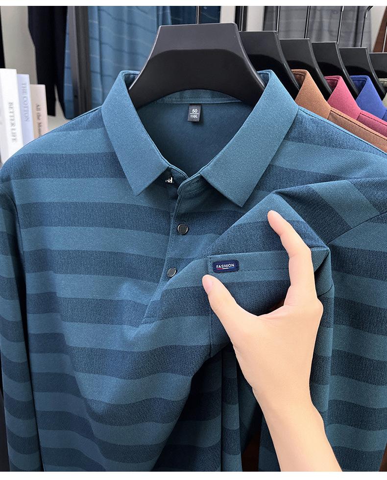 Compra Camiseta de Manga Larga para Hombre Versátil Camisa Polo Rayada Diaria Business Casual Solapa Otoño Manga Larga Transpirable Camiseta Hombre al por mayor en Joom.pro