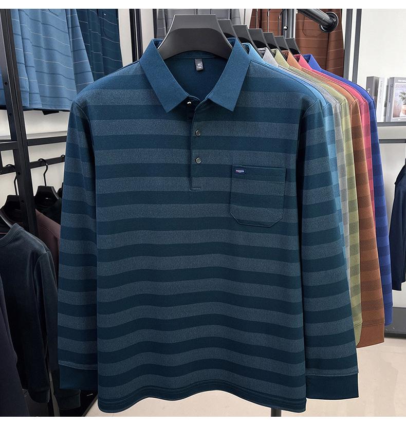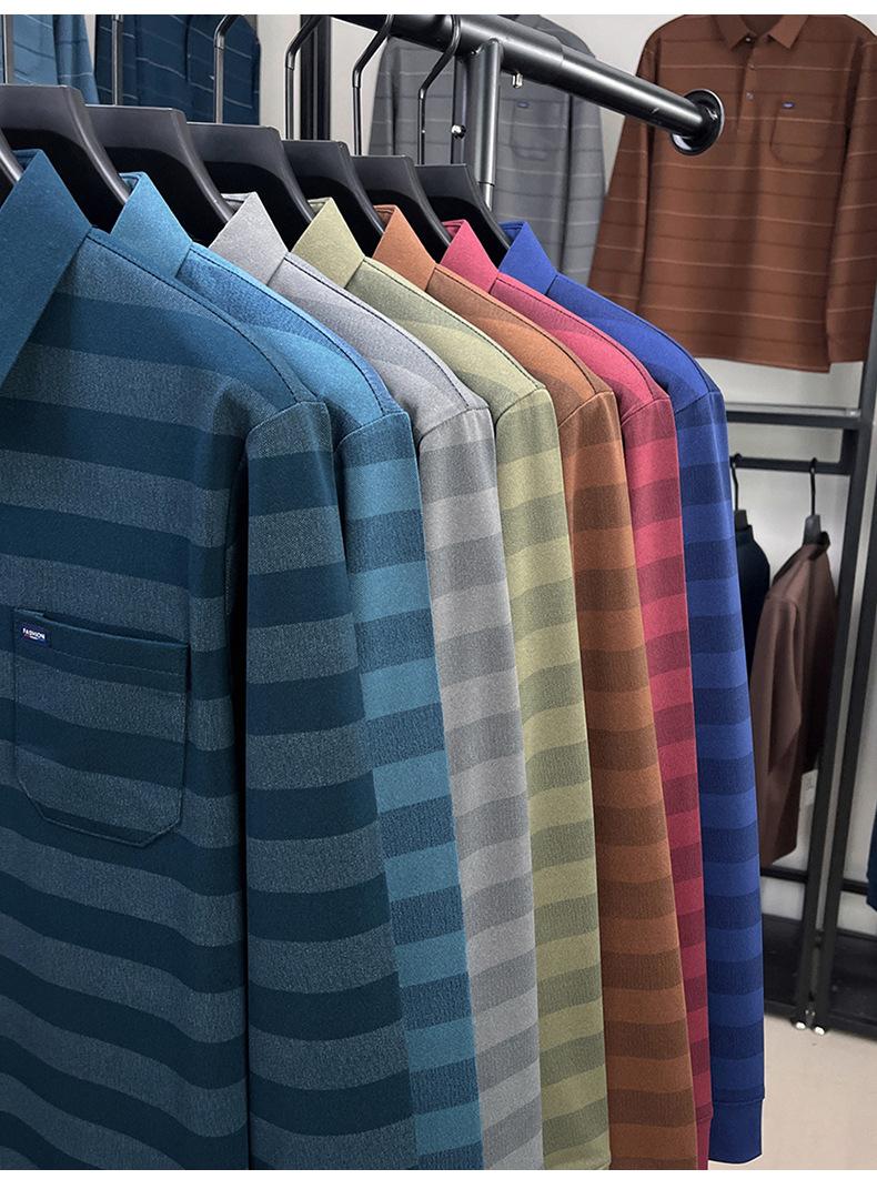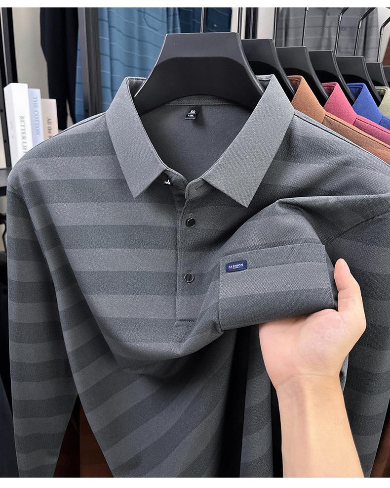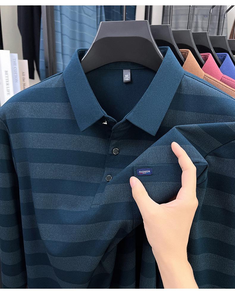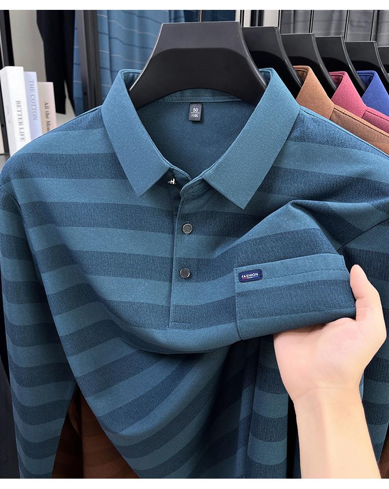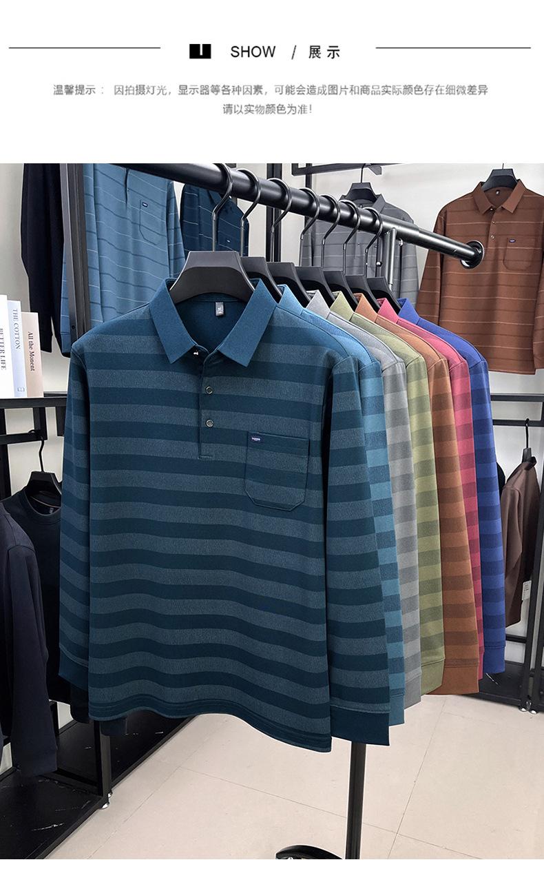 Compra Camiseta de Manga Larga para Hombre Versátil Camisa Polo Rayada Diaria Business Casual Solapa Otoño Manga Larga Transpirable Camiseta Hombre al por mayor en Joom.pro