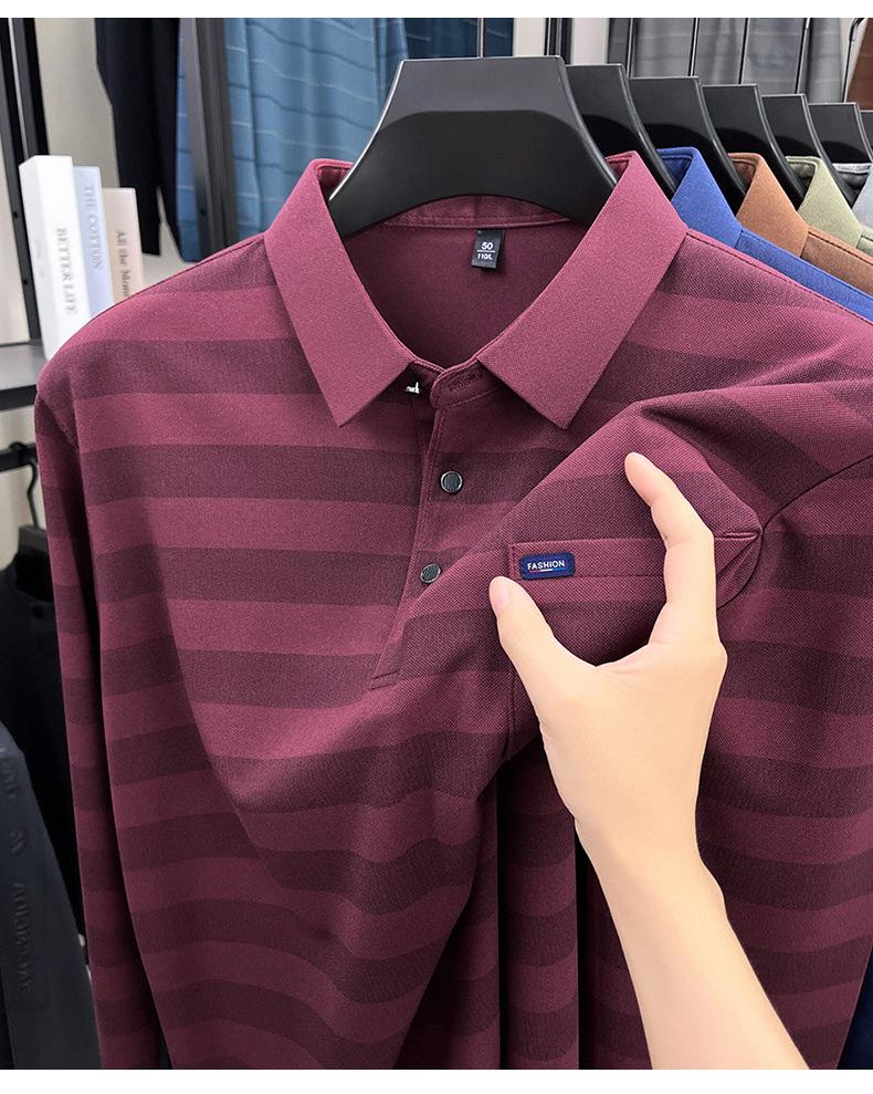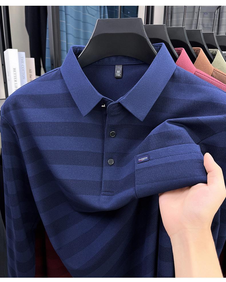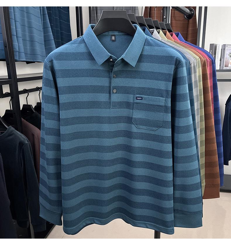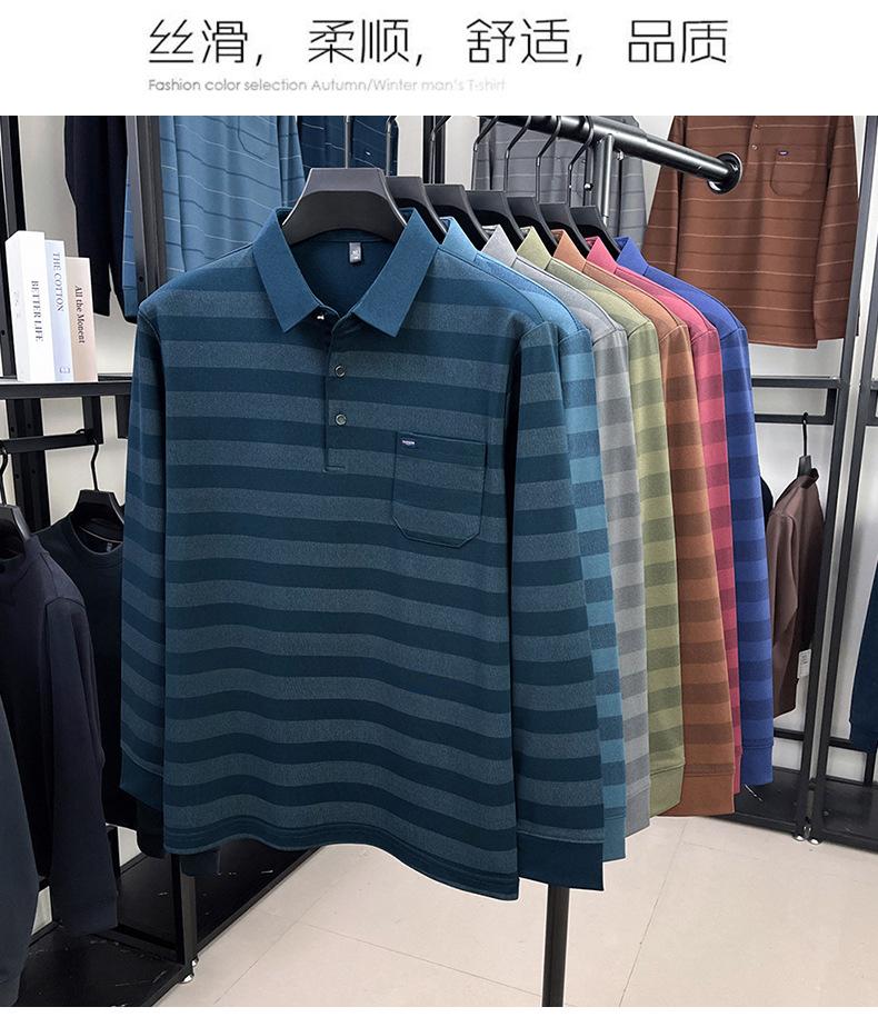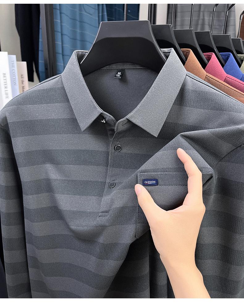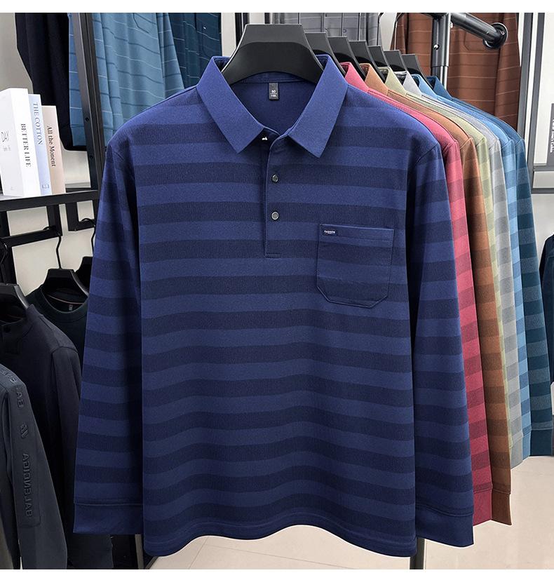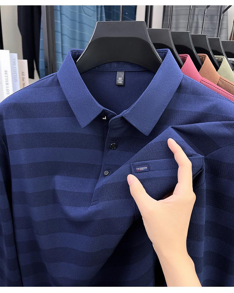 Compra Camiseta de Manga Larga para Hombre Versátil Camisa Polo Rayada Diaria Business Casual Solapa Otoño Manga Larga Transpirable Camiseta Hombre al por mayor en Joom.pro