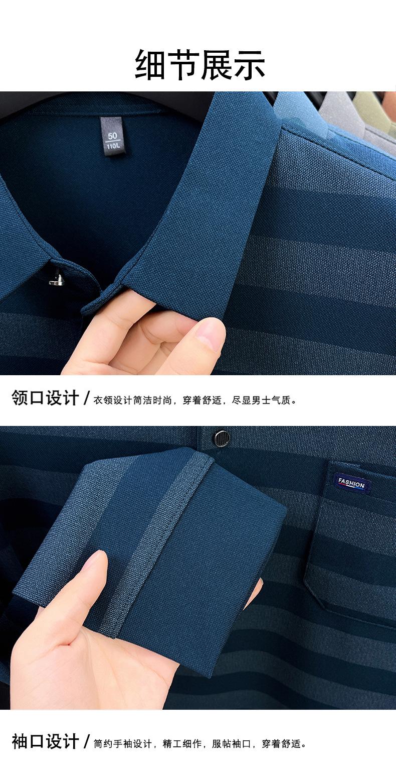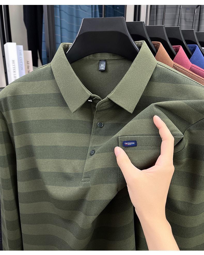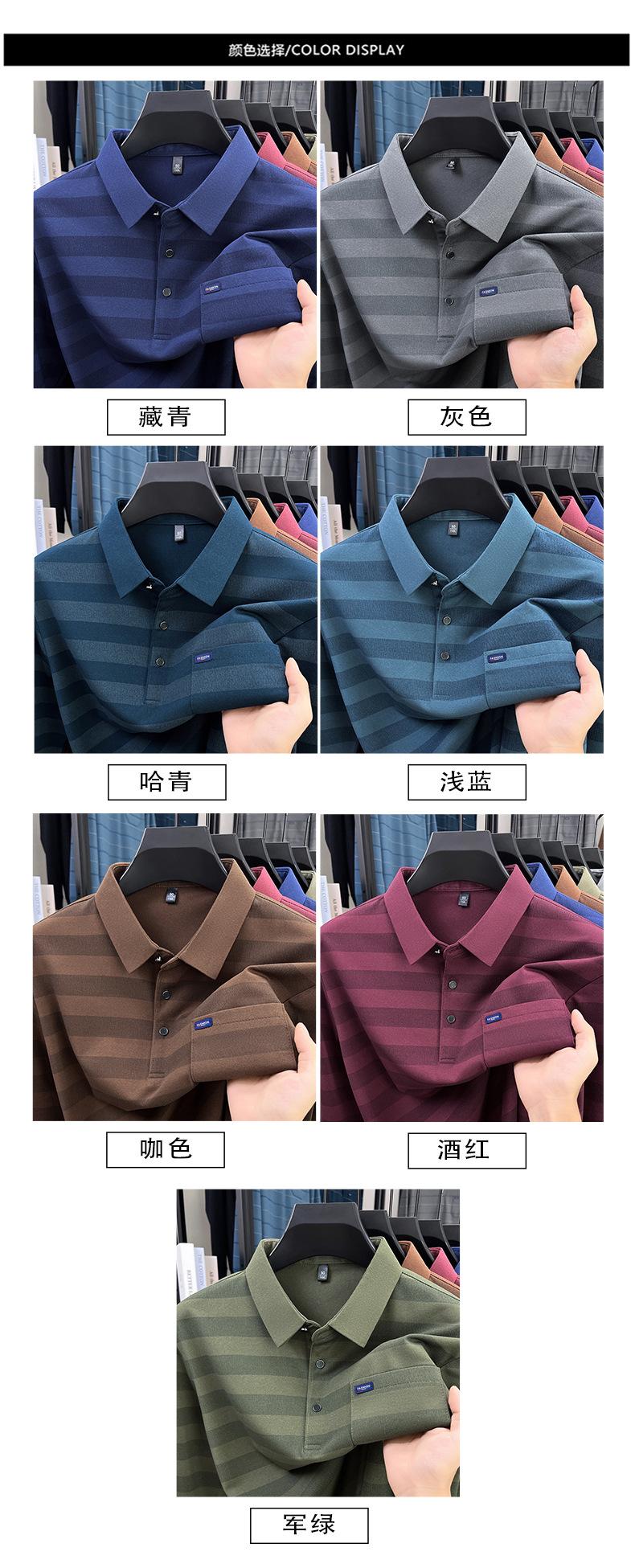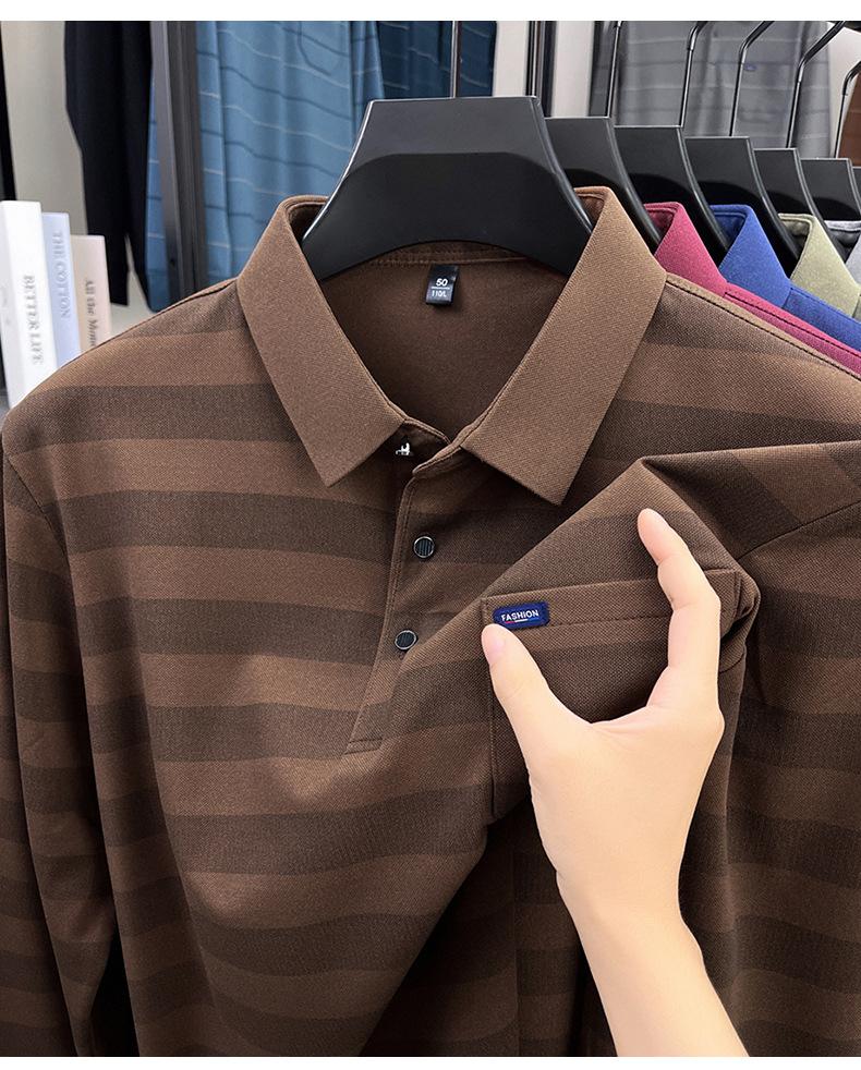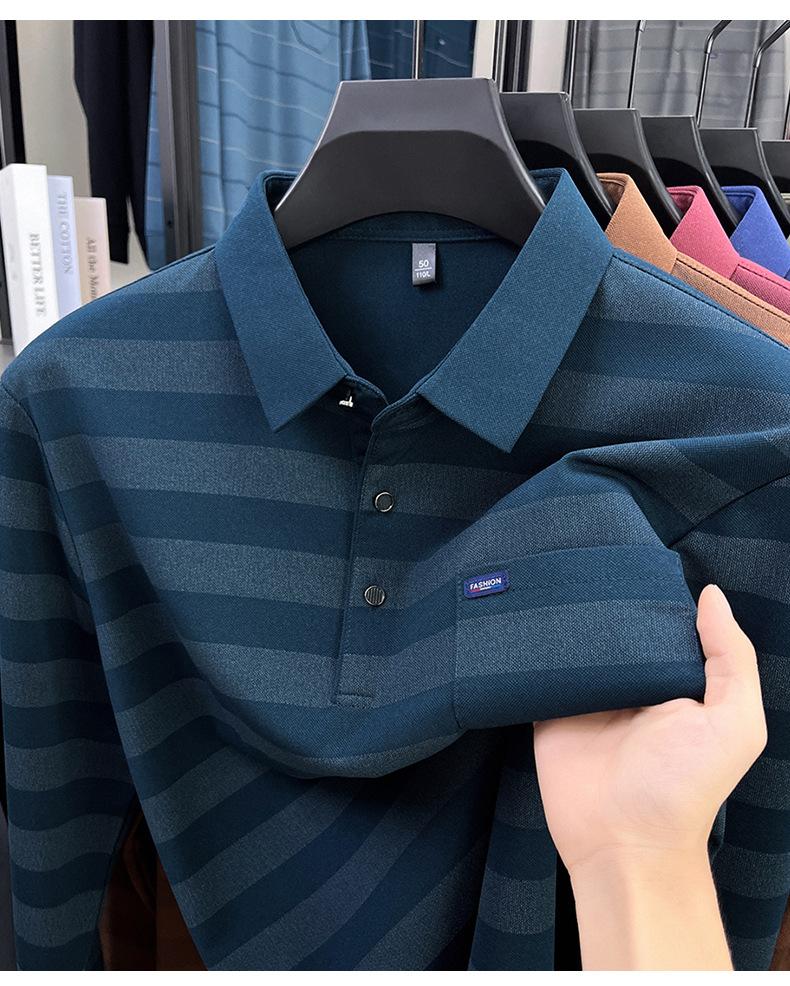 Compra Camiseta de Manga Larga para Hombre Versátil Camisa Polo Rayada Diaria Business Casual Solapa Otoño Manga Larga Transpirable Camiseta Hombre al por mayor en Joom.pro
