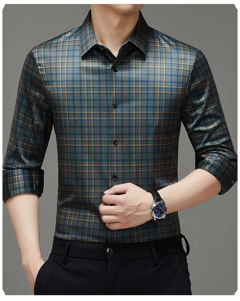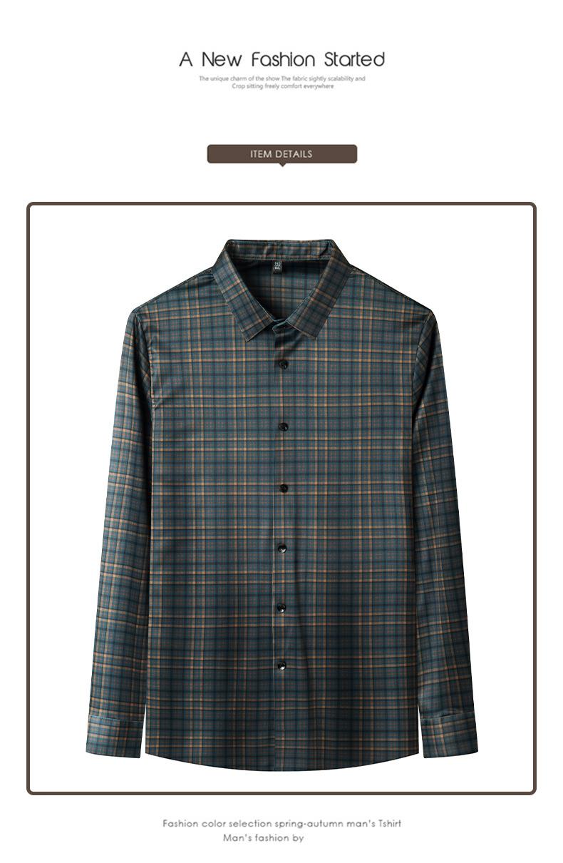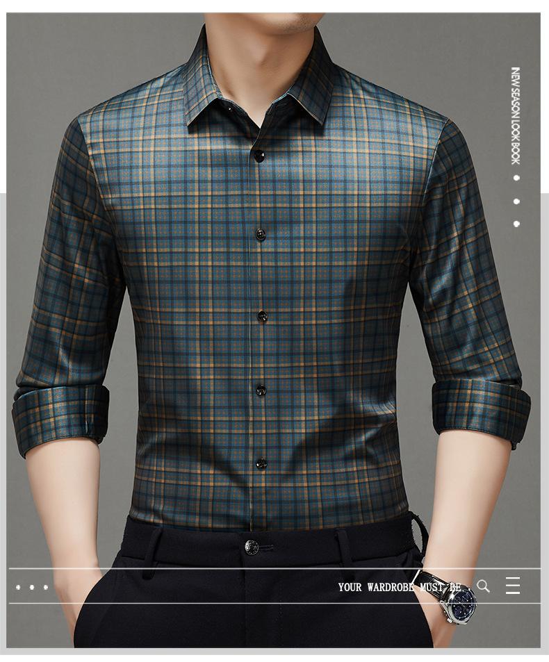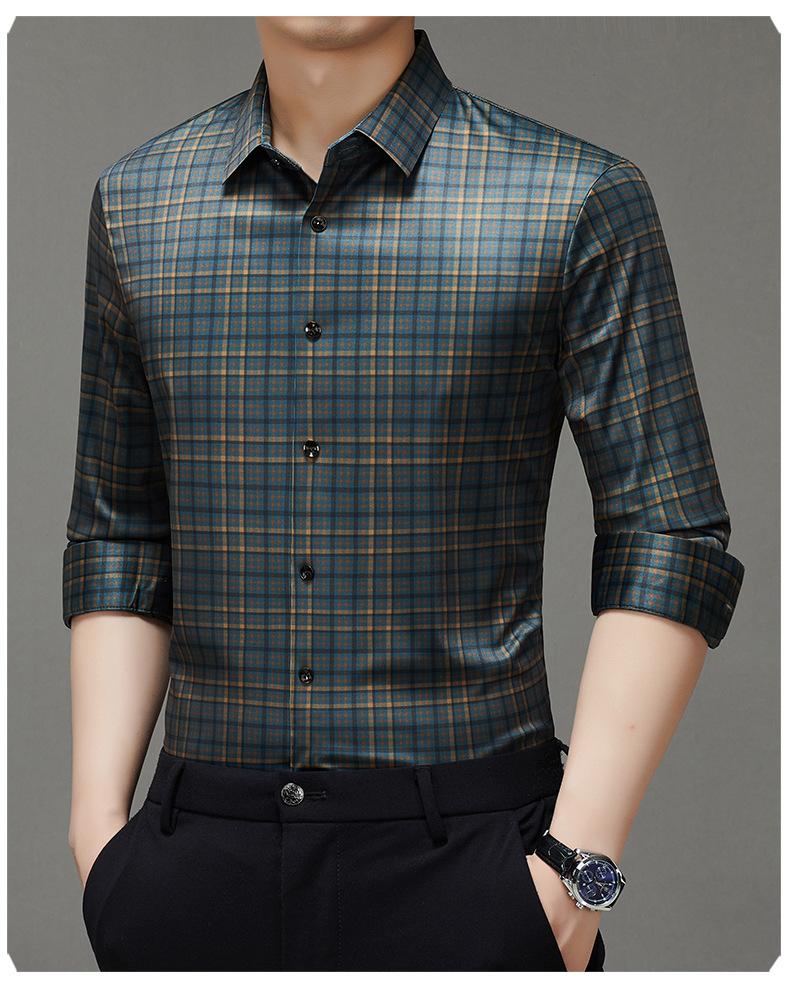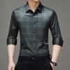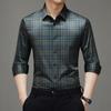 Camisa de Cuadros Nueva de Otoño 2025 para Hombre Business Casual Cuello Vuelto No Necesita Plancha Camisa para Hombre de Mediana Edad