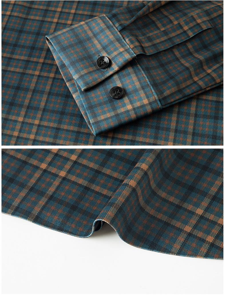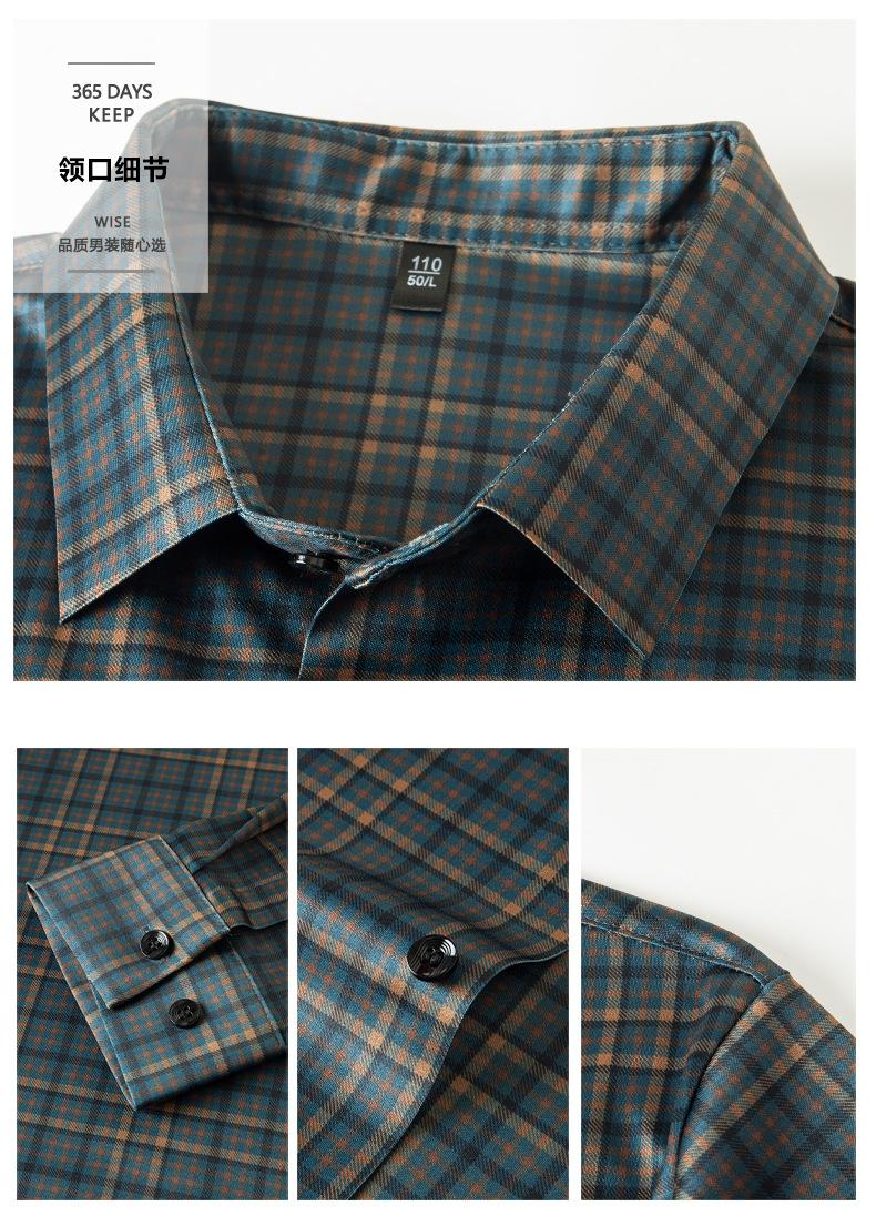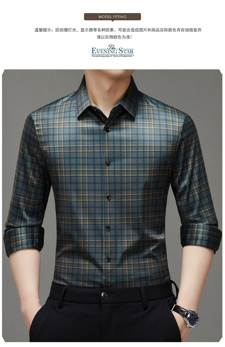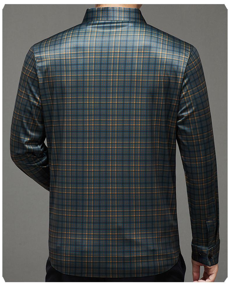 Camisa de Cuadros Nueva de Otoño 2025 para Hombre Business Casual Cuello Vuelto No Necesita Plancha Camisa para Hombre de Mediana Edad