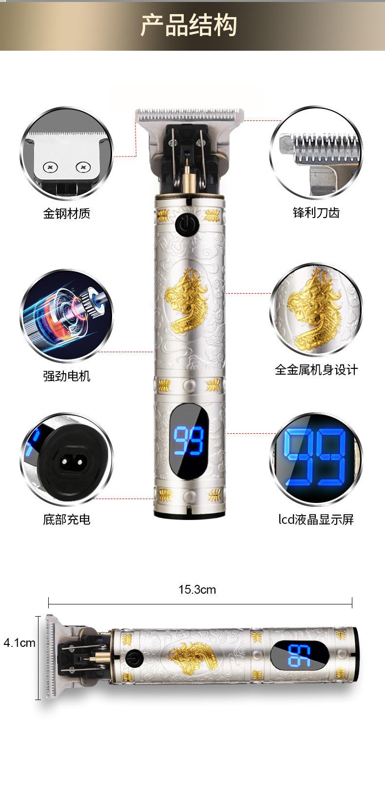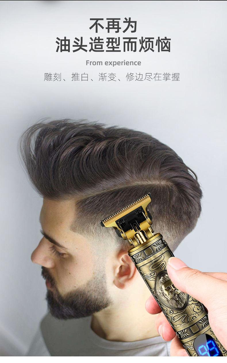 Cortadora de Pelo Eléctrica T9 Transfronteriza Recortadora Cabeza Calva Cabeza de Aceite Grabado Retro Corte de Pelo Sin Costuras Afeitadora Recargable