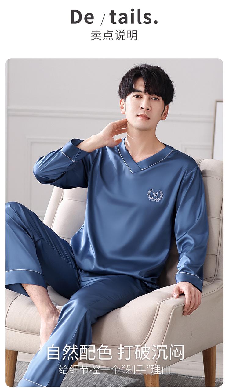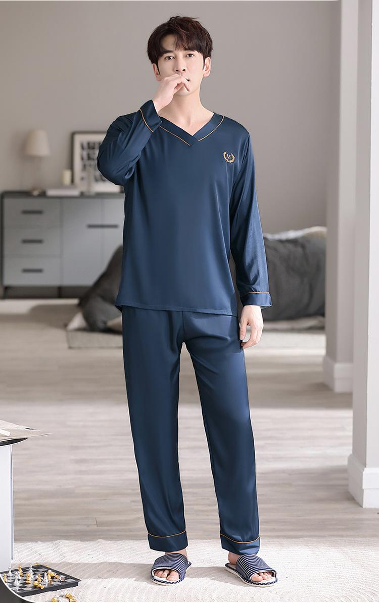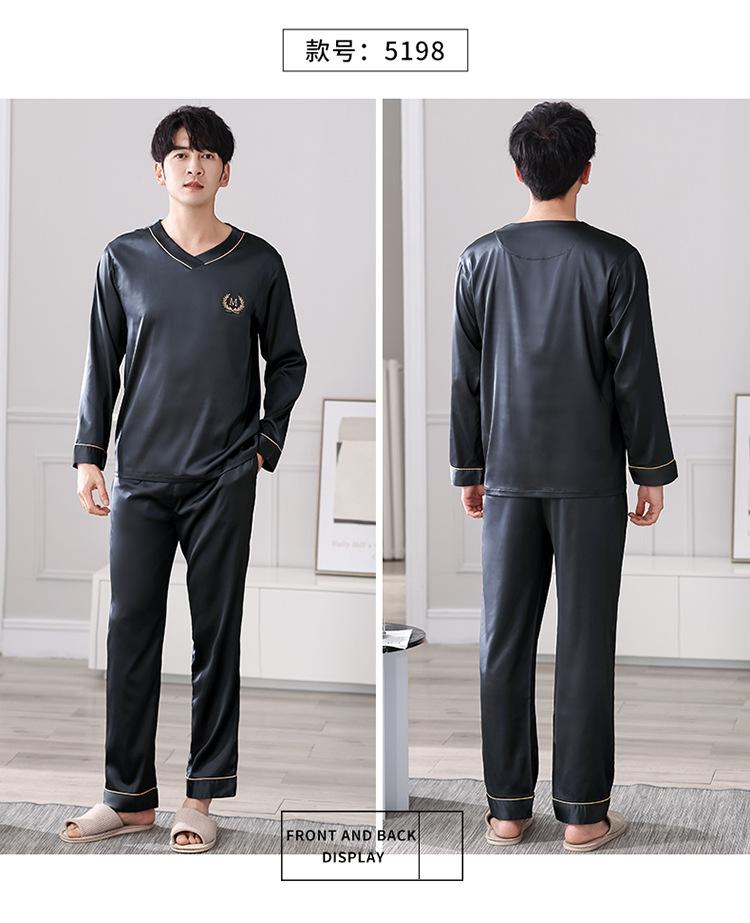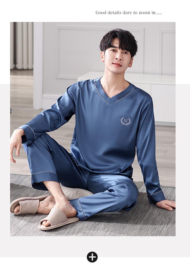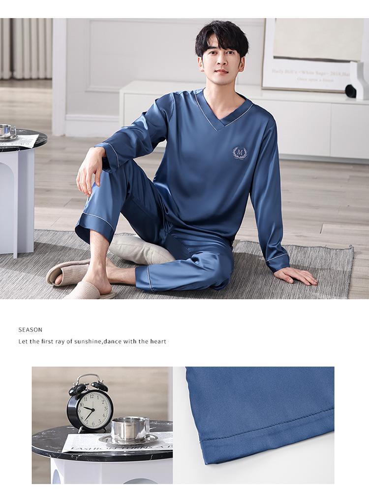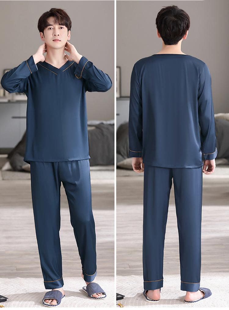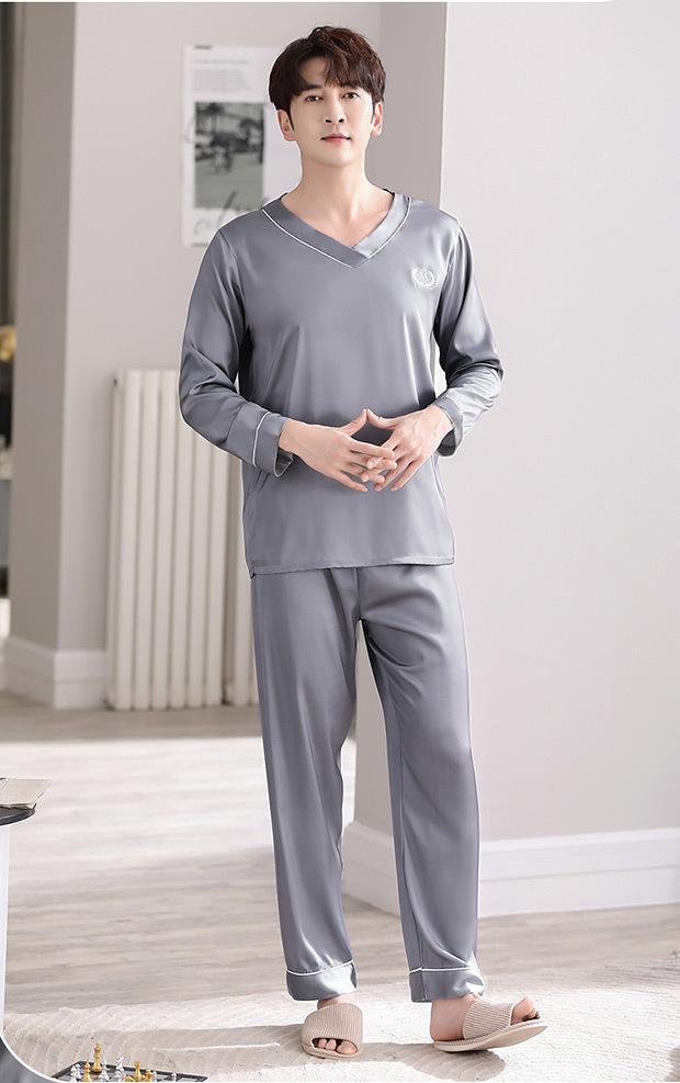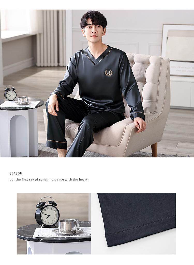 Pijama de Seda de Hielo de Verano de Alta Gama para Hombre de Manga Larga Fino Sencillo Talla Grande Suelto Simulación Seda Traje Ropa de Casa