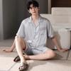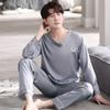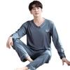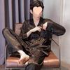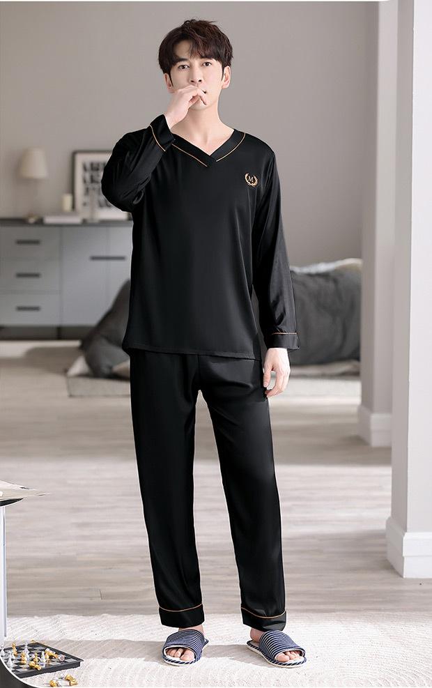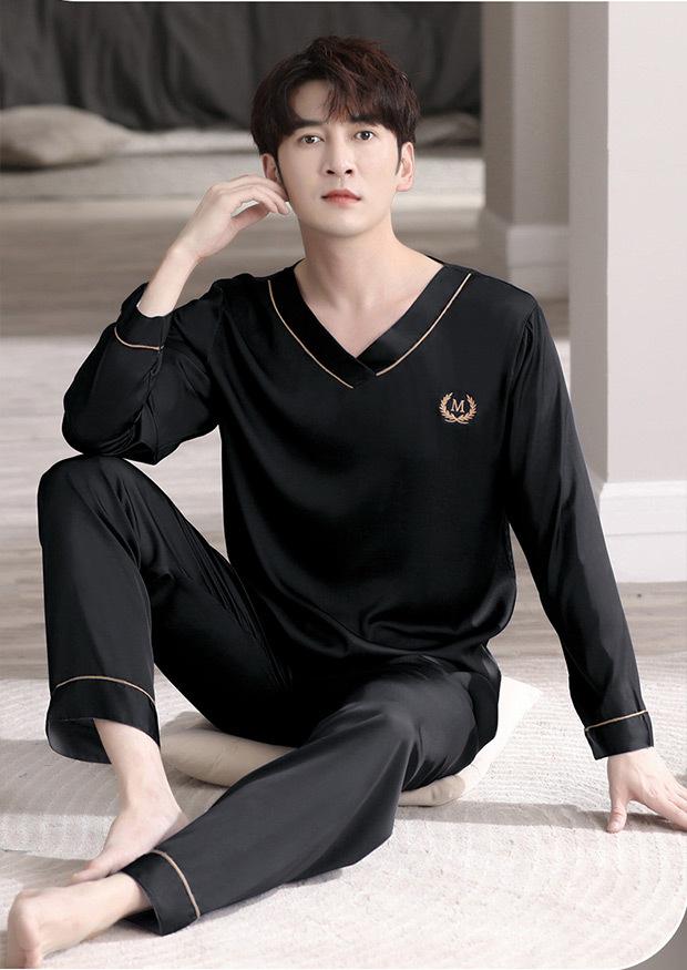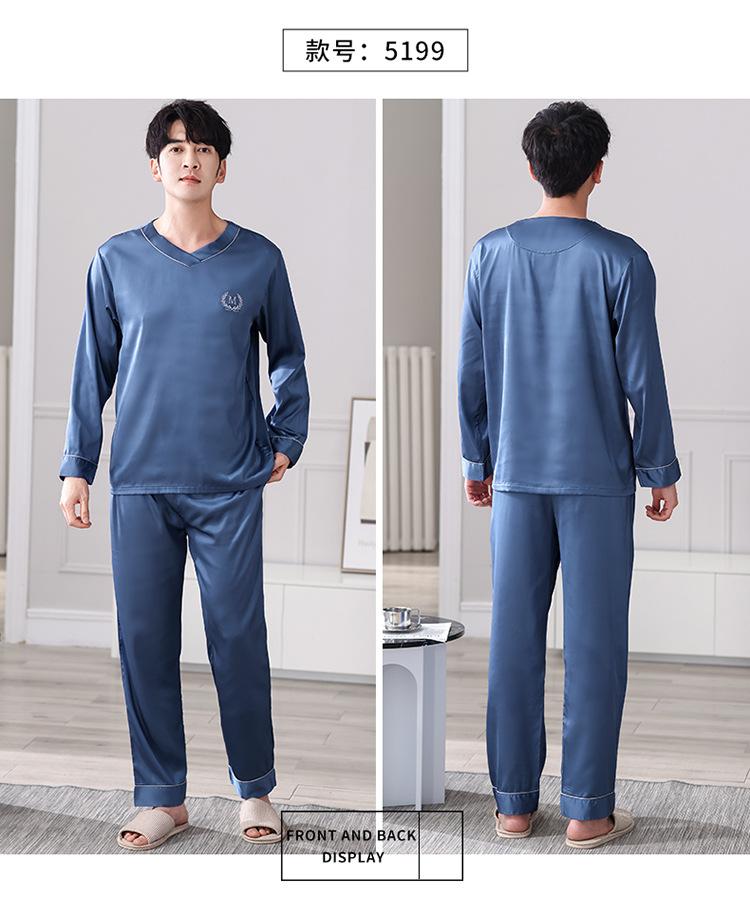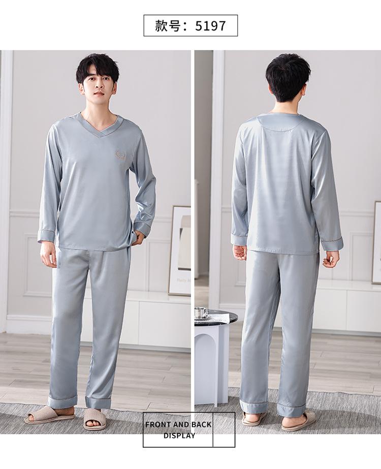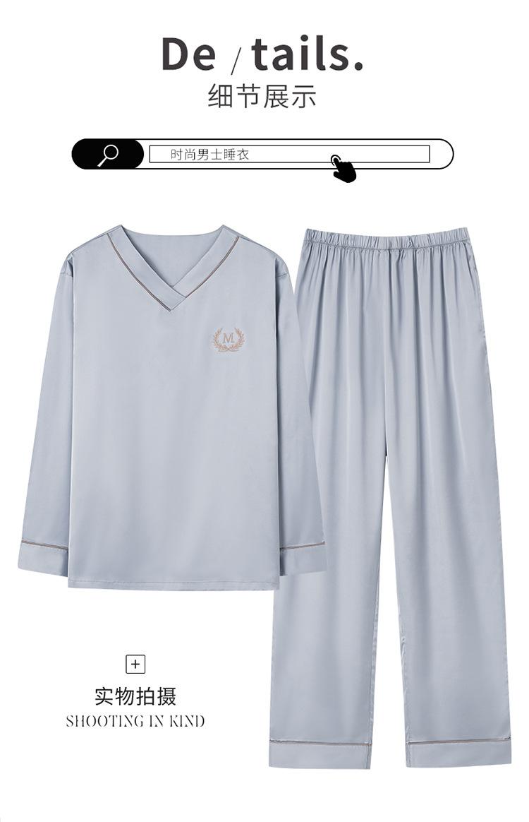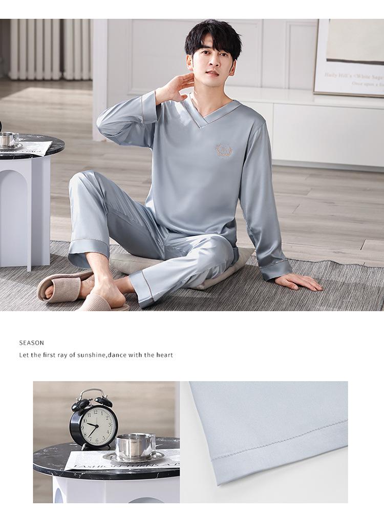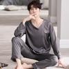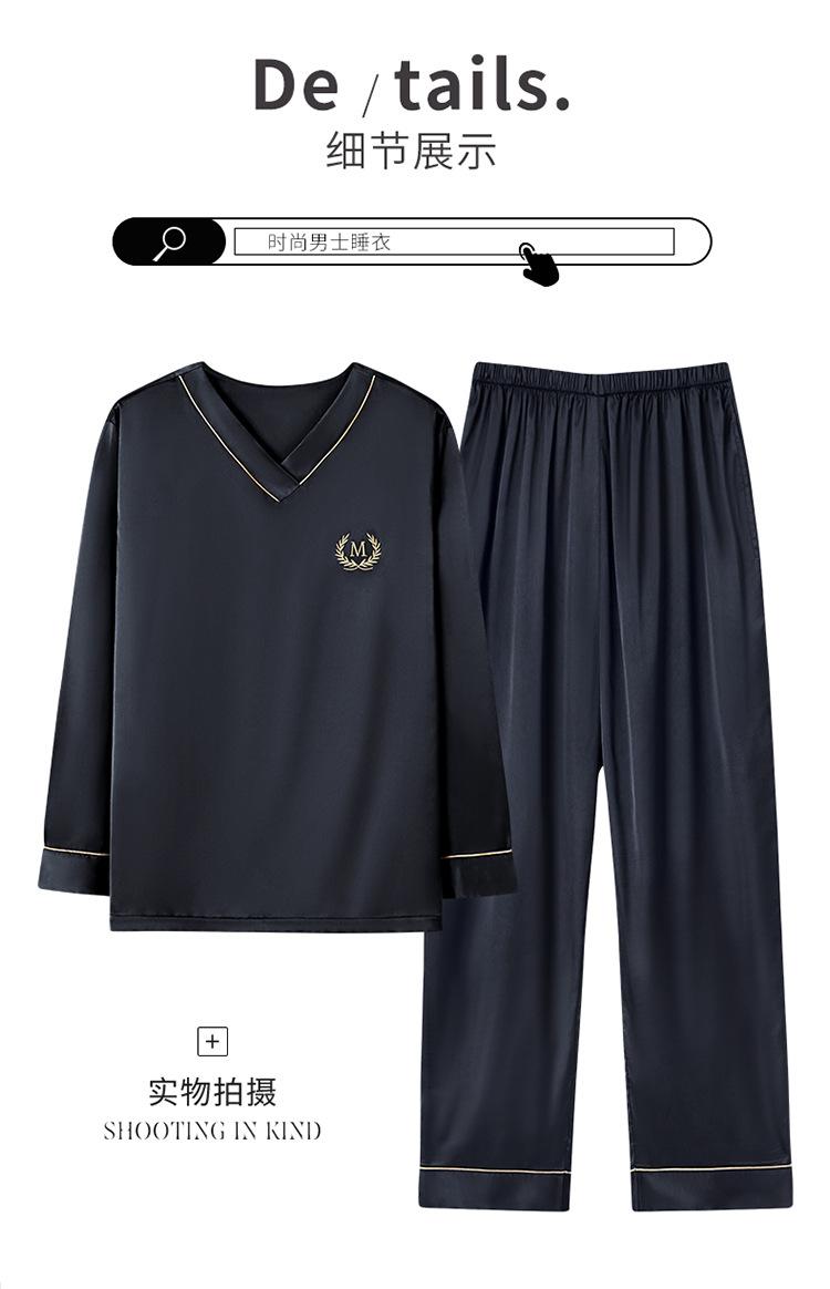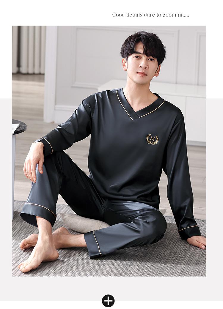 Pijama de Seda de Hielo de Verano de Alta Gama para Hombre de Manga Larga Fino Sencillo Talla Grande Suelto Simulación Seda Traje Ropa de Casa
