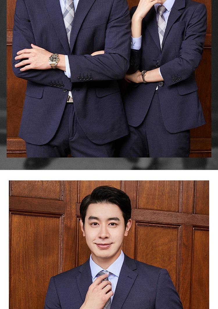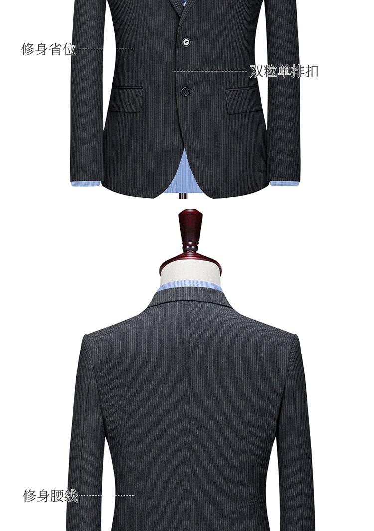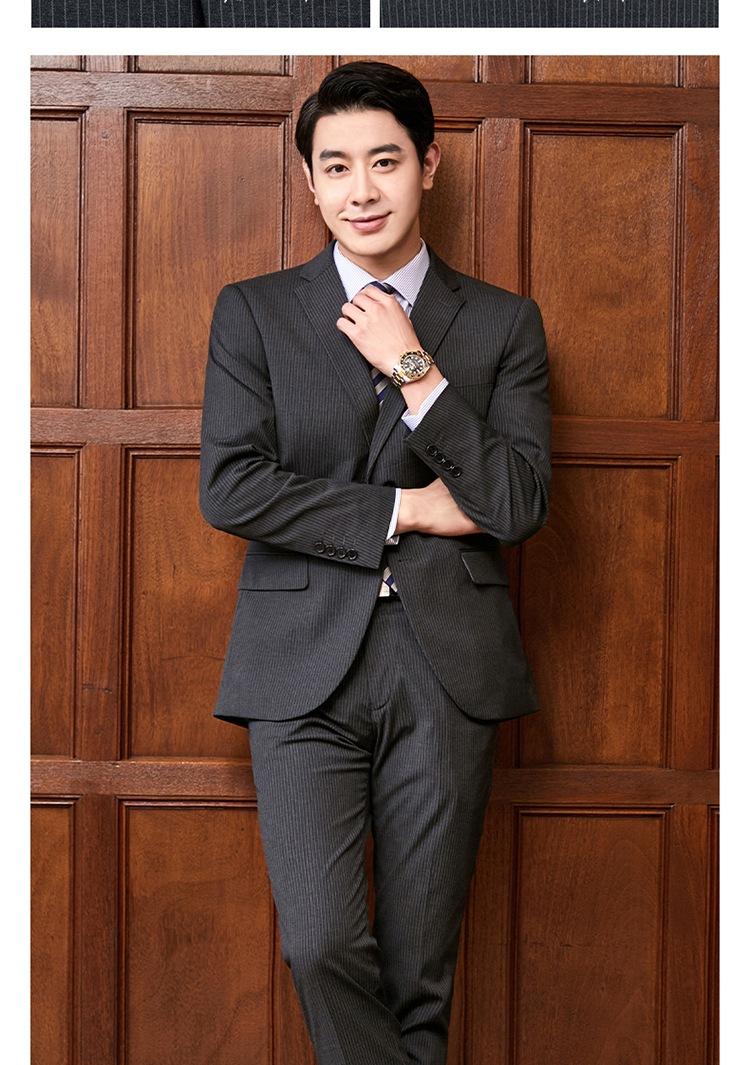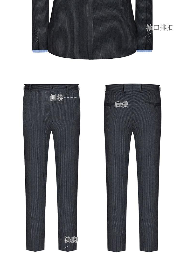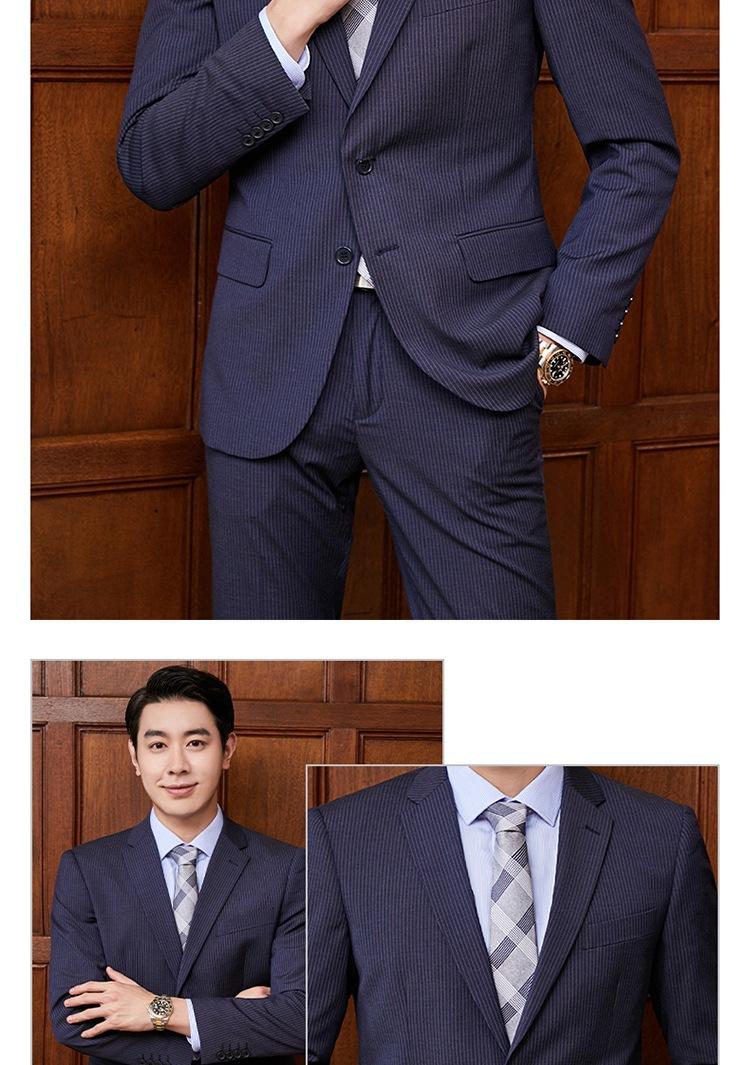 Male: navy blue striped suit + pants, Male: navy blue striped suit + pants + blue striped shirt, Male: gray st...