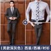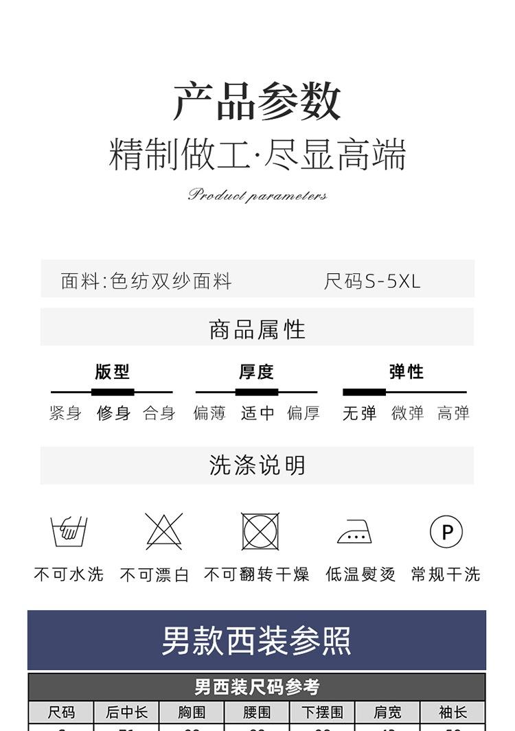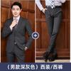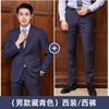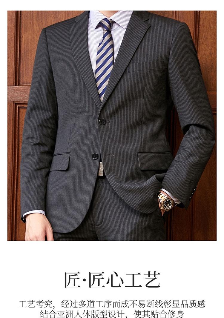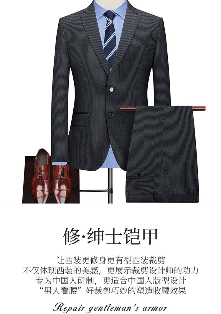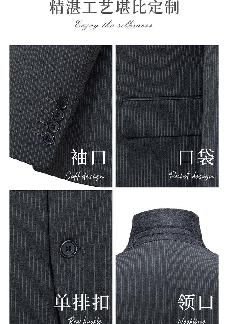 Male: navy blue striped suit + pants, Male: navy blue striped suit + pants + blue striped shirt, Male: gray st...