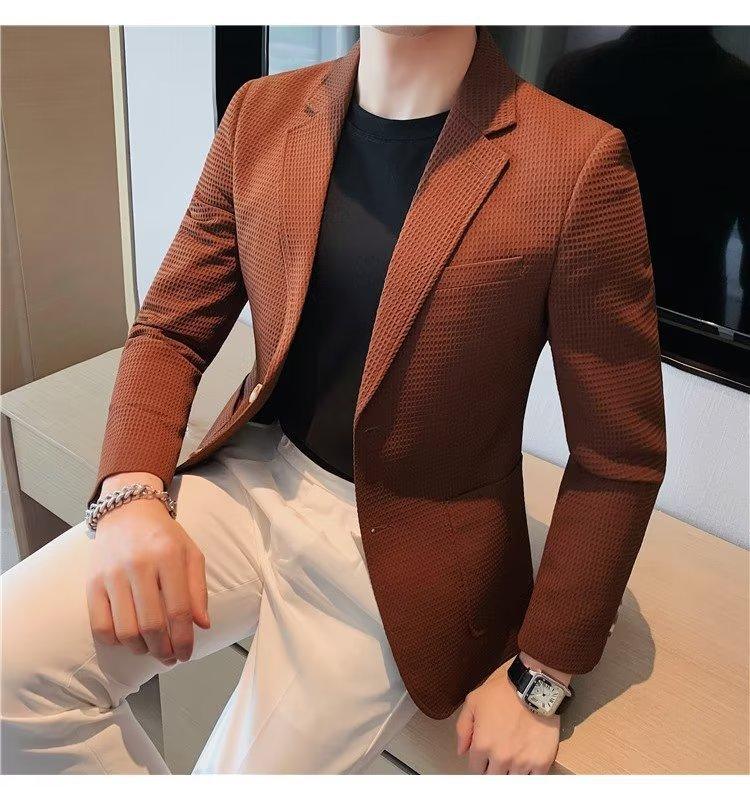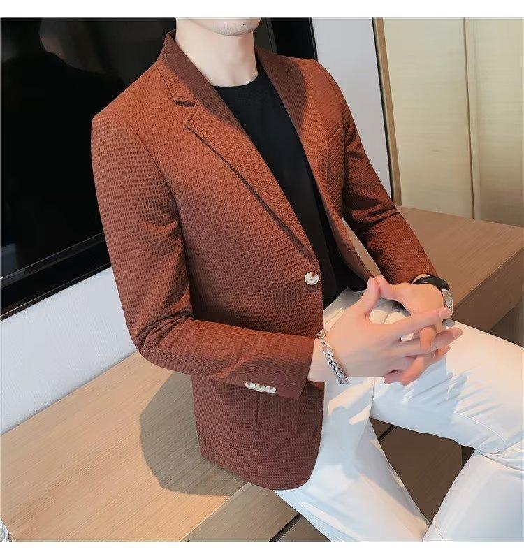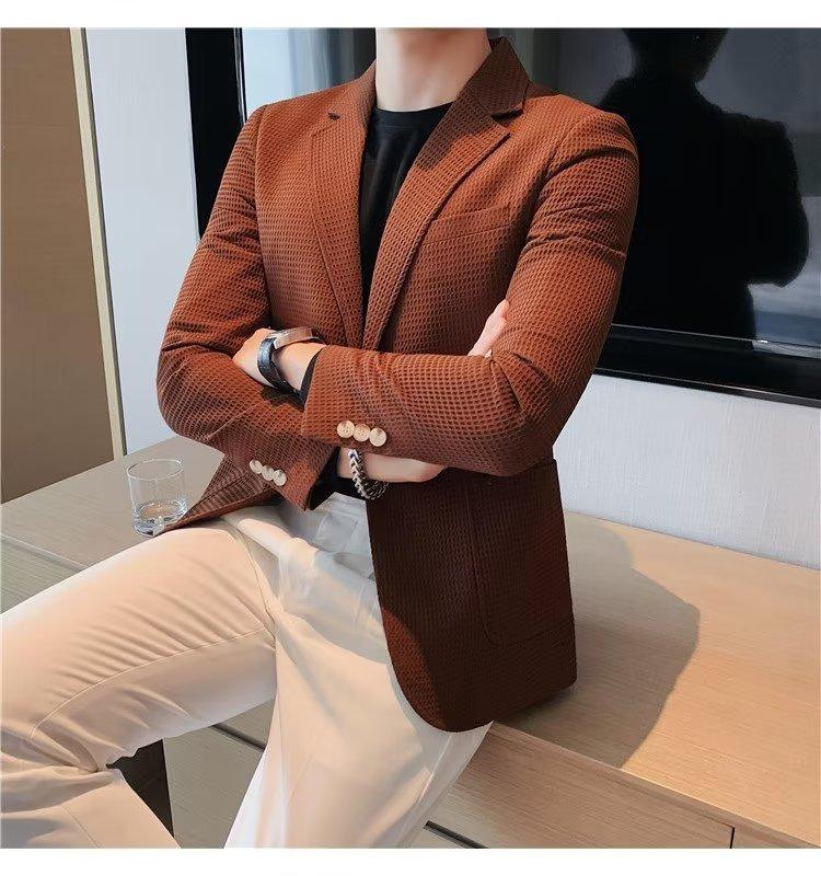 Chaqueta de traje informal para hombre, primavera y otoño de 2023, nueva chaqueta de estilo coreano para hombre de negocios, de marca de moda, con estampado de gofres gruesos.